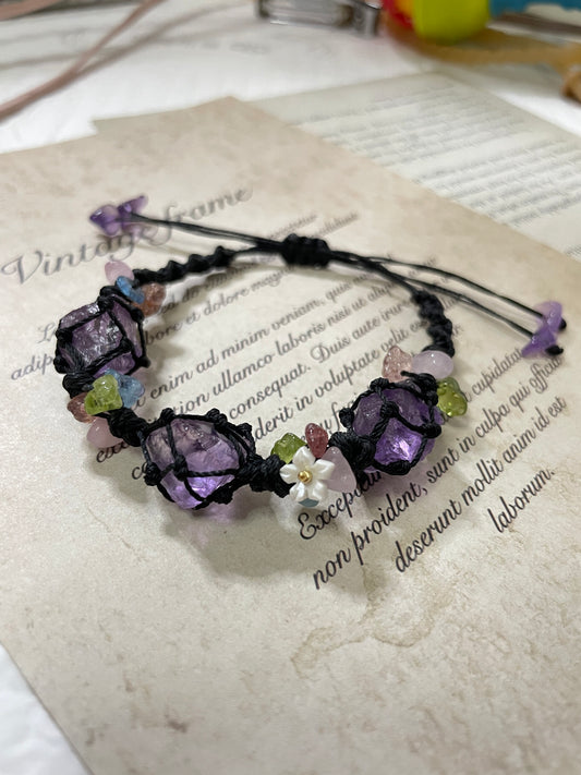 合格祈願 アメジスト×ラベンダー水晶 マクラメブレスレット