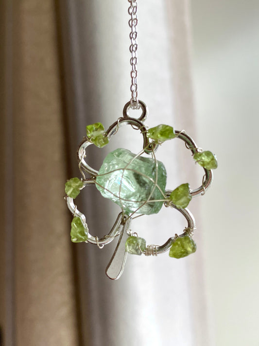 四つ葉のクローバー×琉璃原石 ワイヤーネックレス|学生・ペア向けギフト
