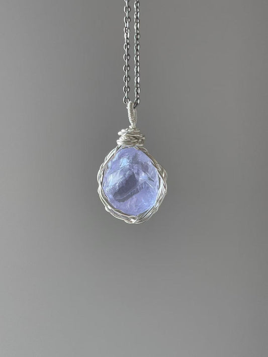 ブルー水晶原石 ワイヤーアートネックレス|手作りカップルアクセサリー