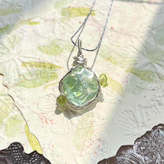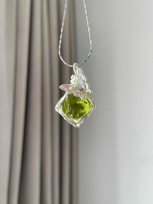 森系ガラス原石ネックレス|手作り鎖骨チェーン 学生に人気
