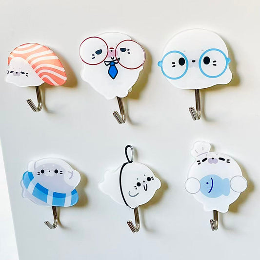 可愛いアザラシ穴あけ不要強力粘着フック壁キッチン
