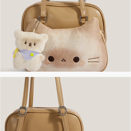 猫好き必見かわいいトーストキャット猫グッズ通勤ねこリュック|手提げもできる学園風バックパック