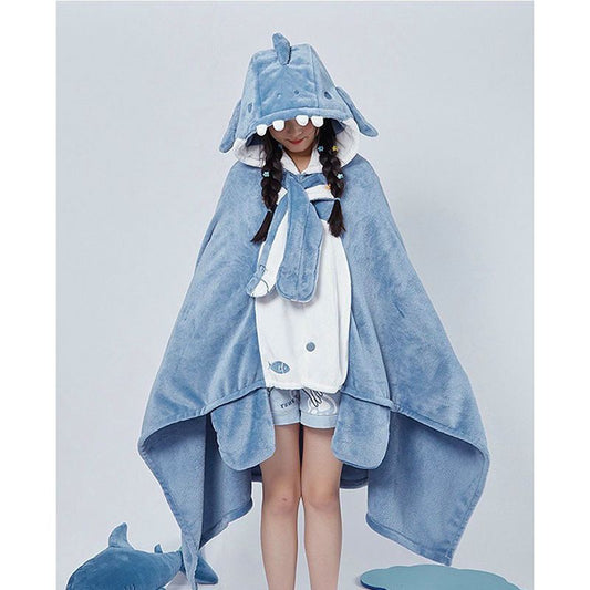 サメ着ぐるみブランケット|学生&オフィス向けふわもこ連帽マント