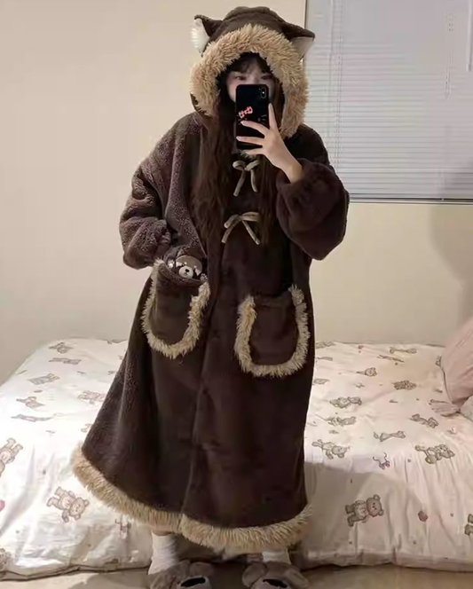 クマのモコモコフード付きガウン&パジャマセット / とろける触感の可愛いルームウェア
