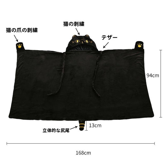 ブラックねこふわもこマントブランケット|手袋付き可愛いルームウェア