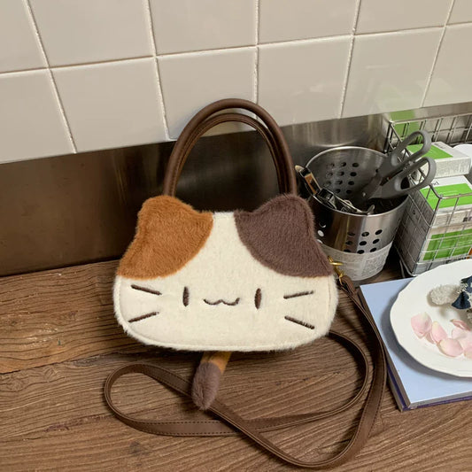 大人気モコモコキャットハンドバッグ秋冬新作ふわふわショルダーバッグ