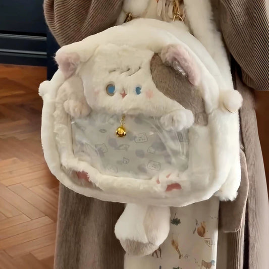 【推し活応援】子猫の透明窓付きぬいぐるみ痛バッグ