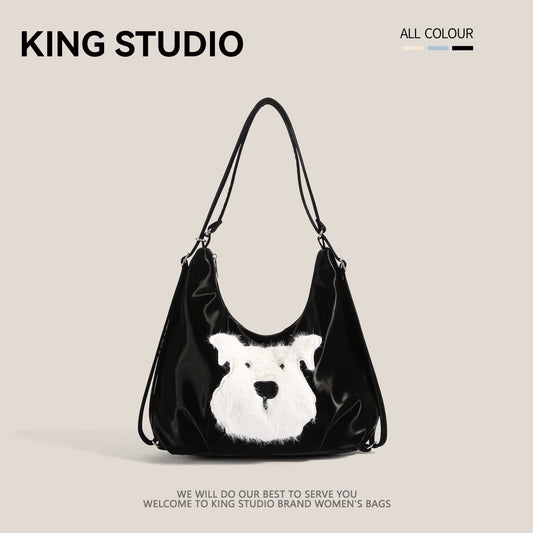 【韩国トレンド】プリンカラーのバイカラー毛絨バッグ