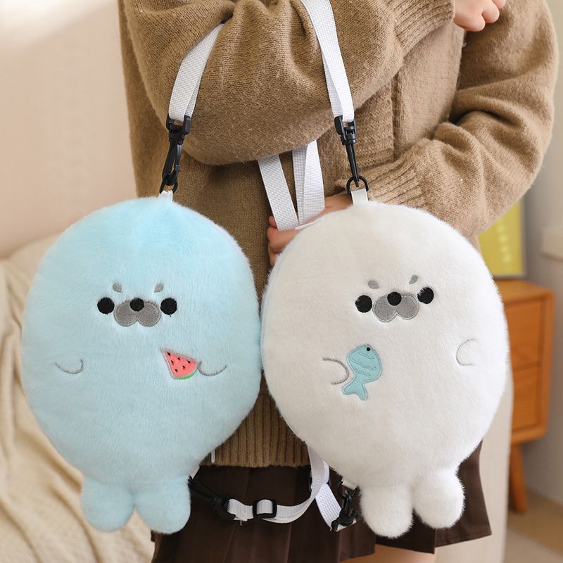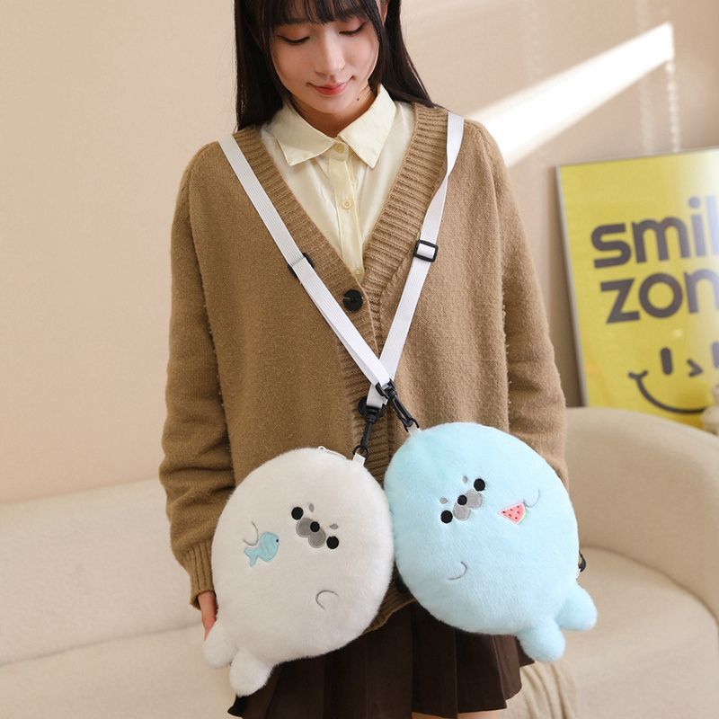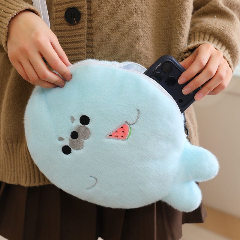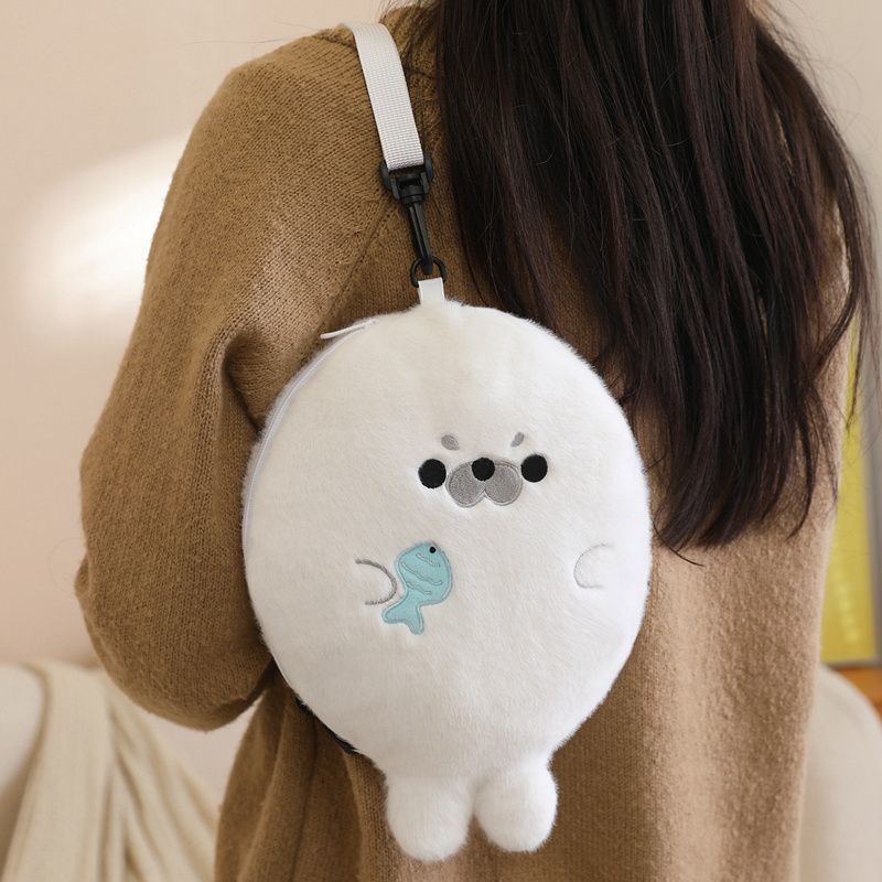 大ヒット可愛いアザラシふわふわショルダーバッグ