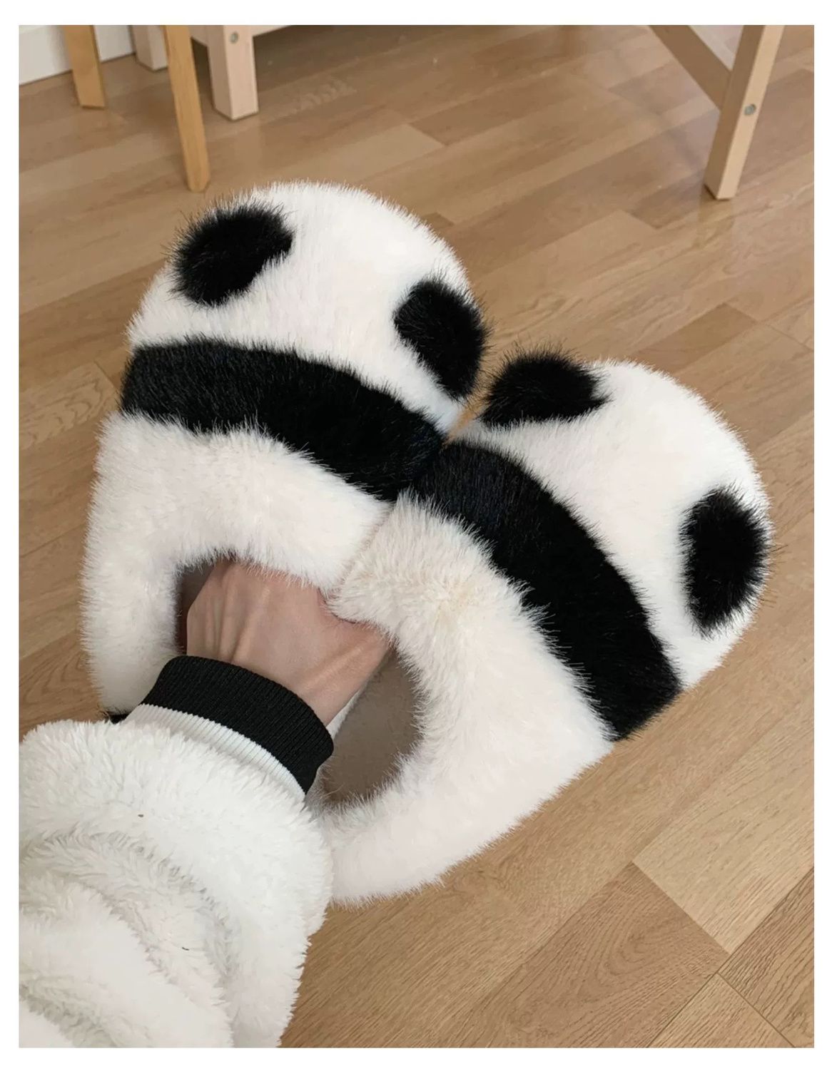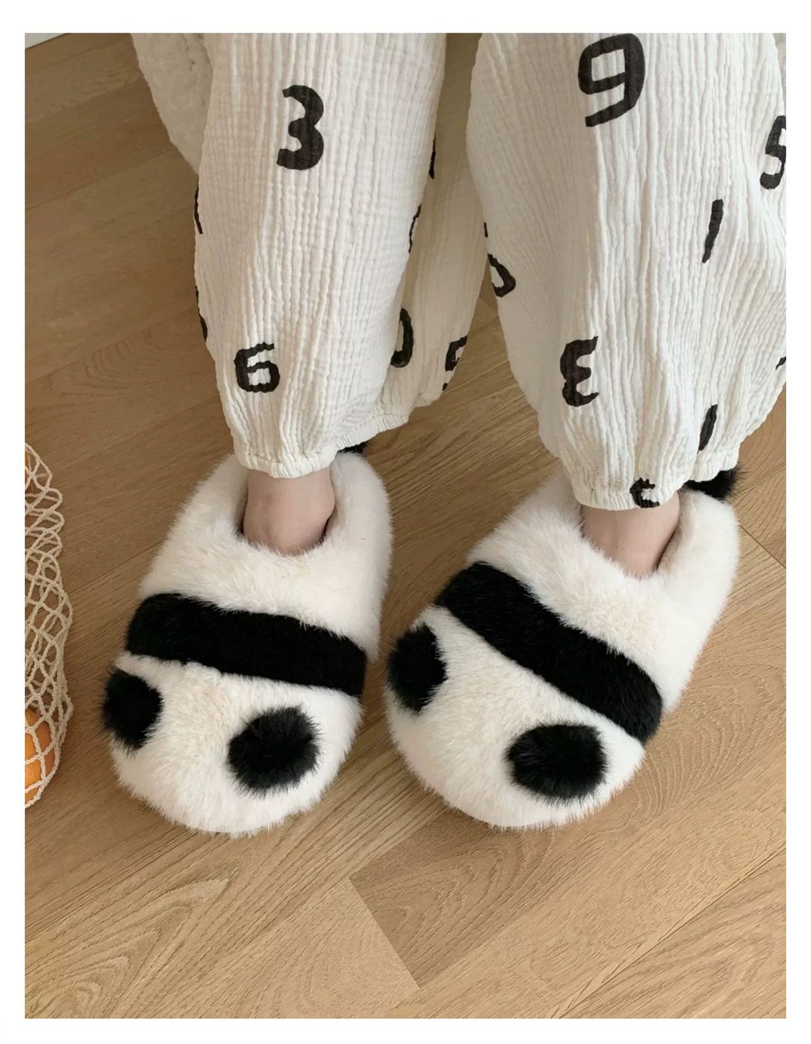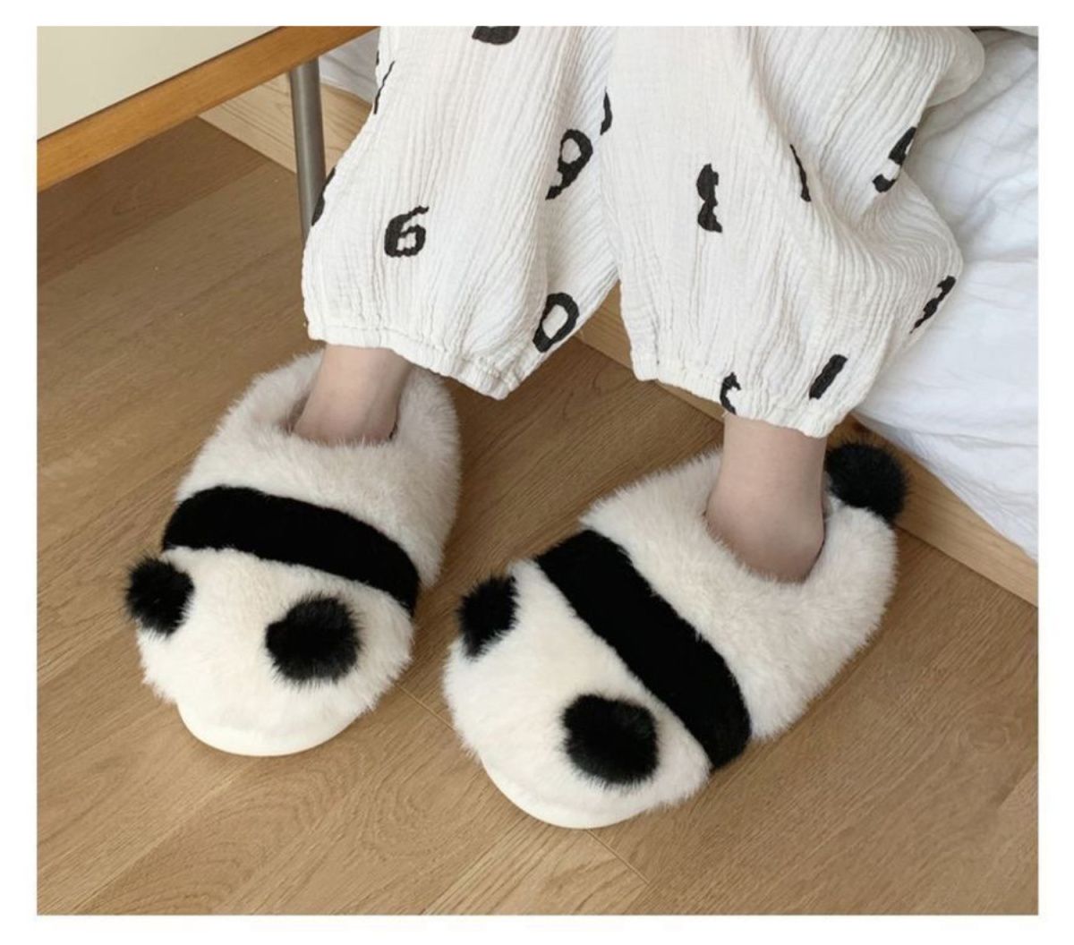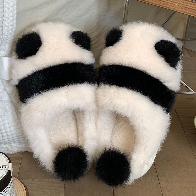 Cute parent-child pair slippers, fluffy panda pattern slippers