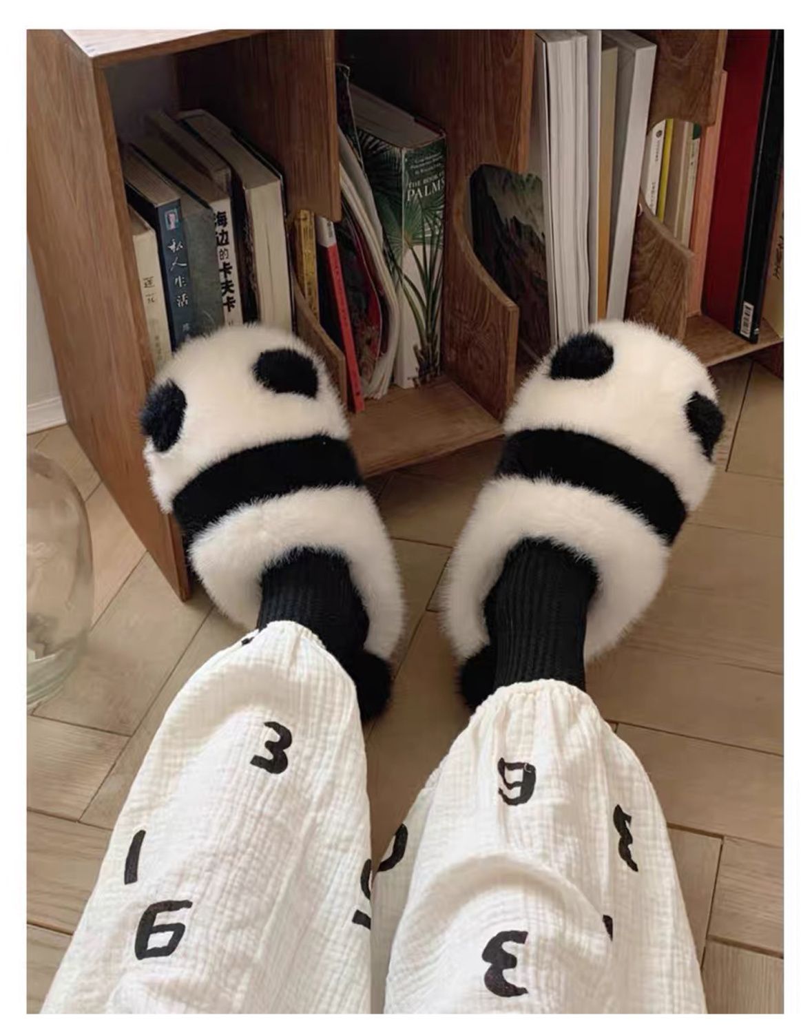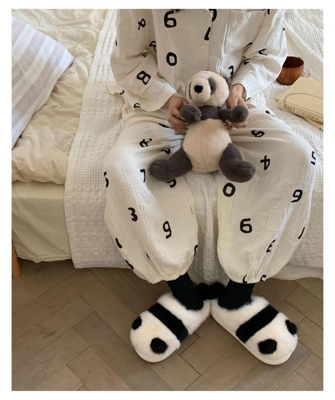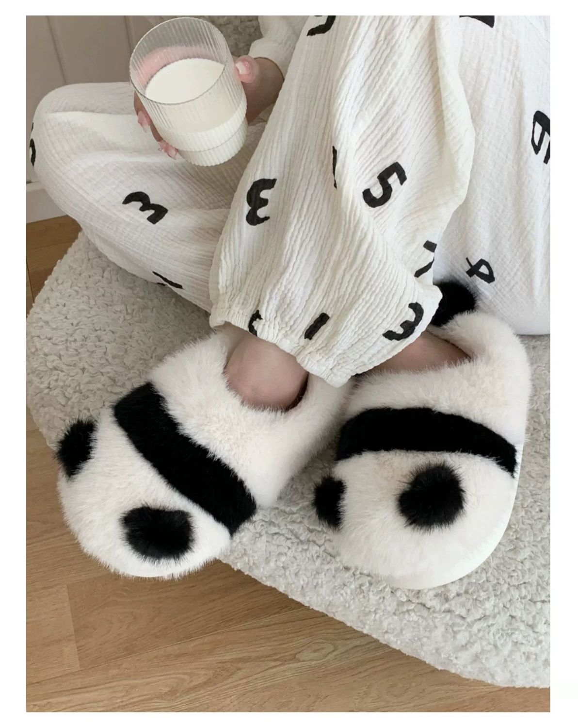 Cute parent-child pair slippers, fluffy panda pattern slippers