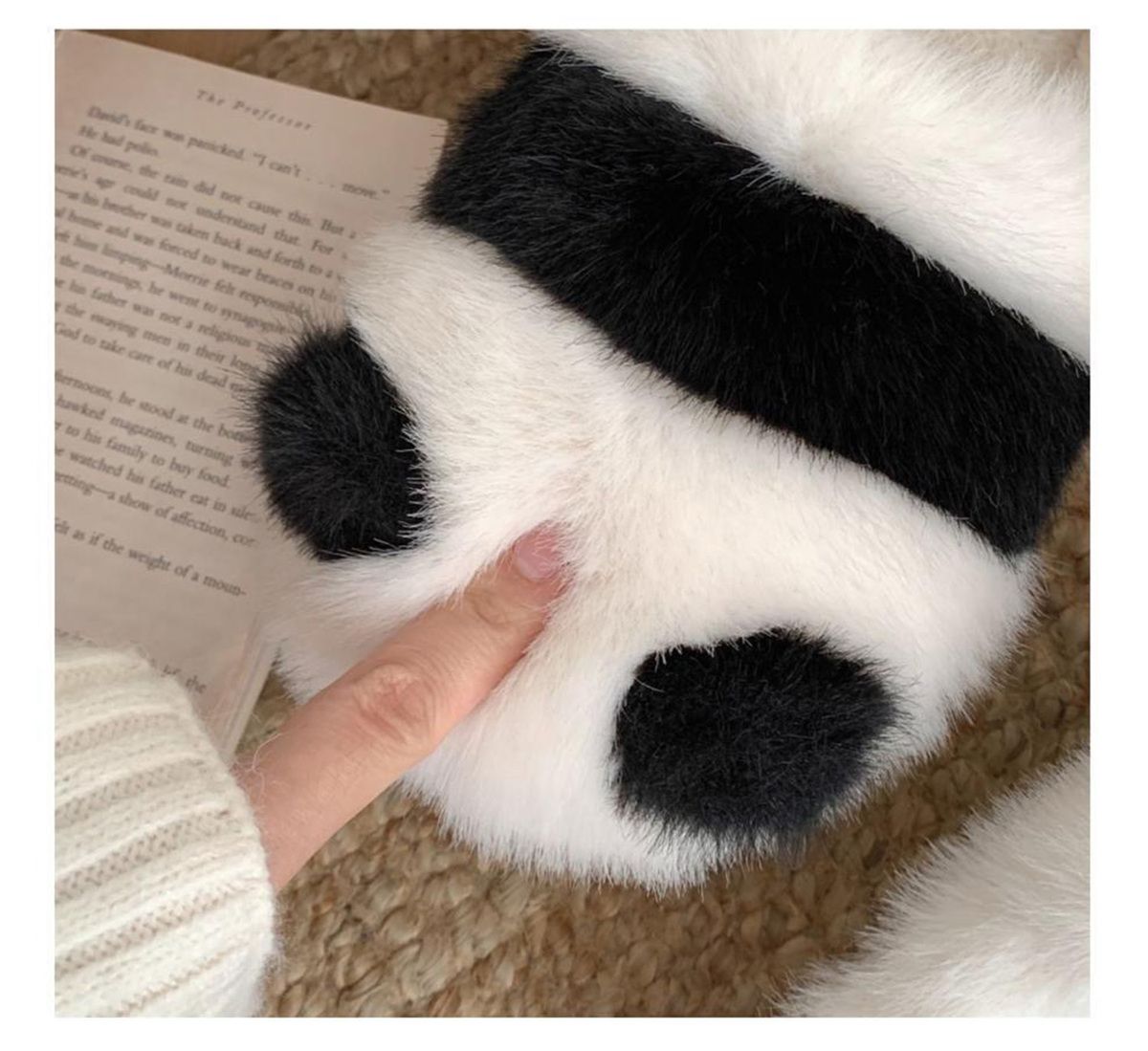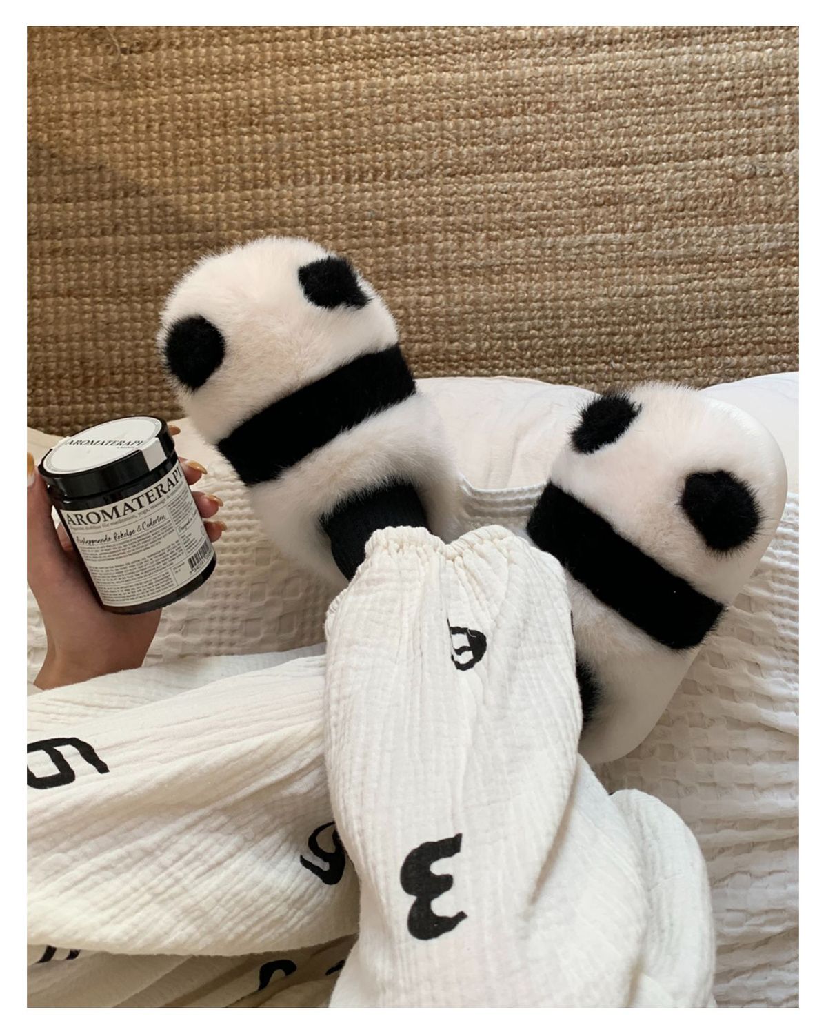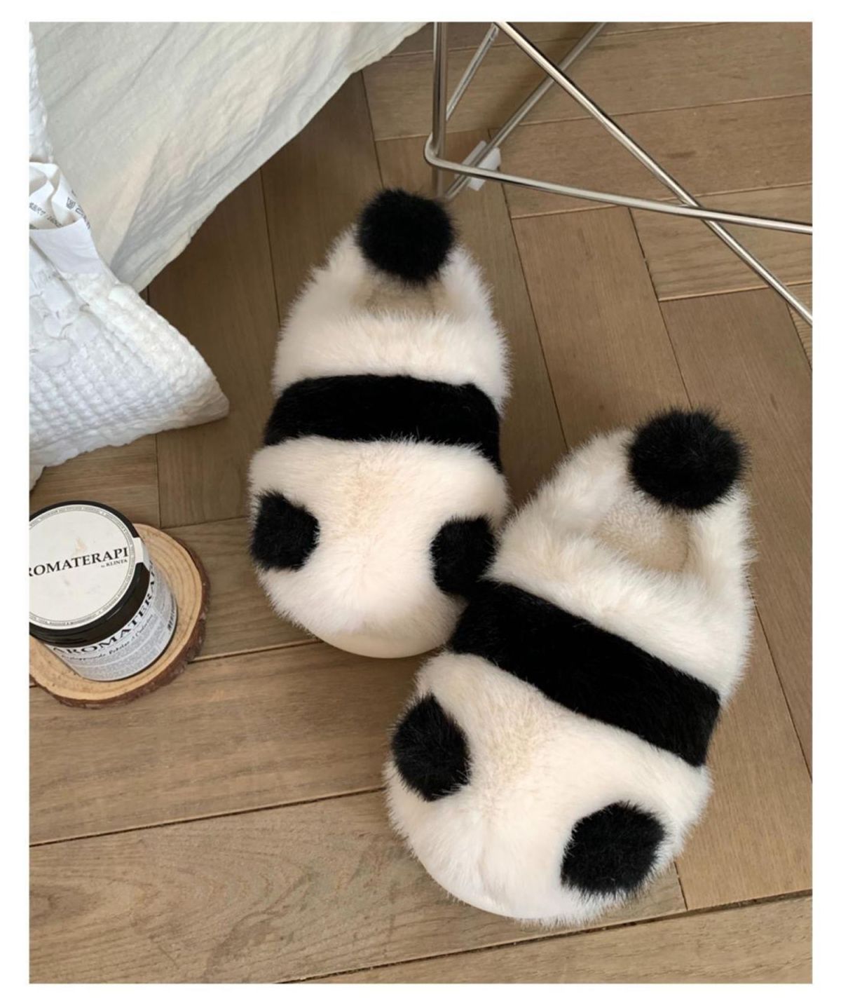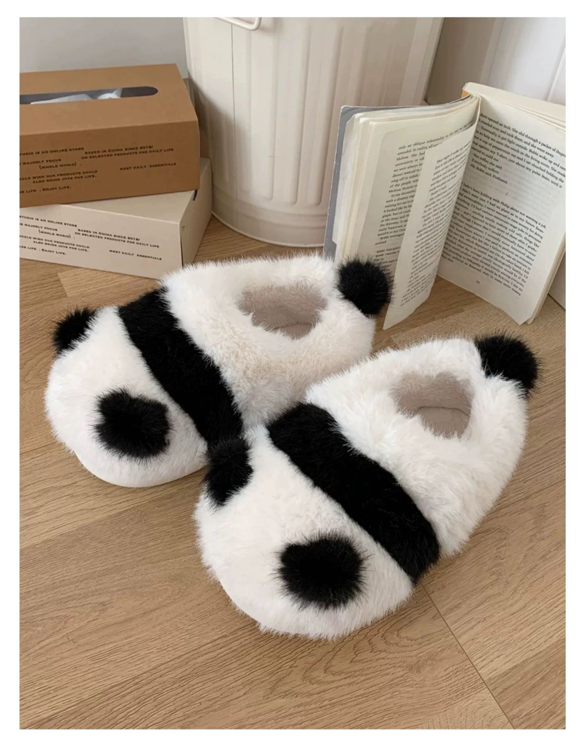 Cute parent-child pair slippers, fluffy panda pattern slippers