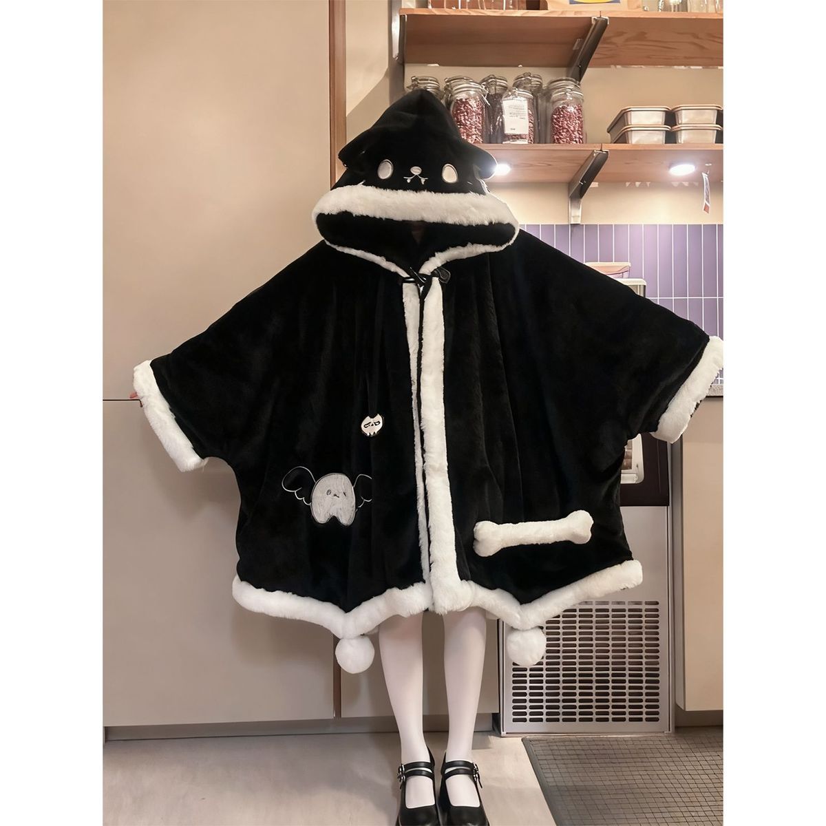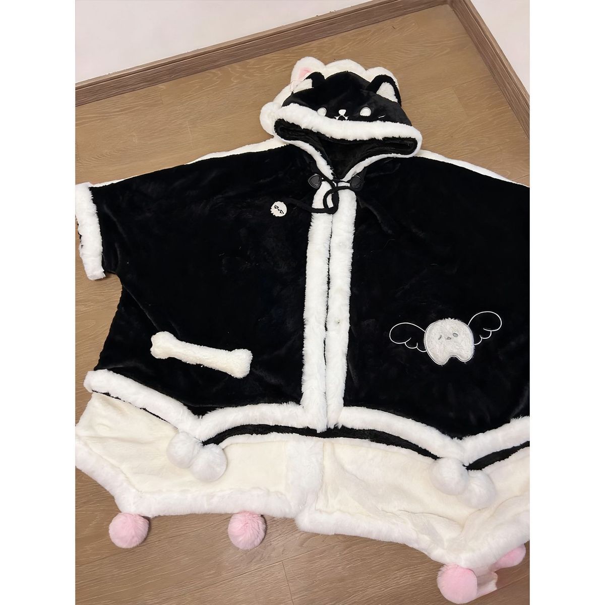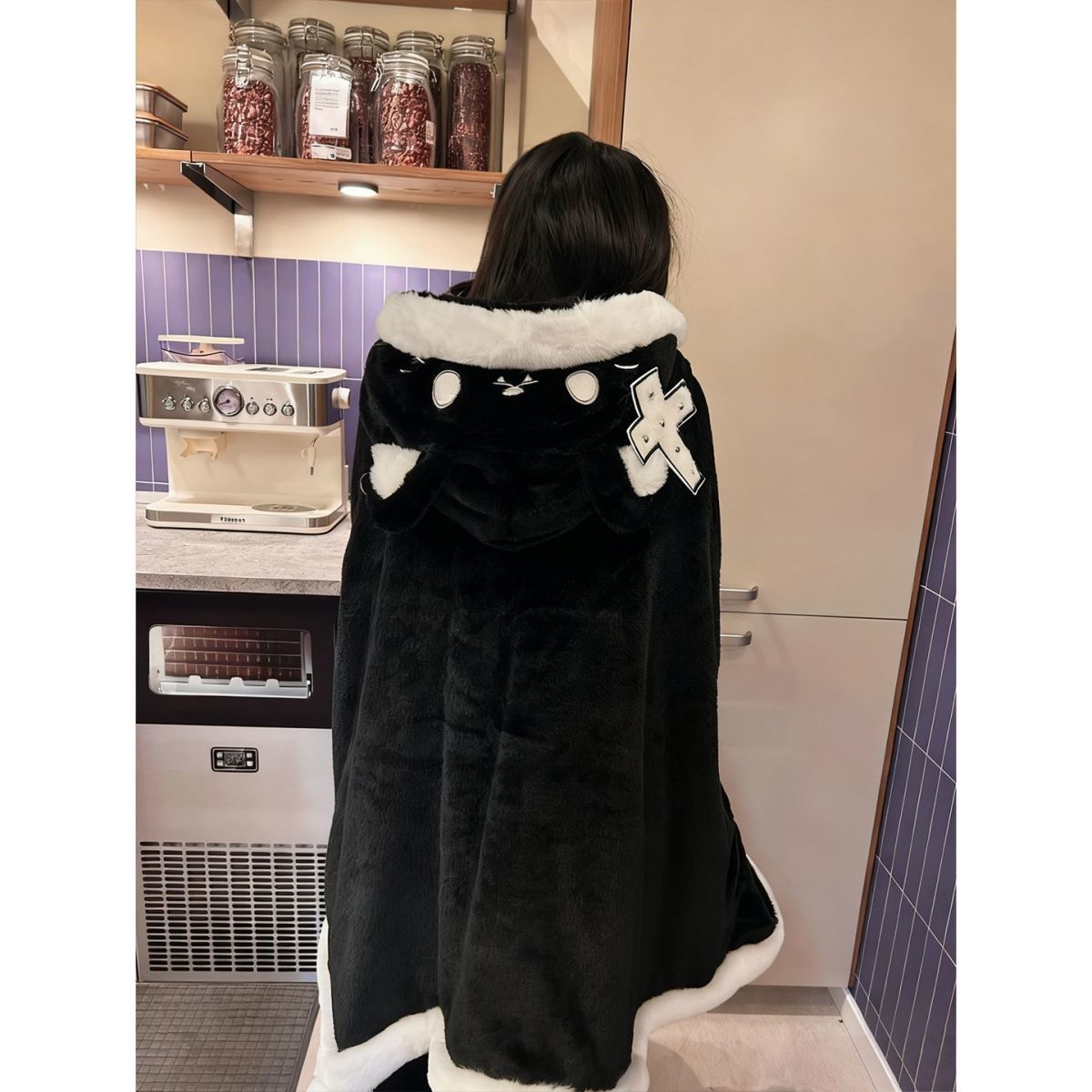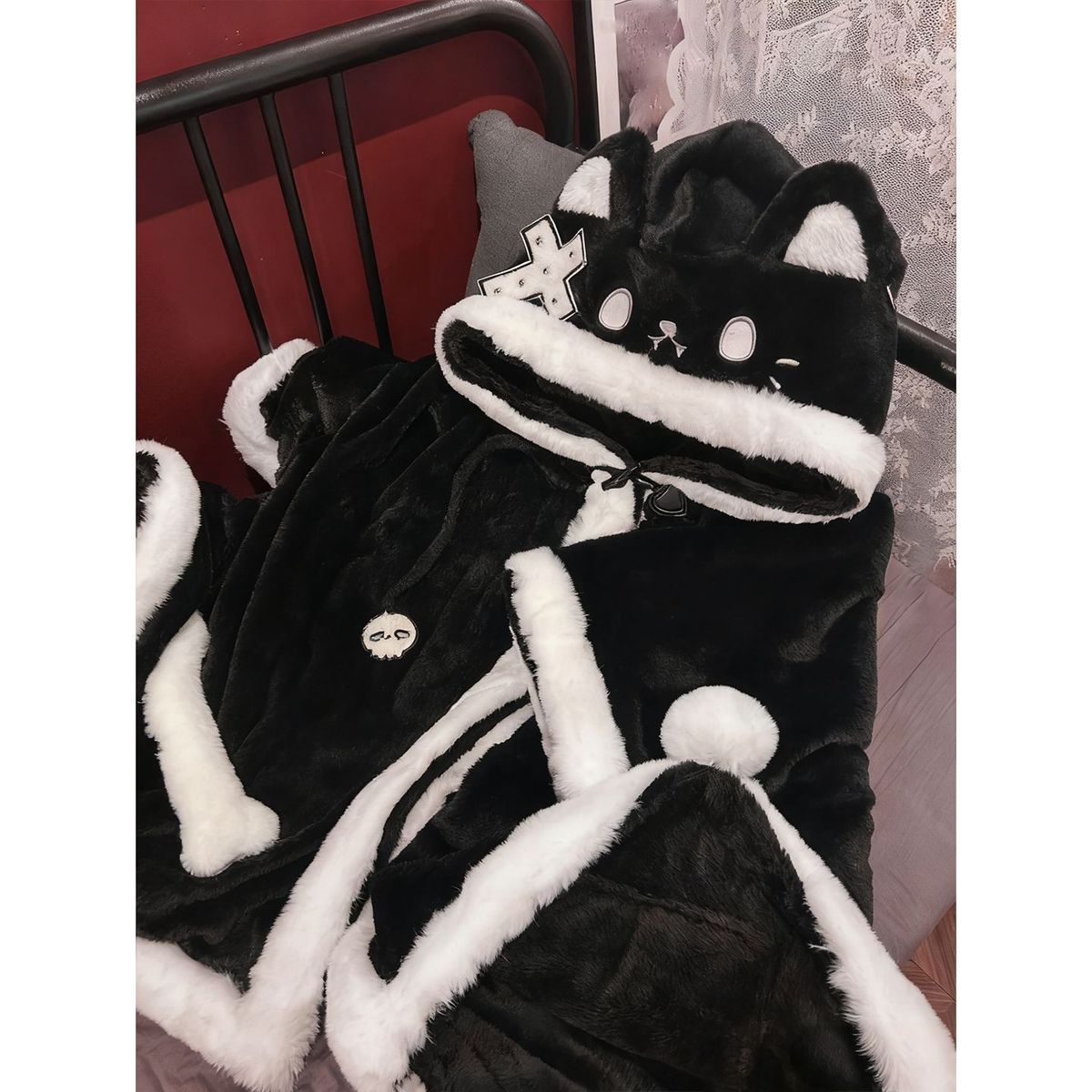 ゴースト黒猫マントローブ秋冬極暖モコモコサンゴフリース自分用ギフト推奨