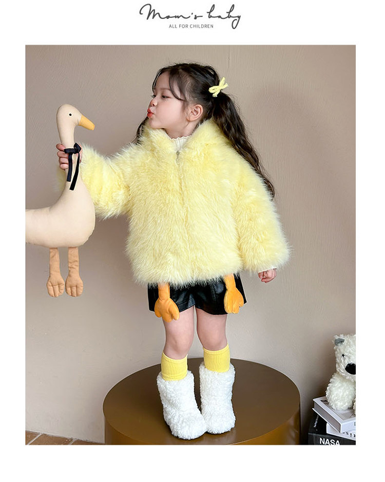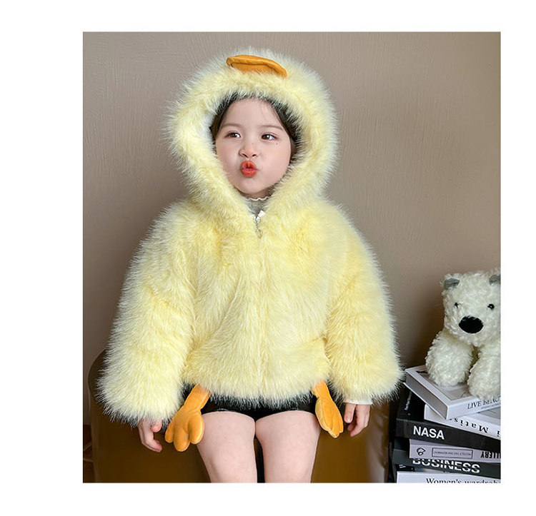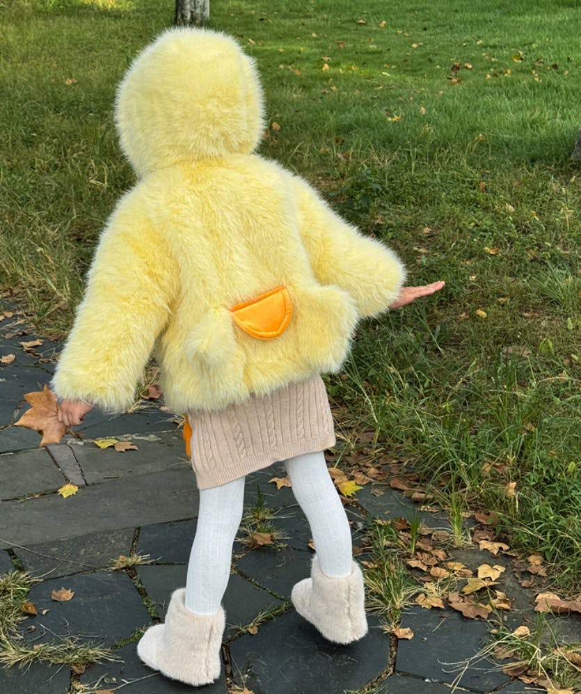 Capture all eyes this winter! Cute duck-designed padded boa jacket for kids