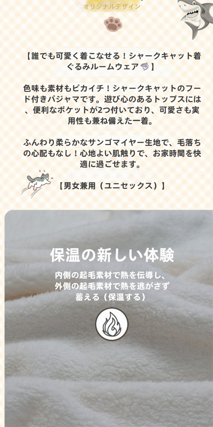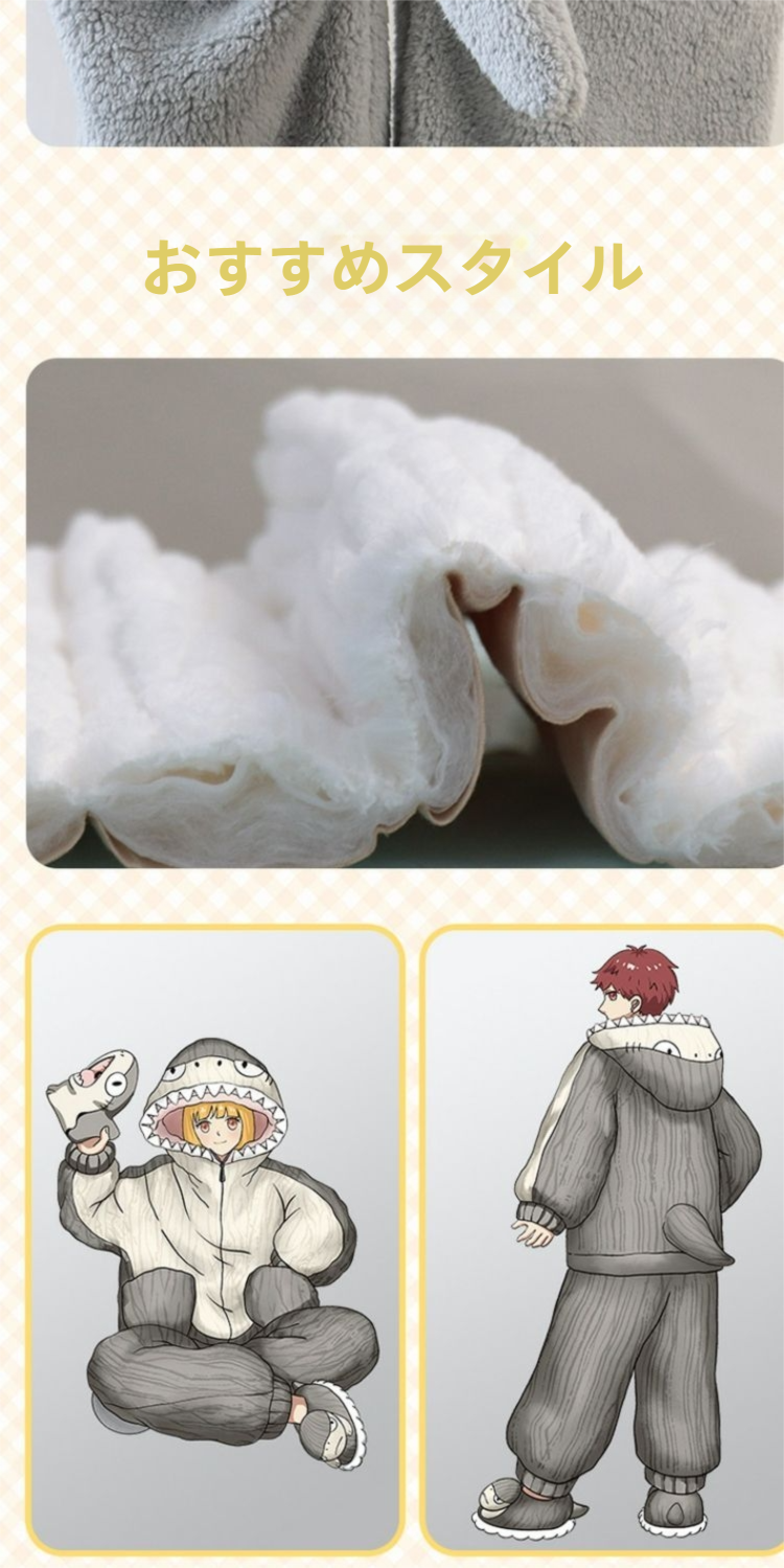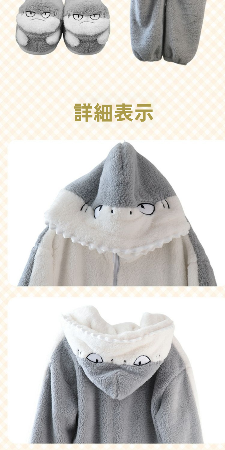 サメ&ネコ変身のおもしろ連体パジャマ/ペアルックのあったか連体ルームウェア
