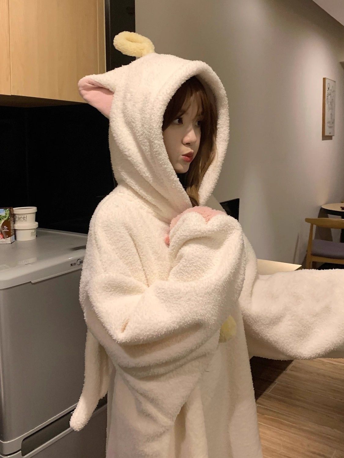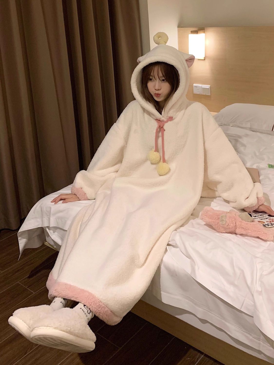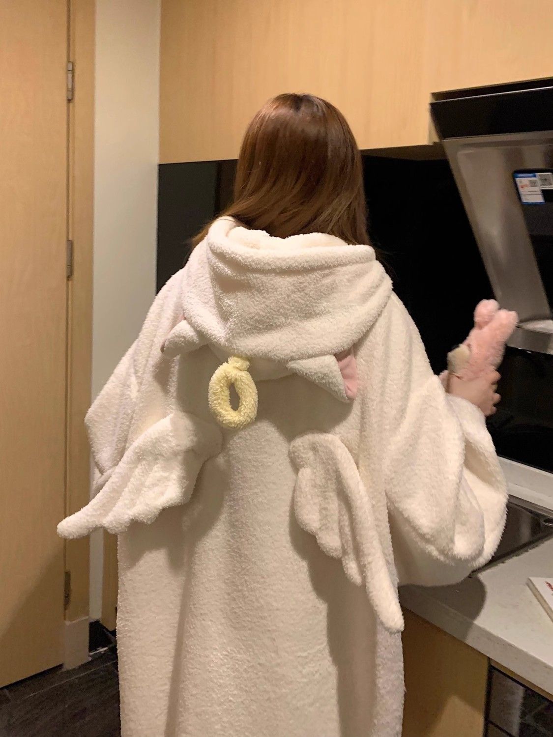 Angel fluffy hooded gown, warm loungewear/pajamas