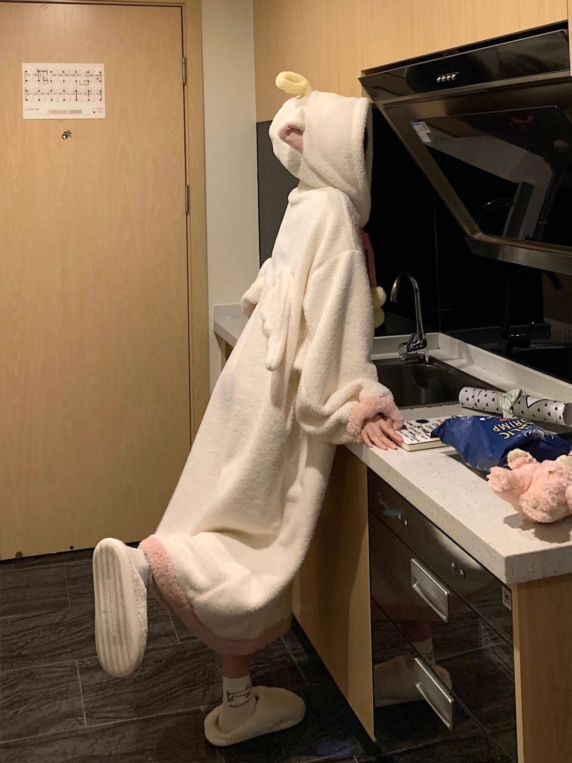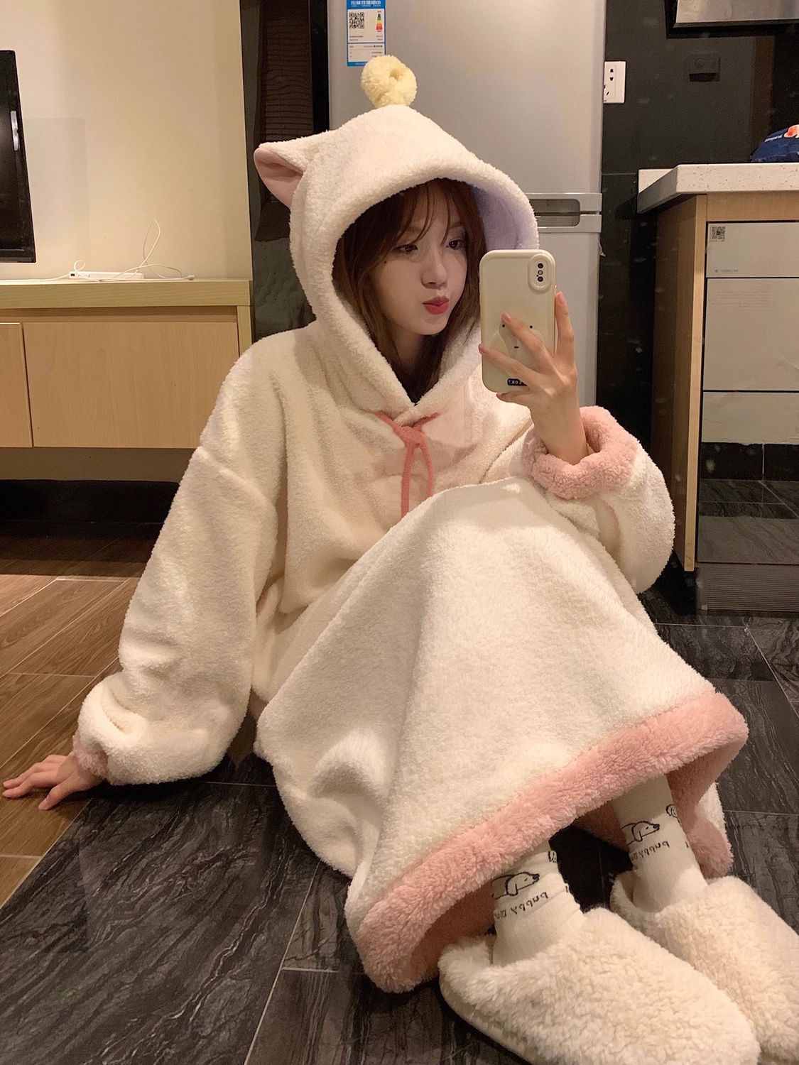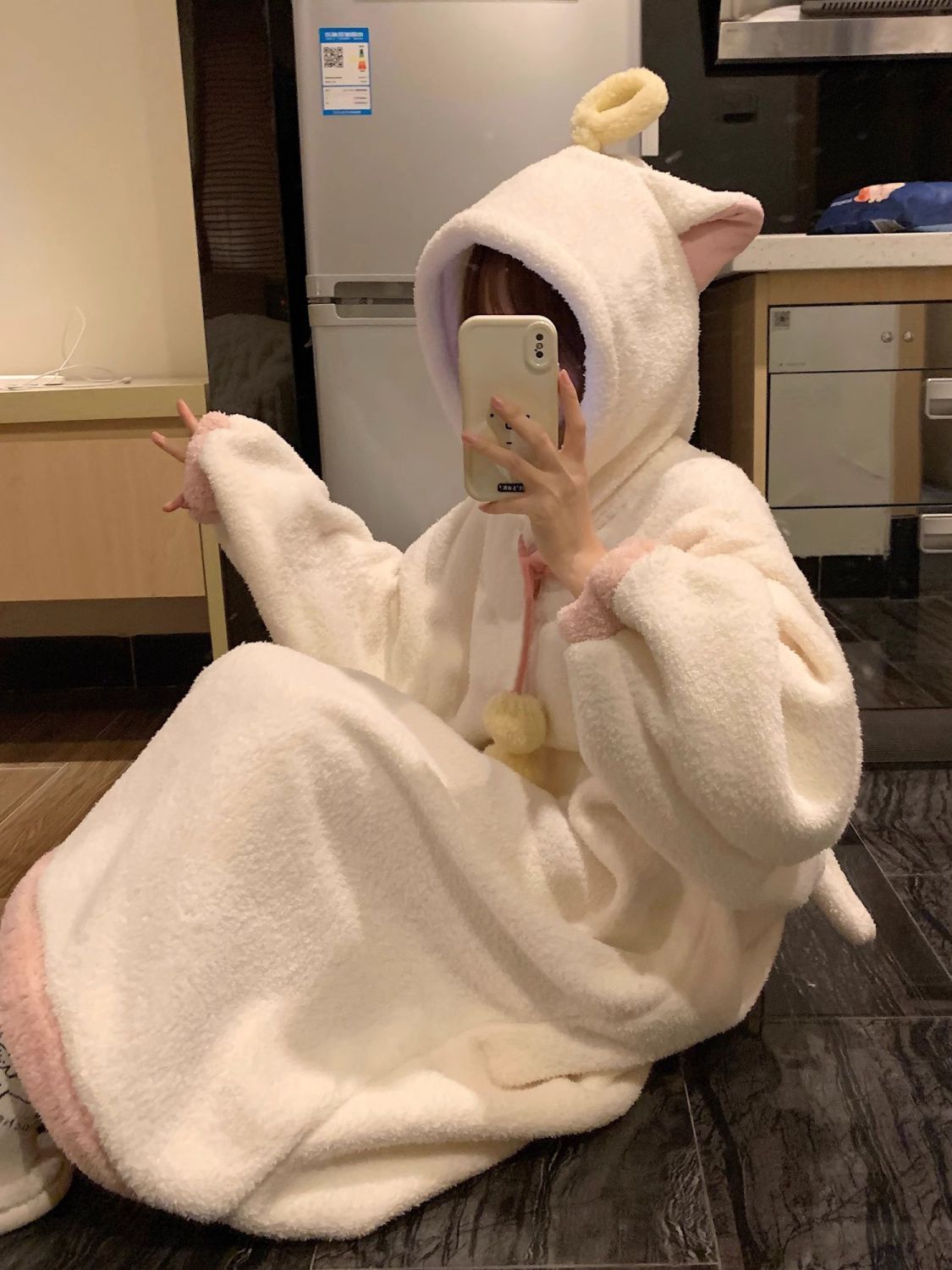 Angel fluffy hooded gown, warm loungewear/pajamas