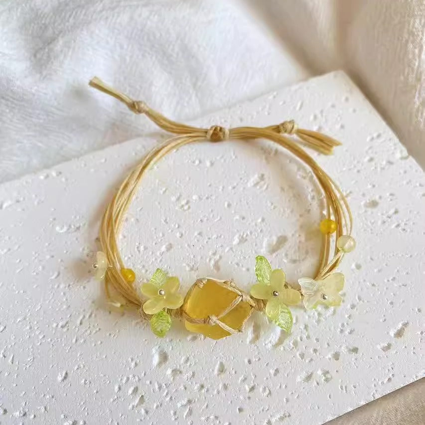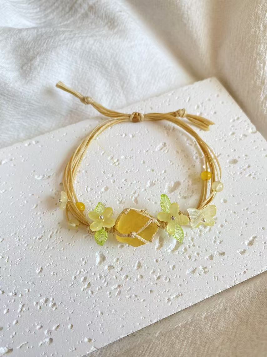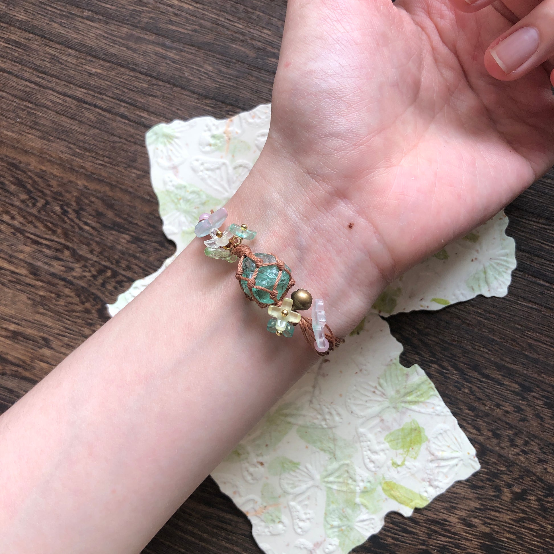 海の青と森の紫 マクラメ天然石ブレスレット|アクアマリン×アメジスト