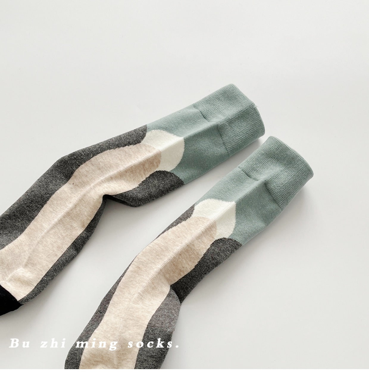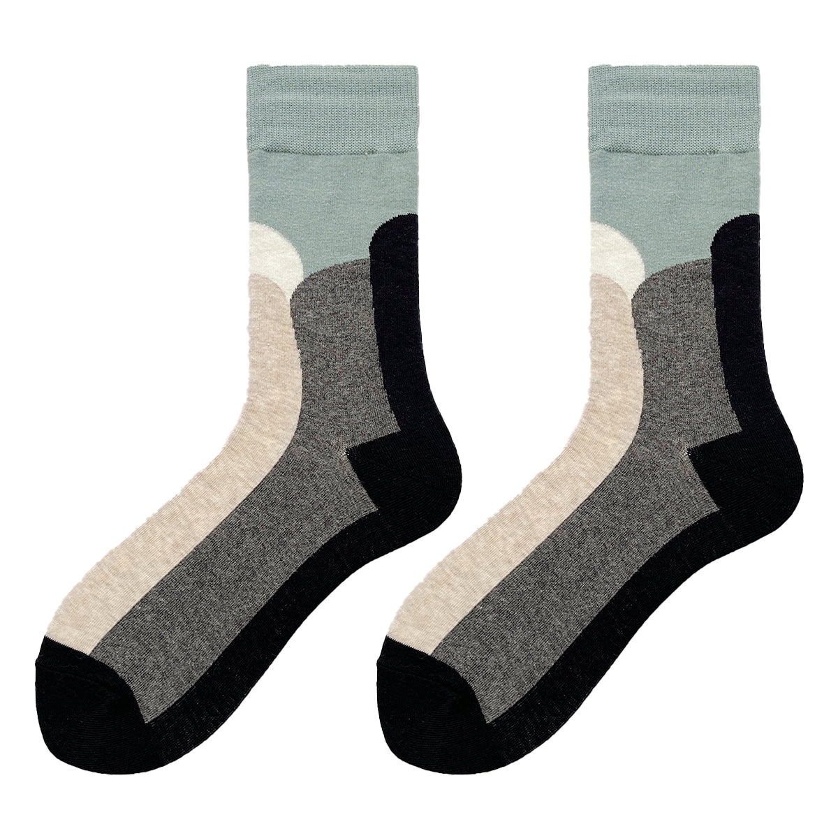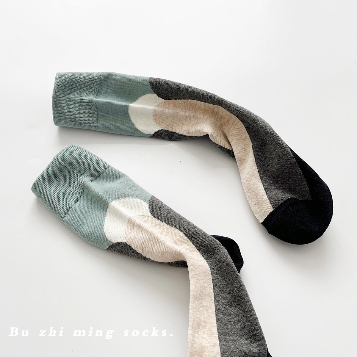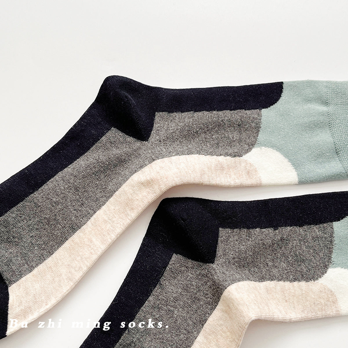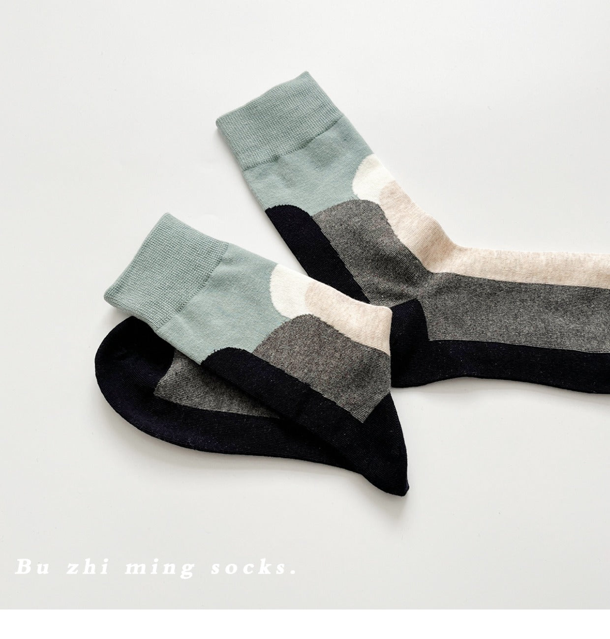 ブルーグレーグラデーションソックス|文系女子に人気のレトロ配色中筒靴下