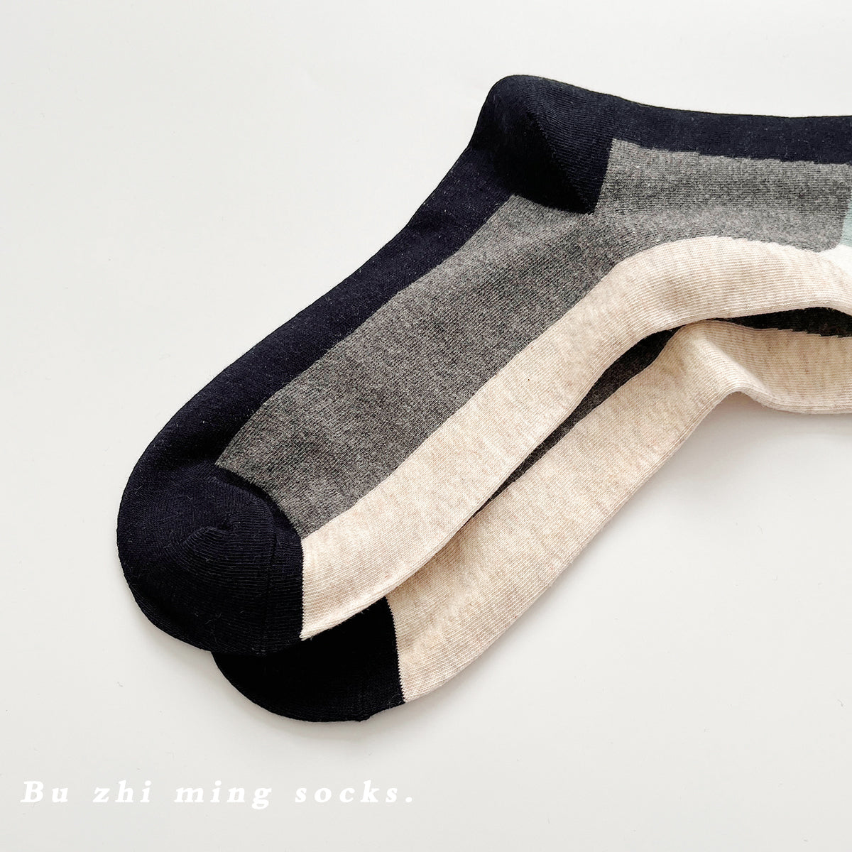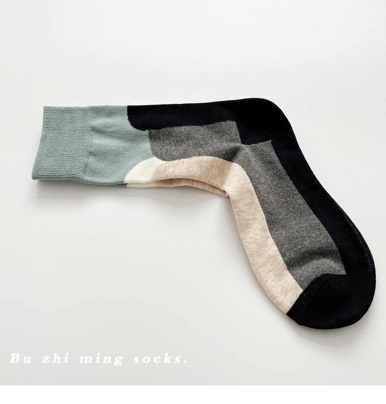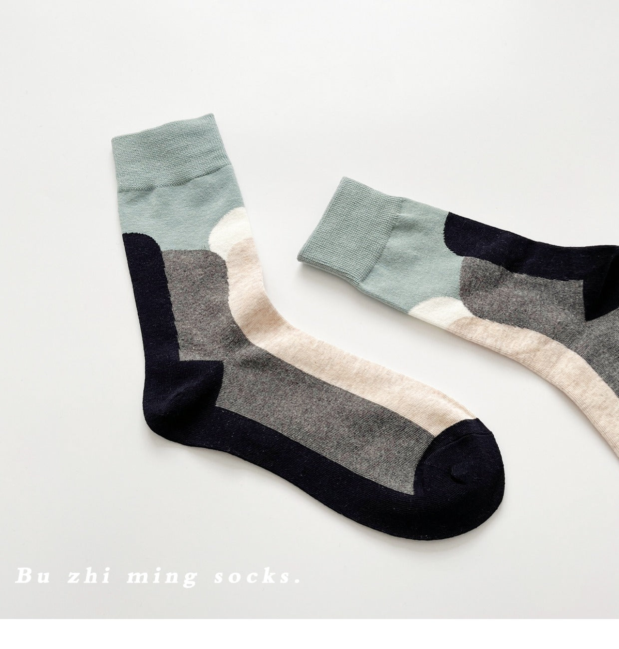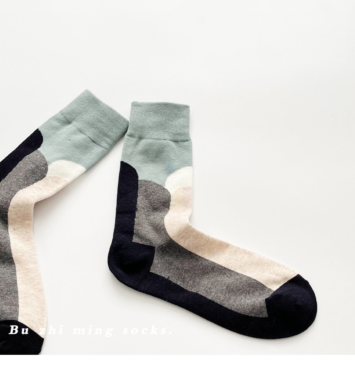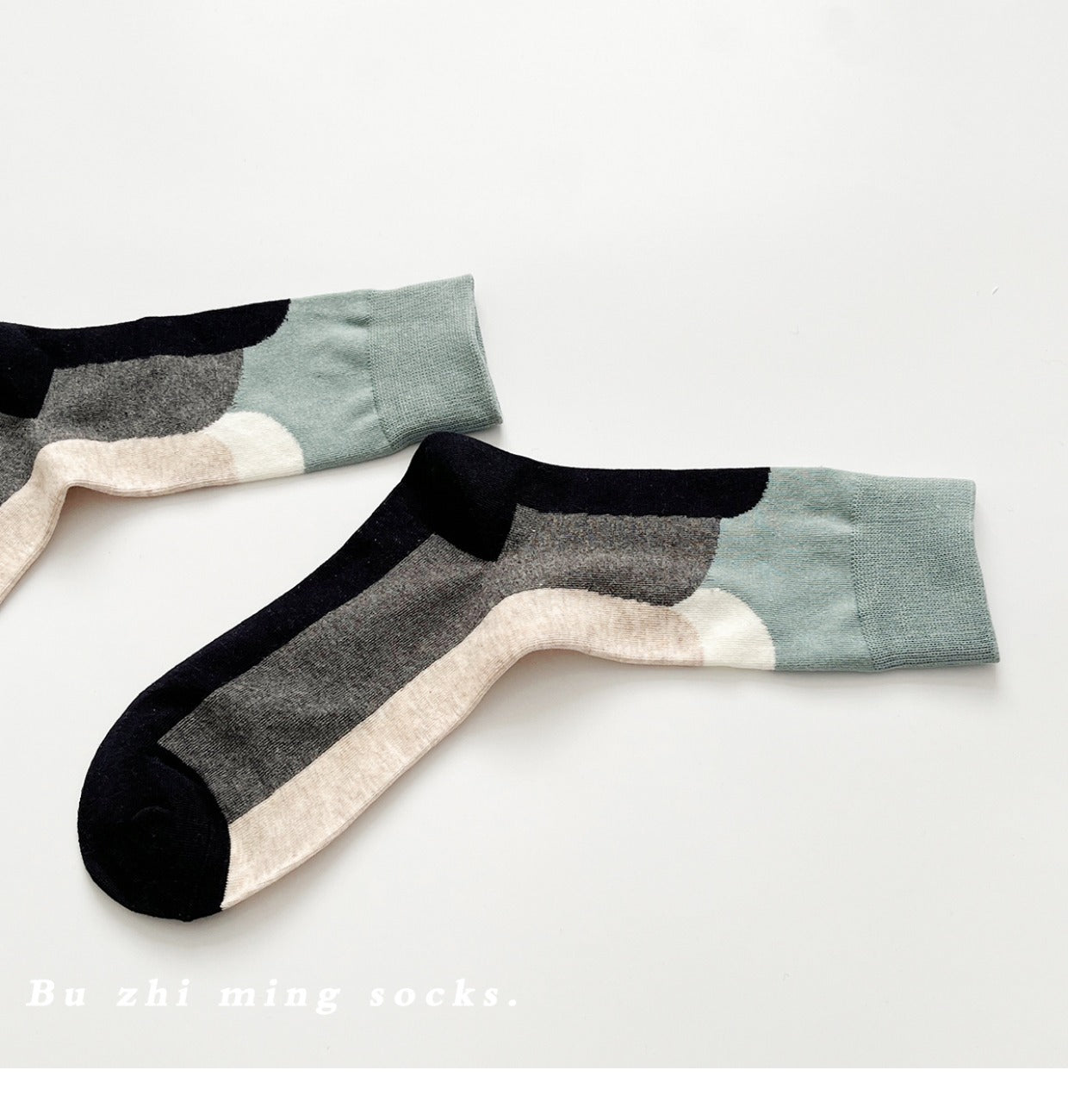 ブルーグレーグラデーションソックス|文系女子に人気のレトロ配色中筒靴下