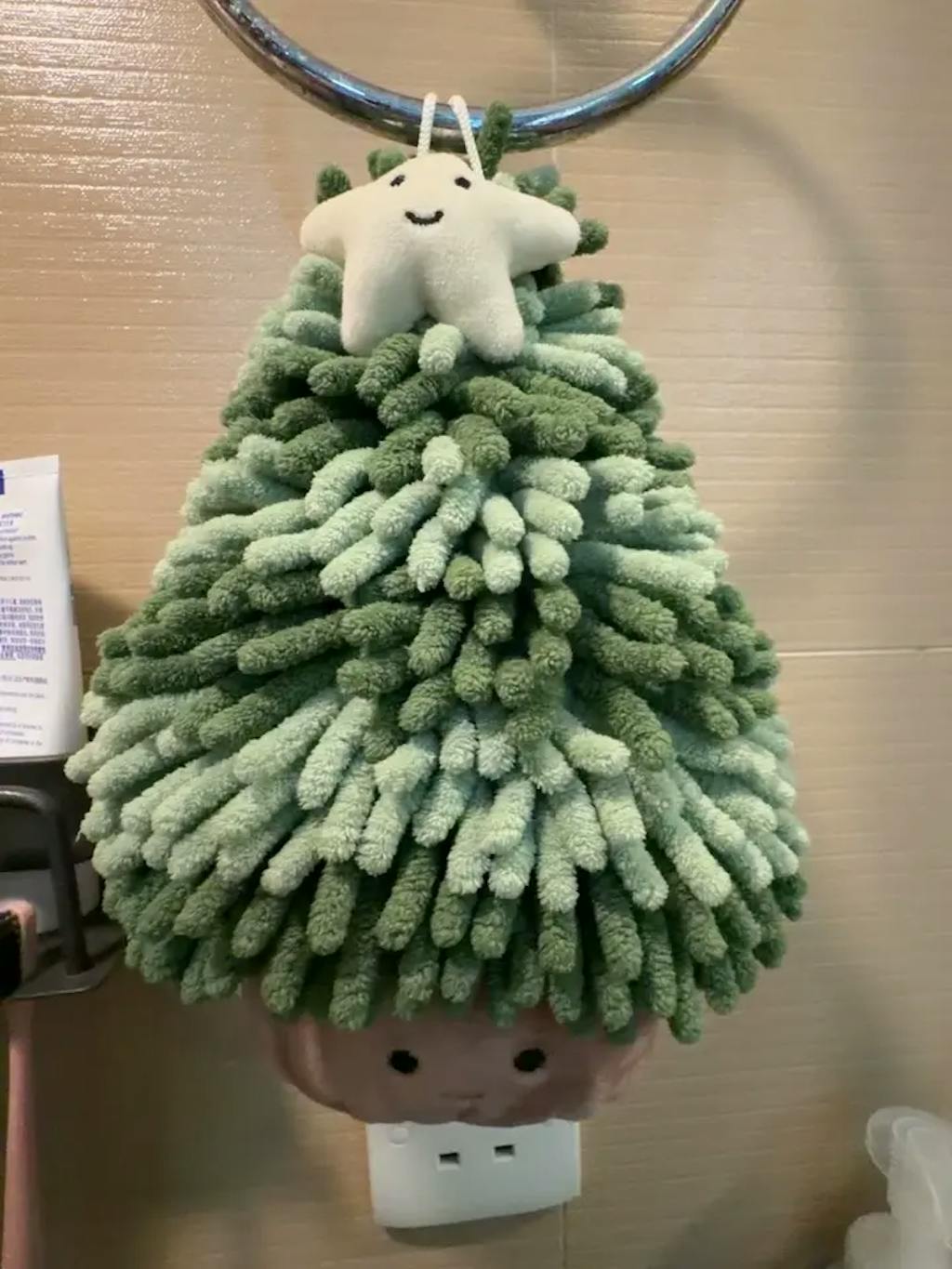 クリスマスツリー型超吸水ハンドタオル厚手吊り下げ式水回り装飾にも最適