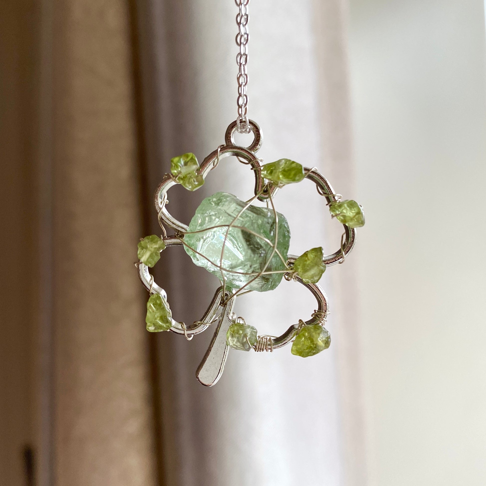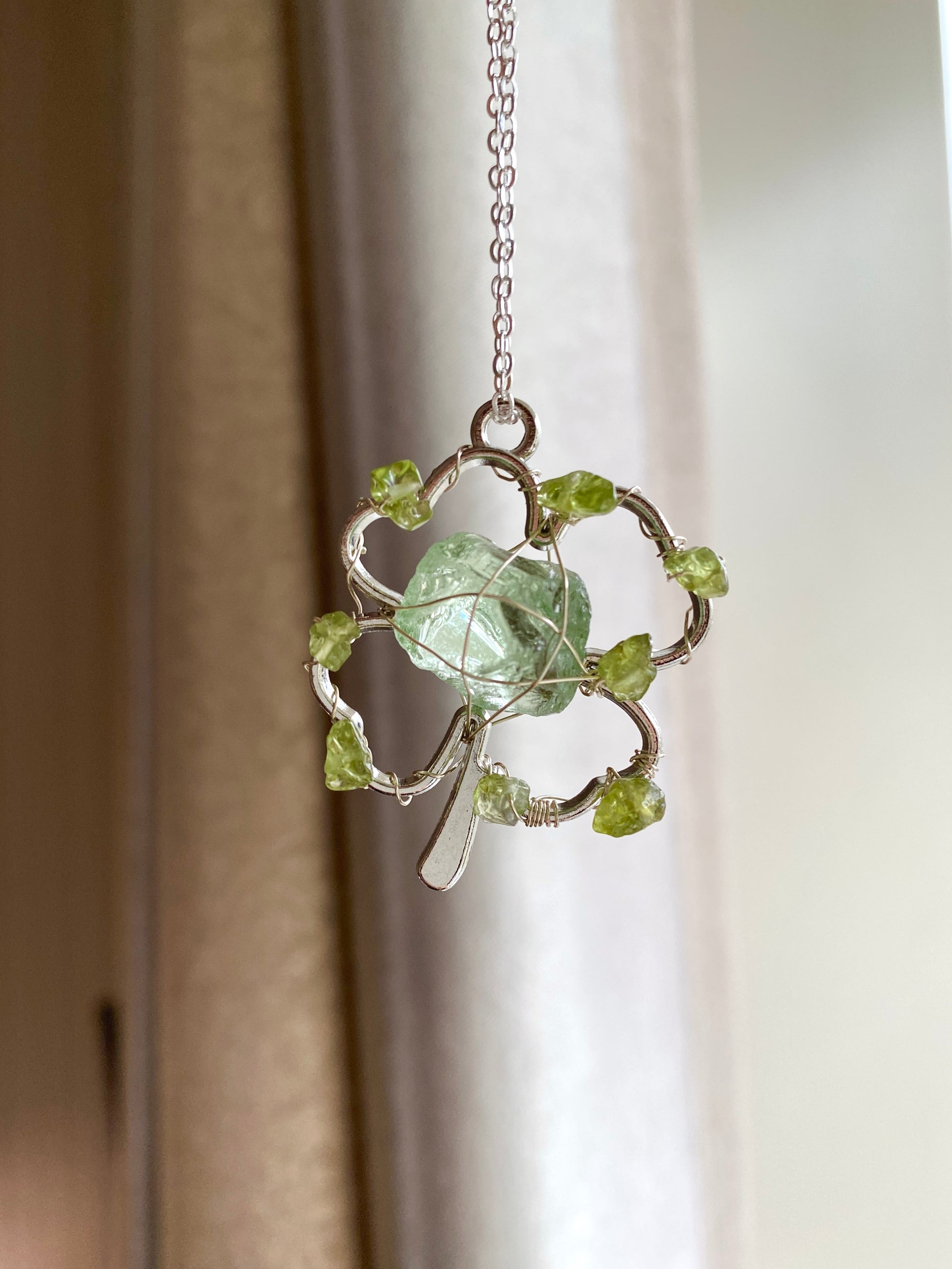 四つ葉のクローバー×琉璃原石 ワイヤーネックレス|学生・ペア向けギフト