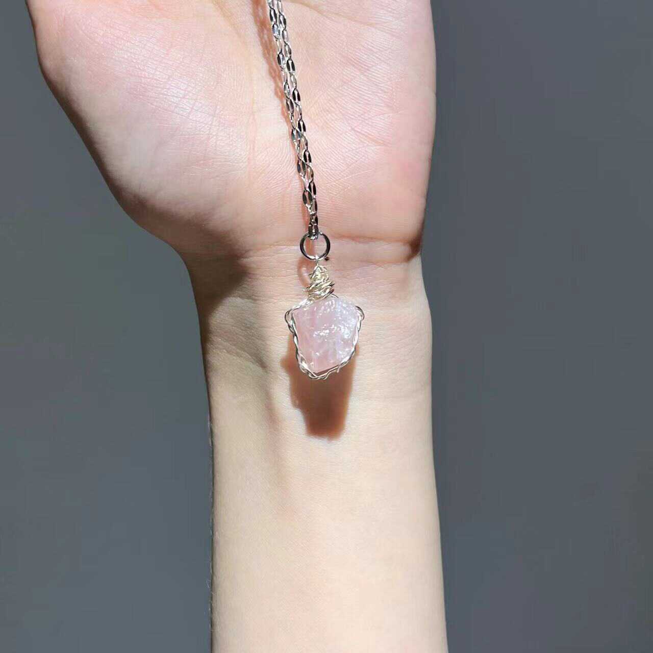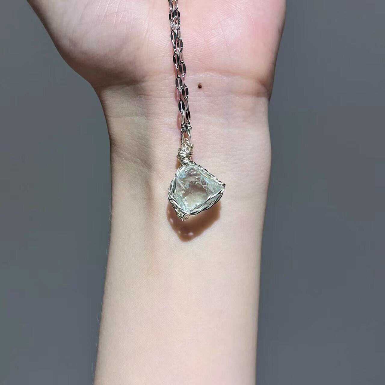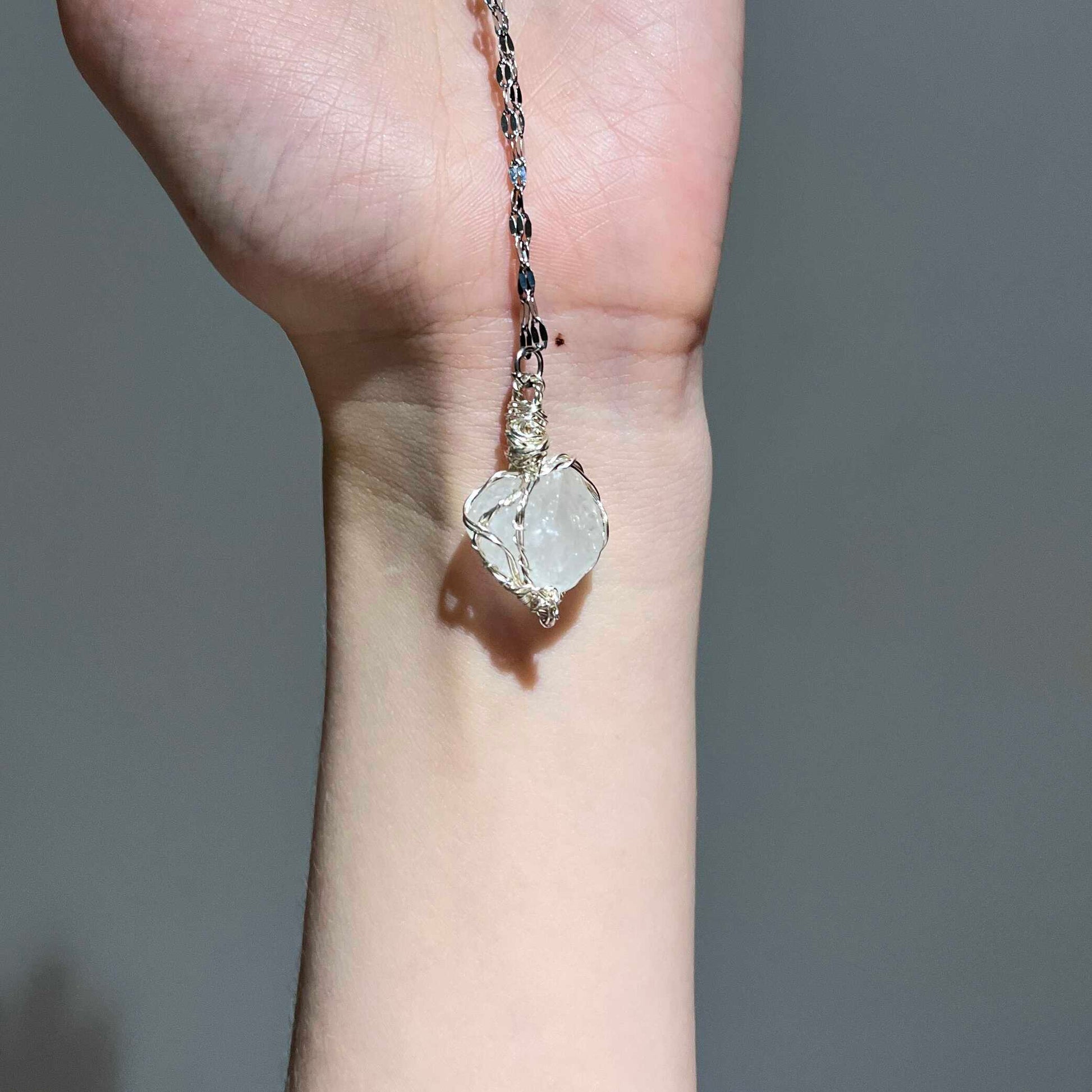 天然水晶原石 ワイヤーアートネックレス|華奢な鎖骨チェーン ギフトに最適