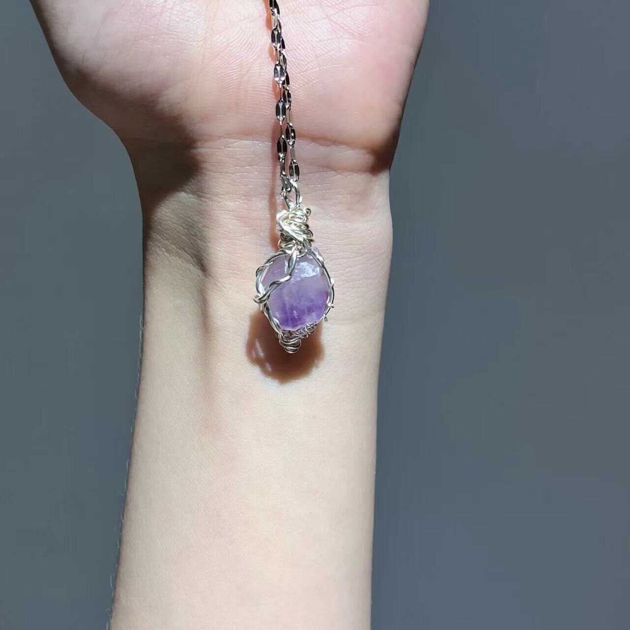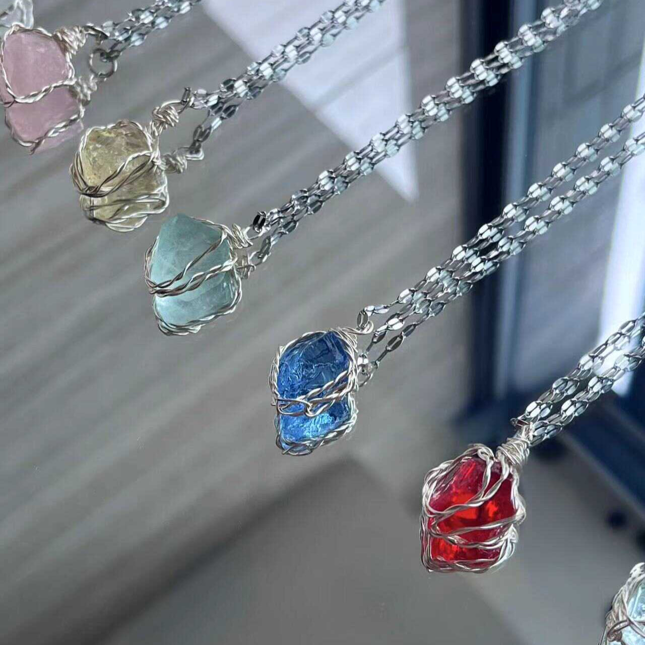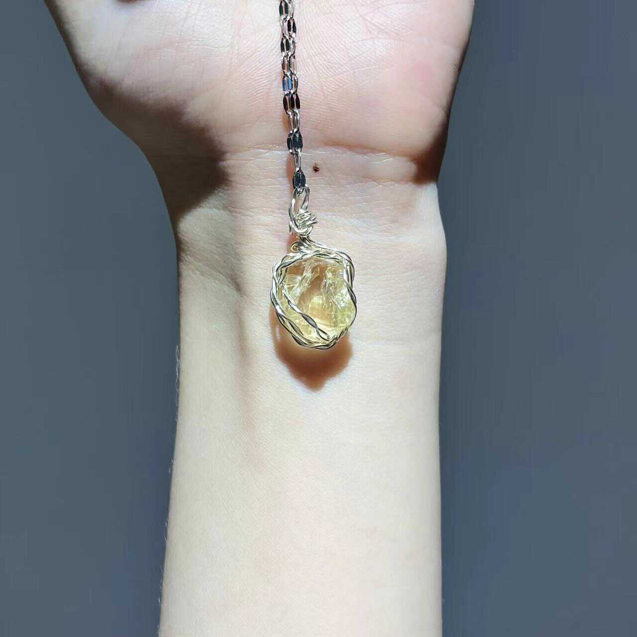 天然水晶原石 ワイヤーアートネックレス|華奢な鎖骨チェーン ギフトに最適