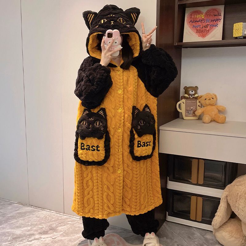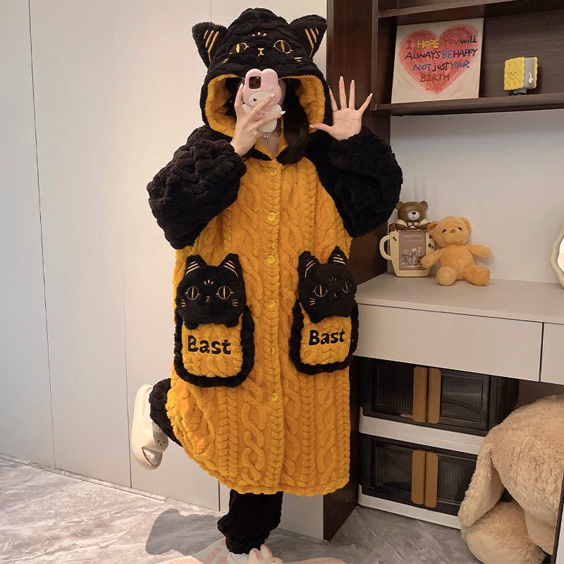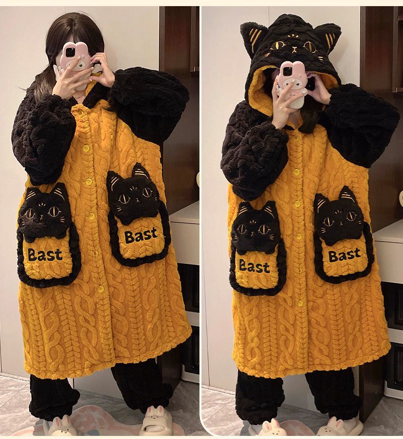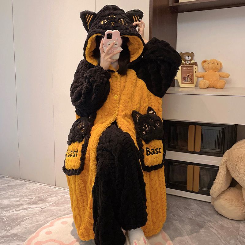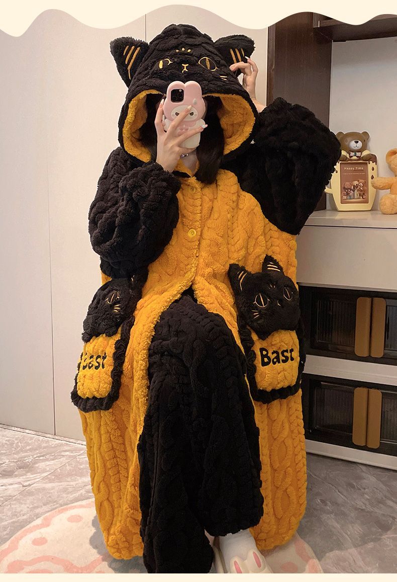 とろける触感かぼちゃネコ柄ふわもこガウン可愛いルームウェア・パジャマ