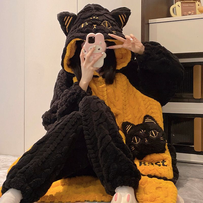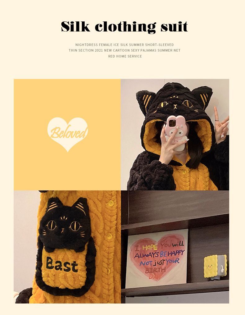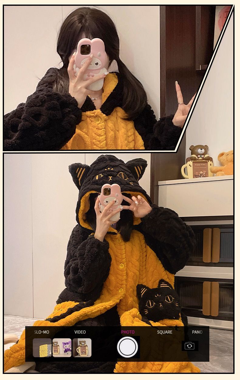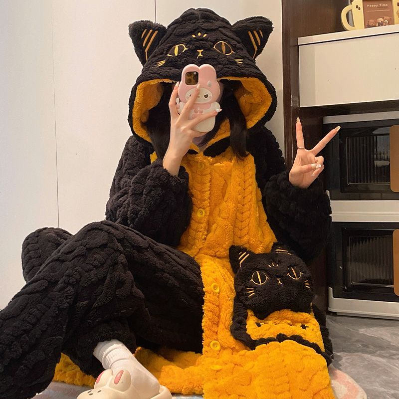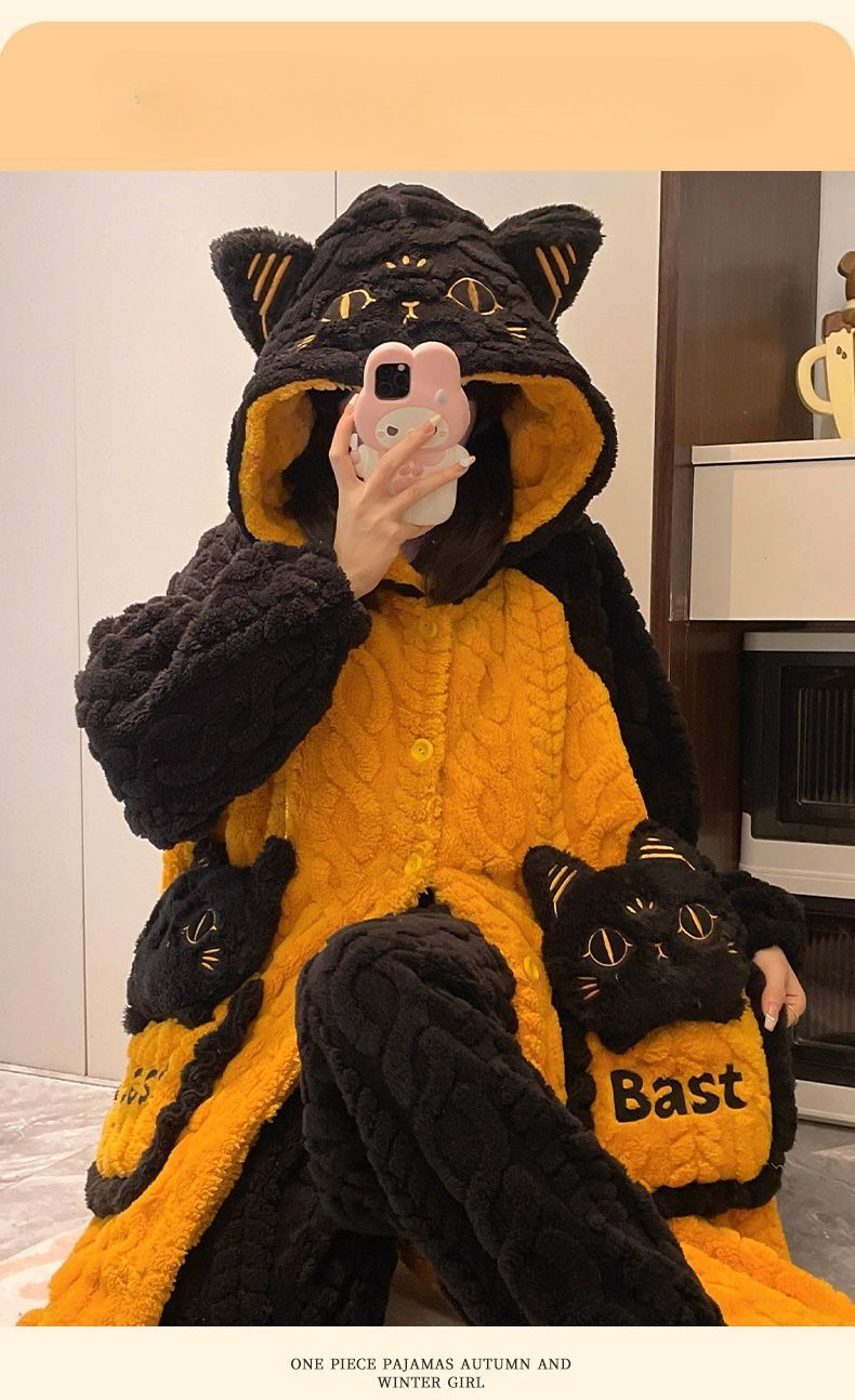 とろける触感かぼちゃネコ柄ふわもこガウン可愛いルームウェア・パジャマ