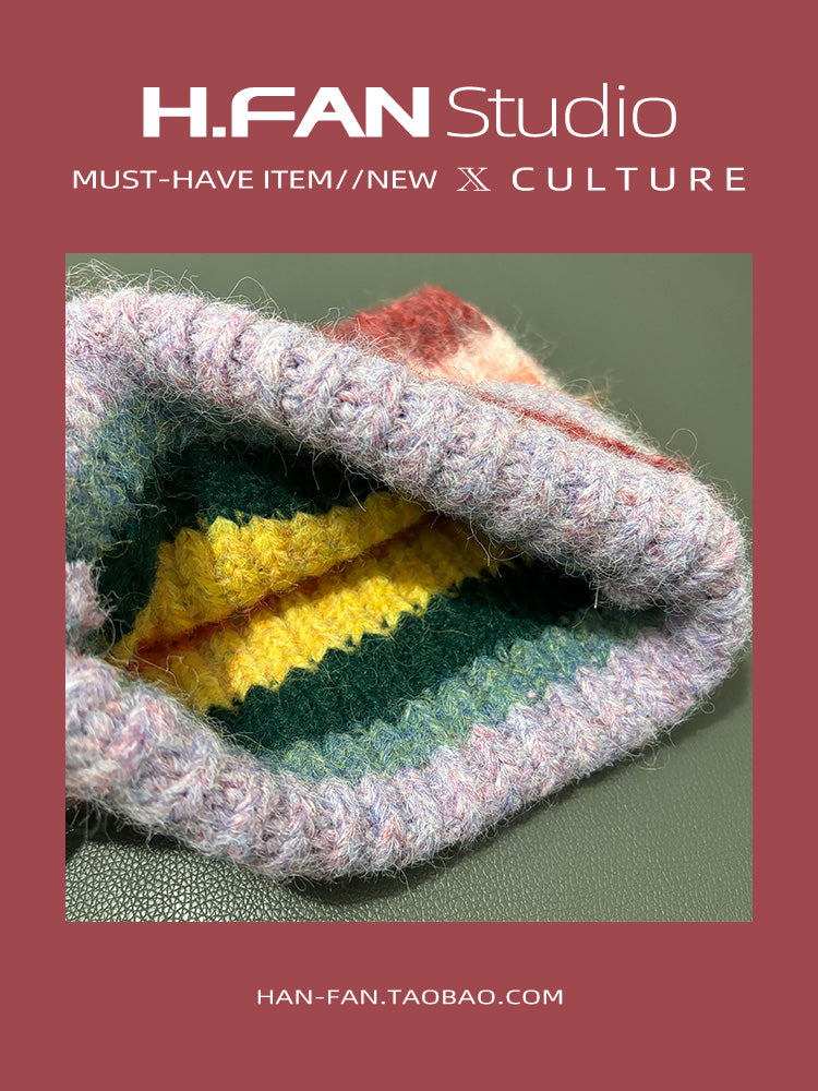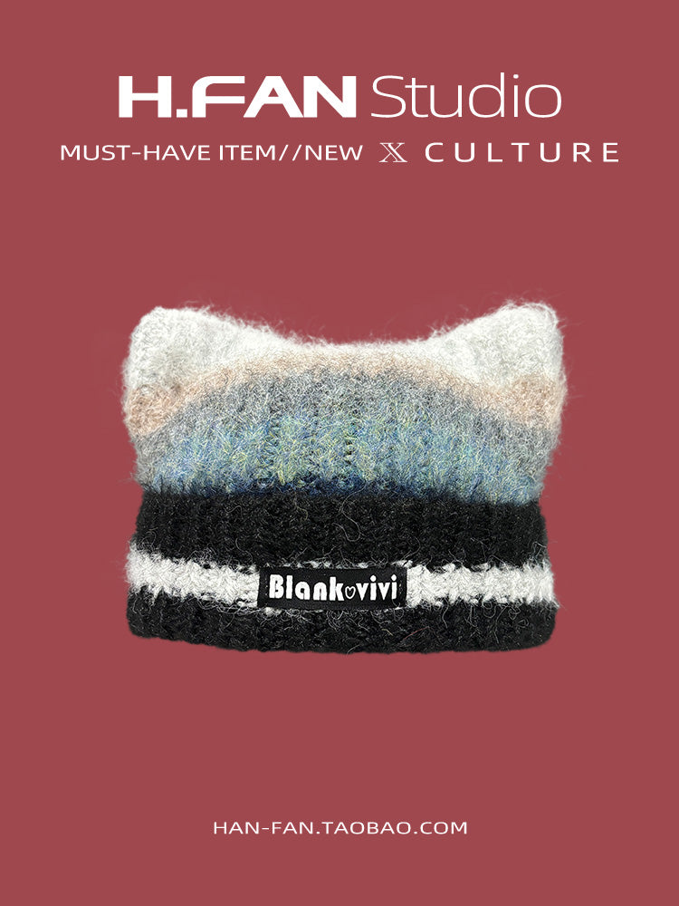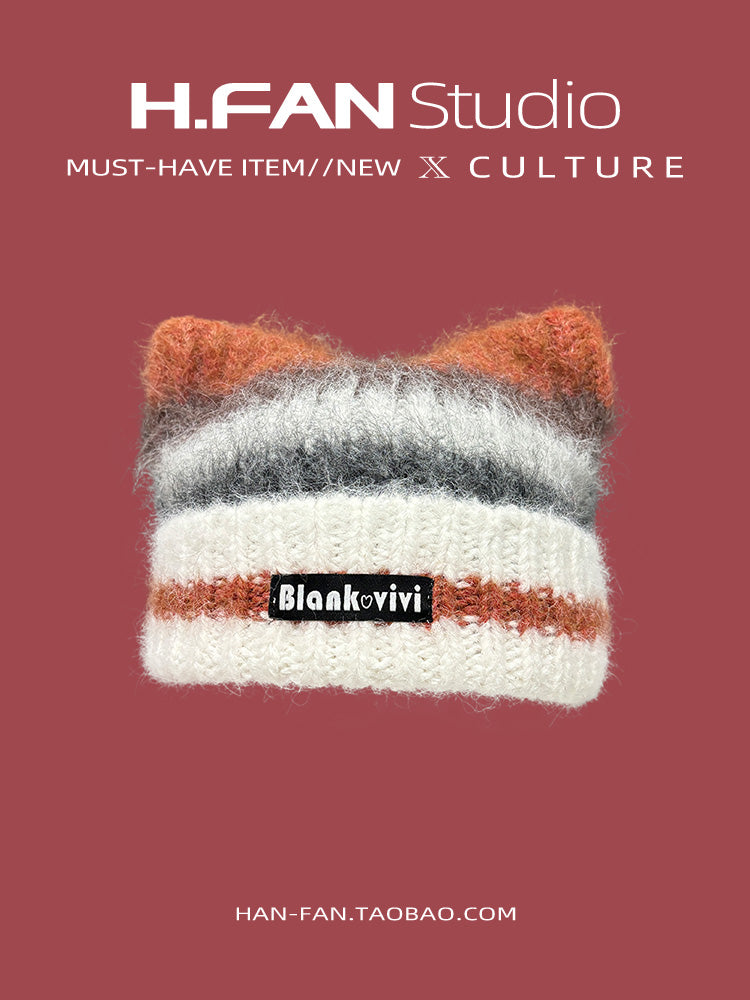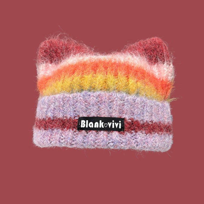 ドーパミン配色ニット帽|猫耳付き・カラフルで暖かいポップなビーニー