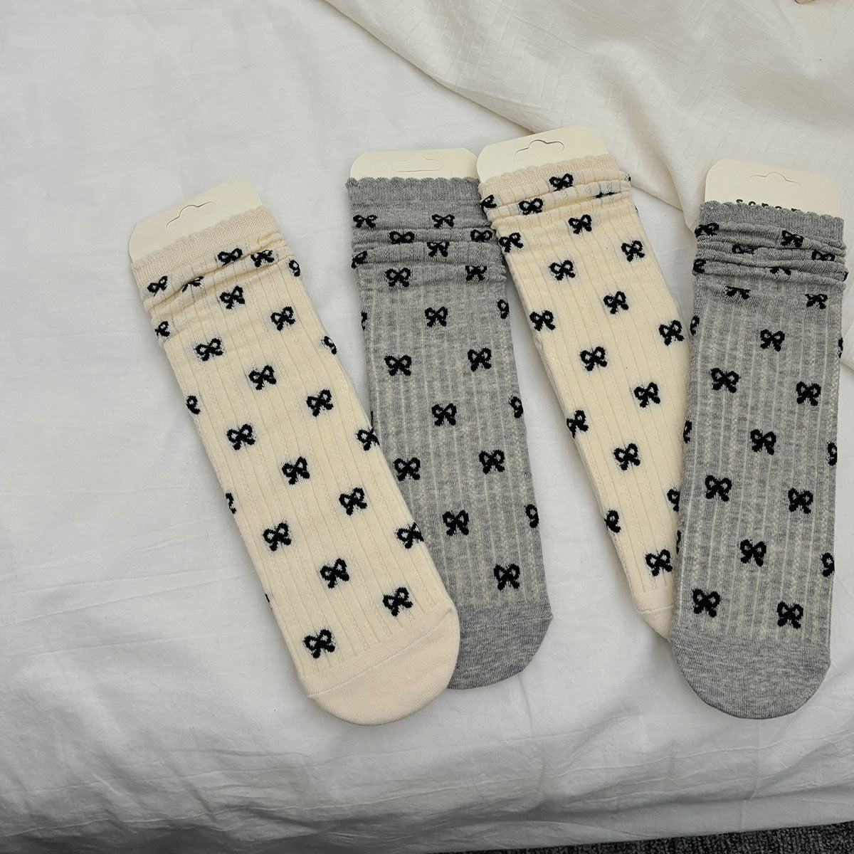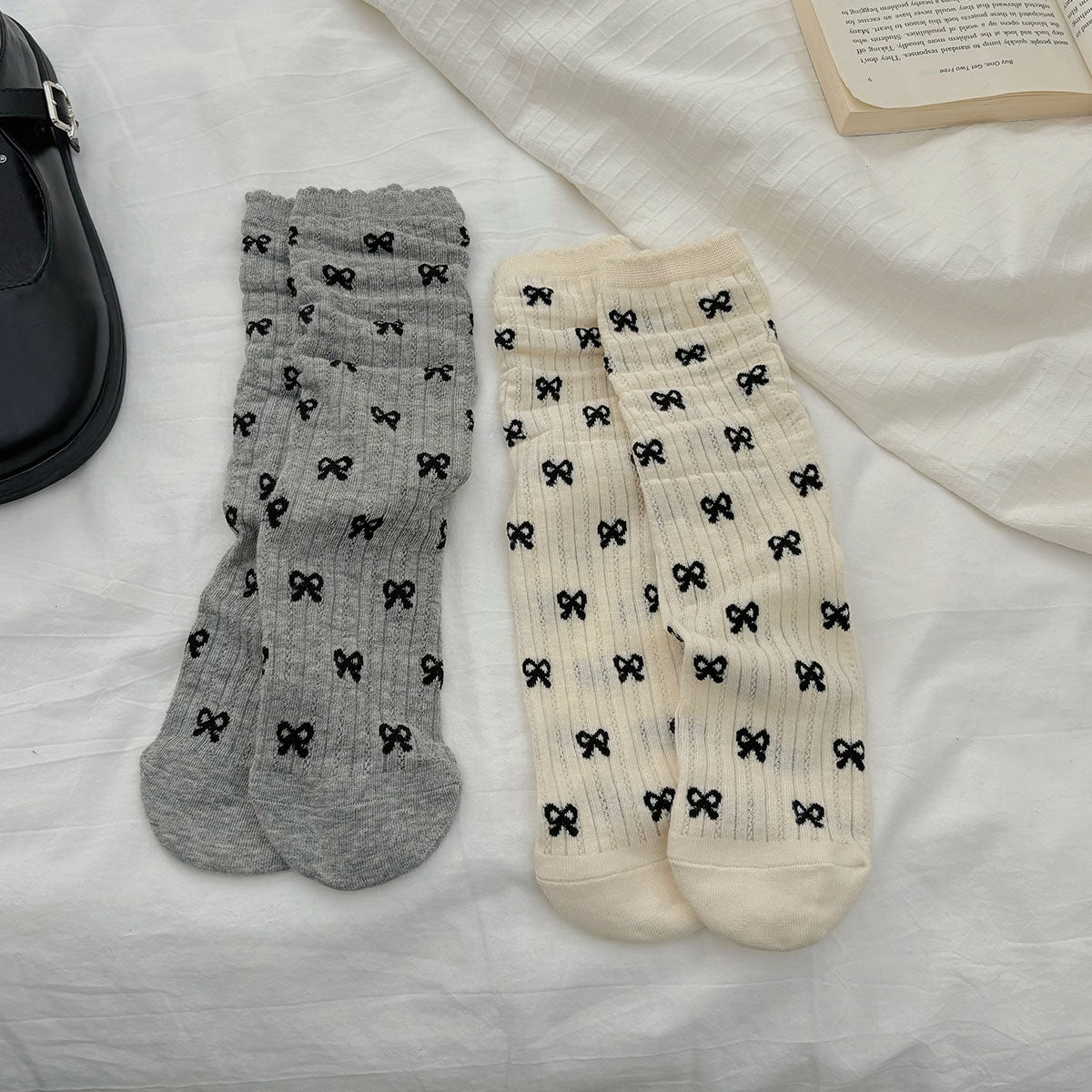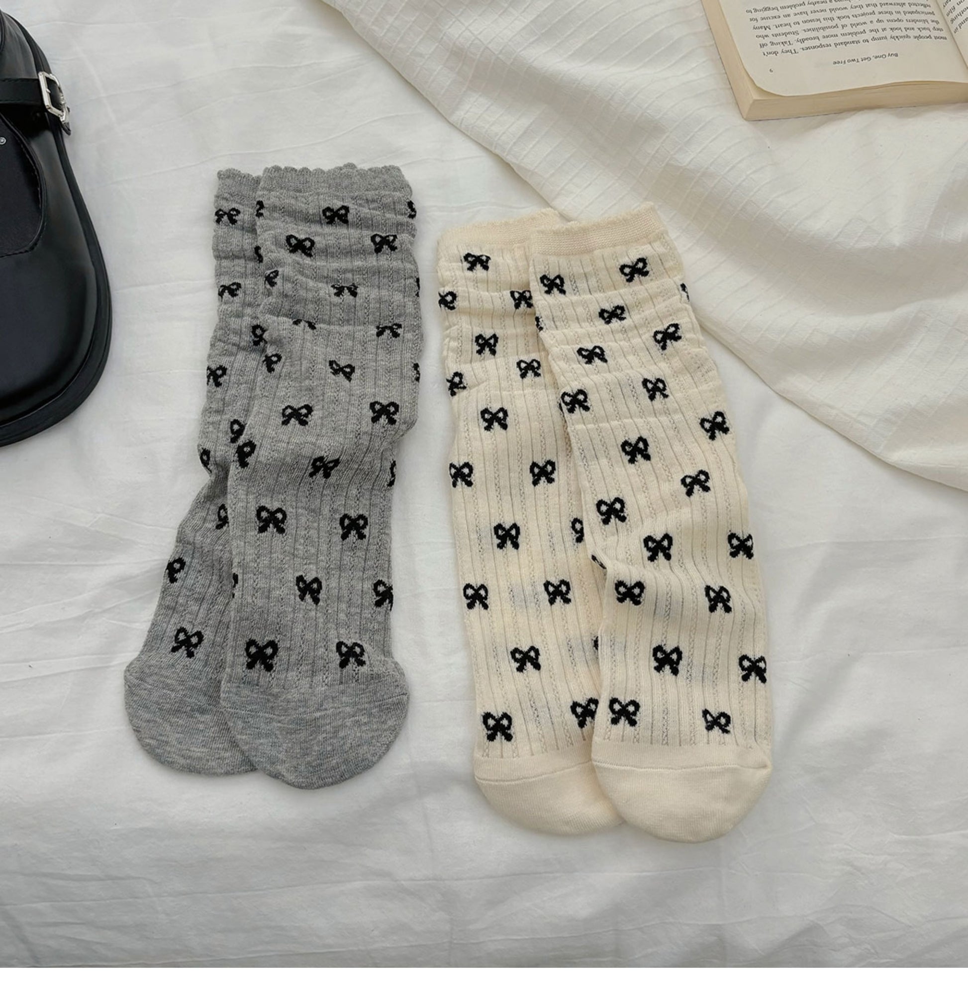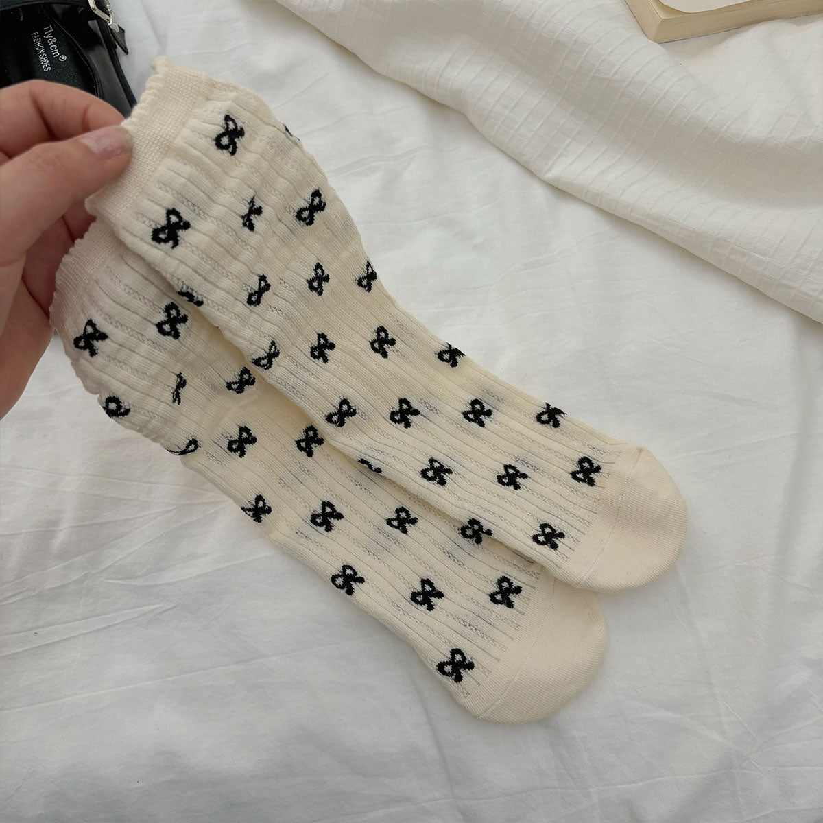 レースリボン×メッシュソックス|夏用薄手・通気性◎の中筒靴下