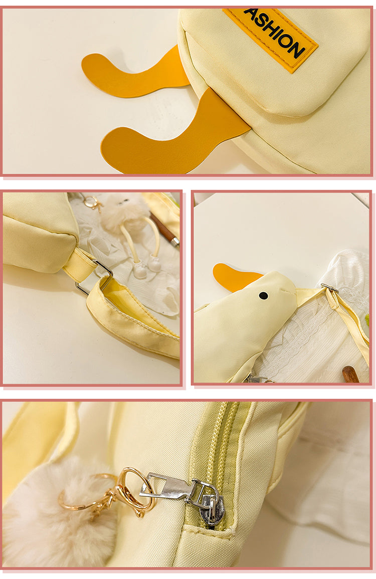 かわいいアヒルの形が特徴の帆布ミニバッグ。スマホや小物の収納にぴったりなサイズで、夏のお出かけ・フェス・散歩にも活躍。個性派女子におすすめ!