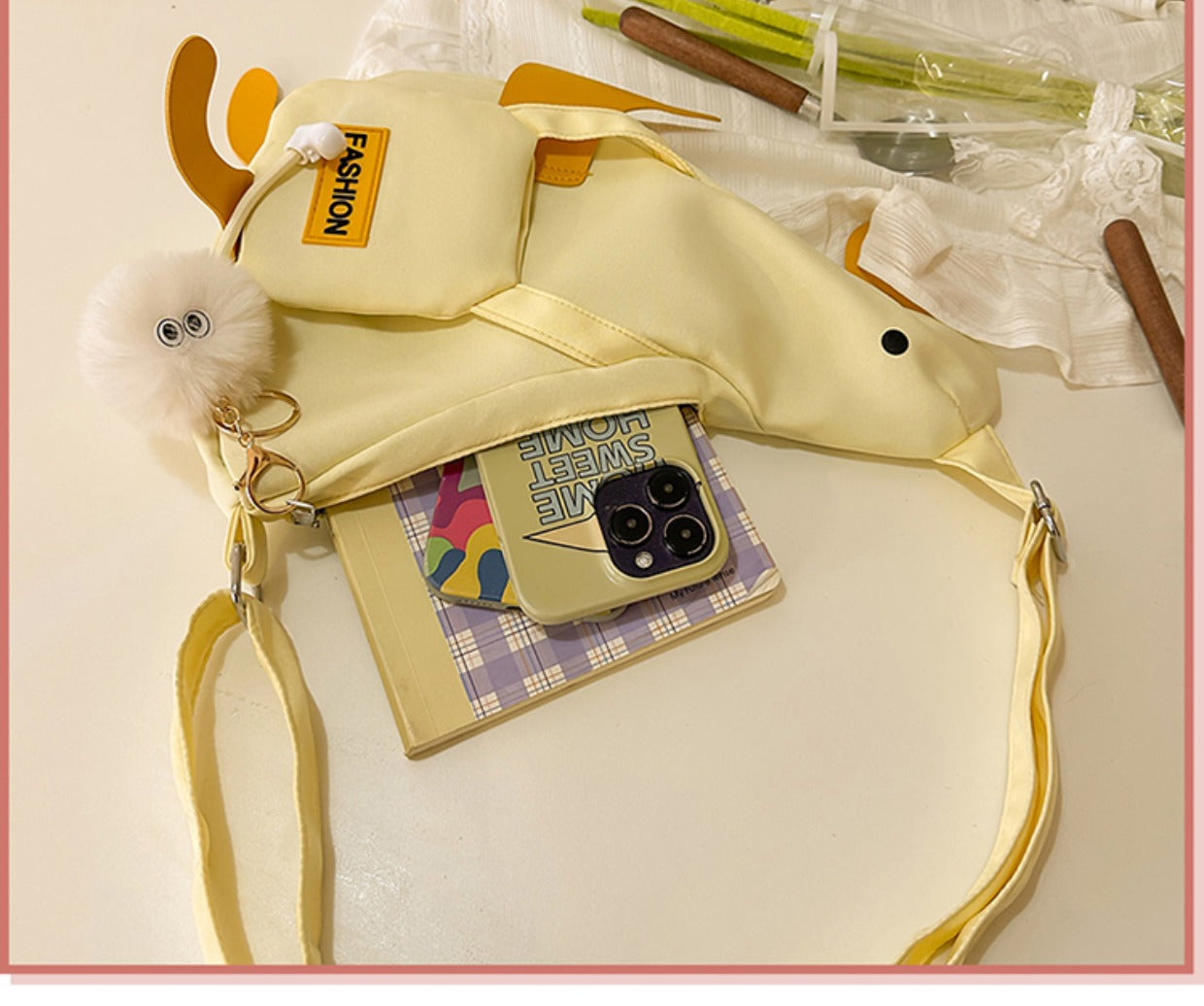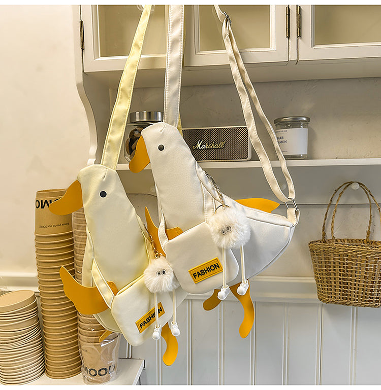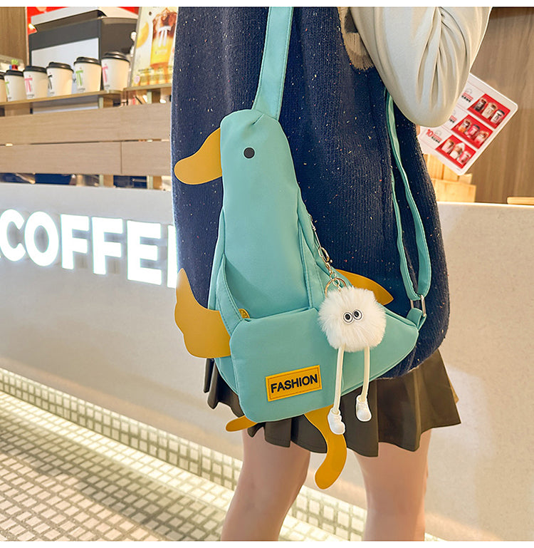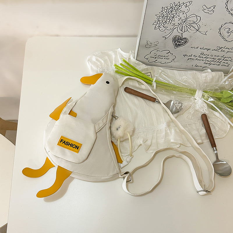 アヒル型キャンバスボディバッグ|夏にぴったりの個性派スマホポーチ