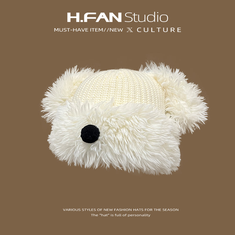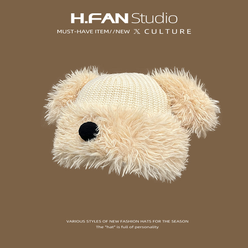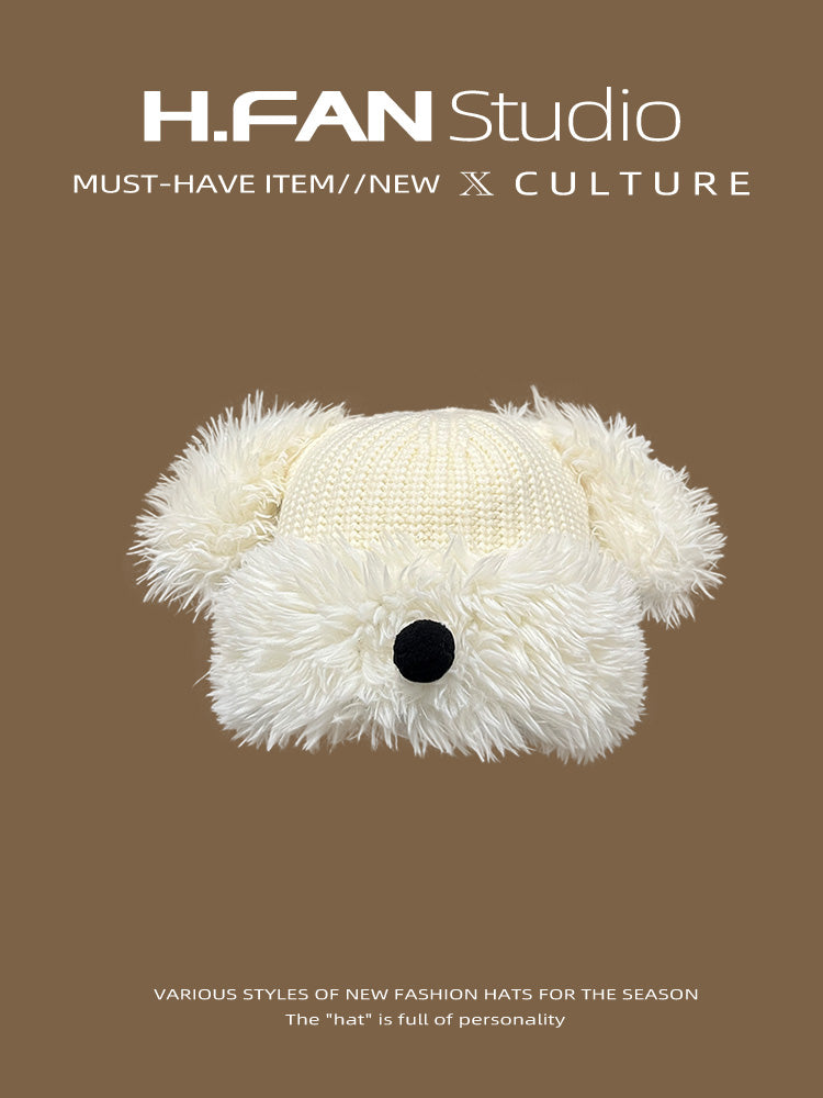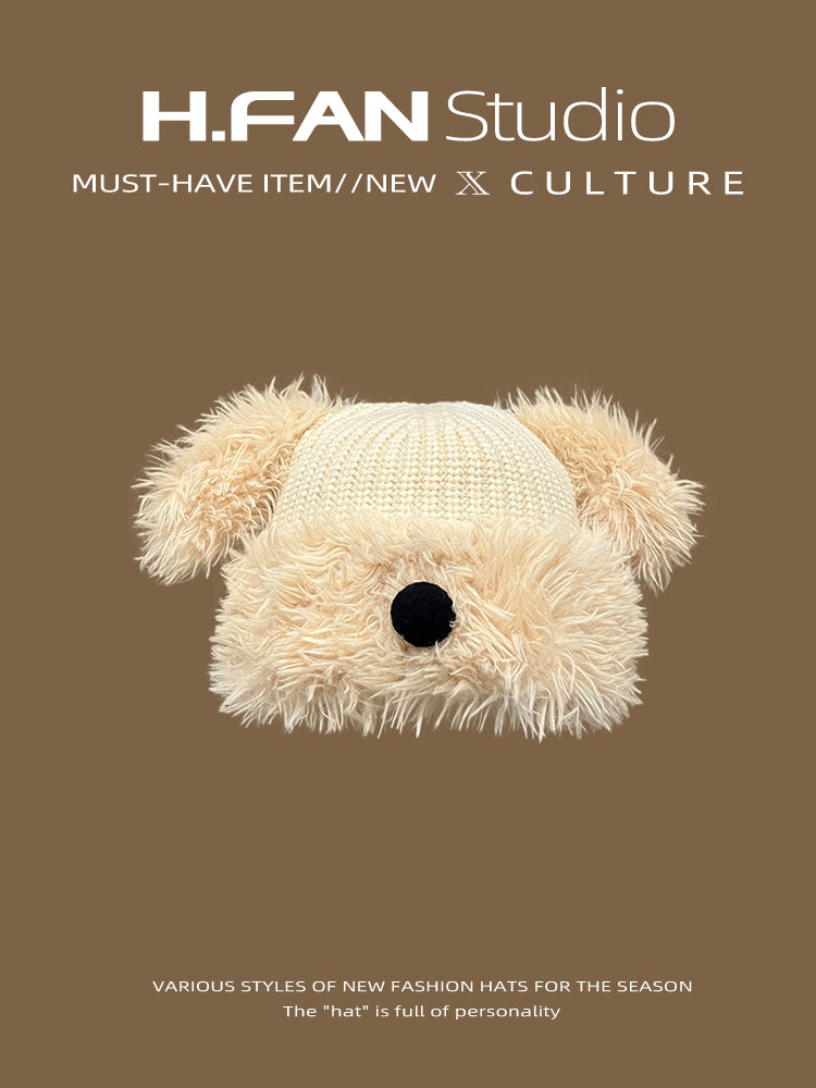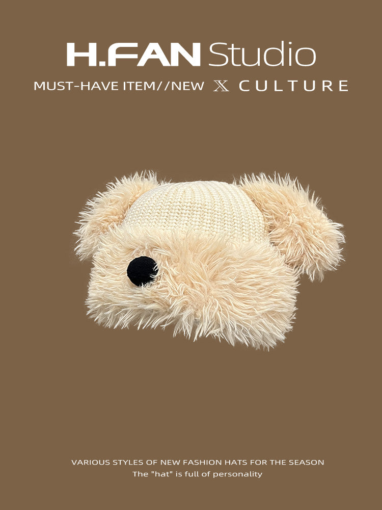 犬耳付きニットキャップ|もこもこ可愛い日系ガーリー防寒帽子