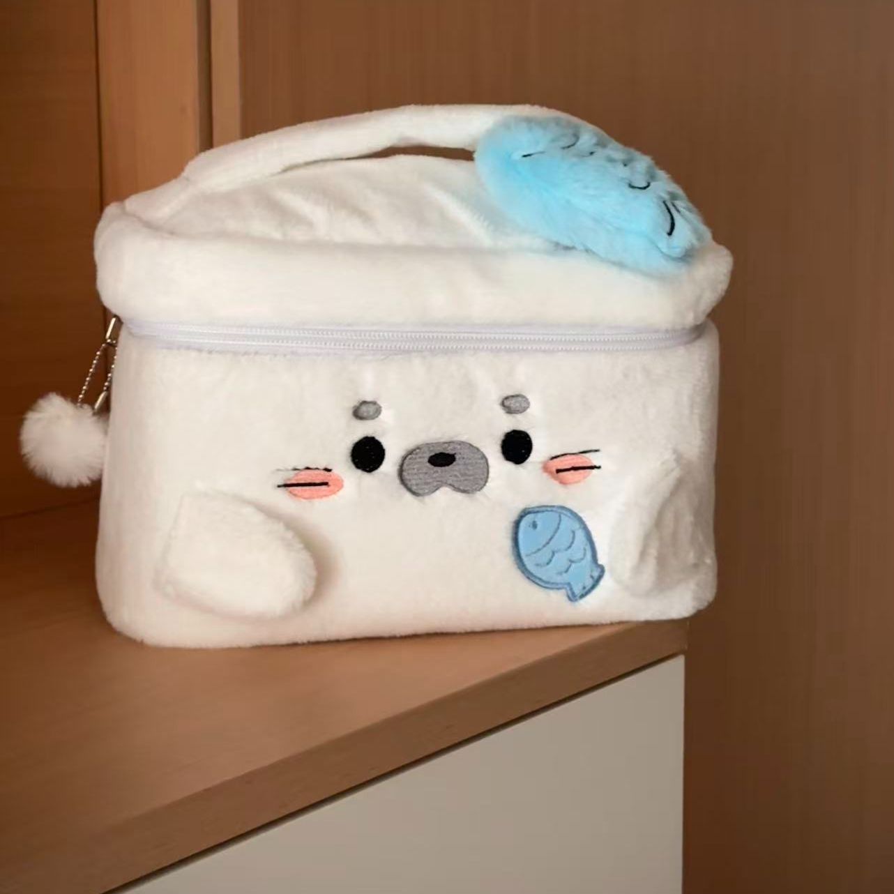 もっちりアザラシの多機能ポーチ|お出かけに便利な仕切り付き化粧ポーチ