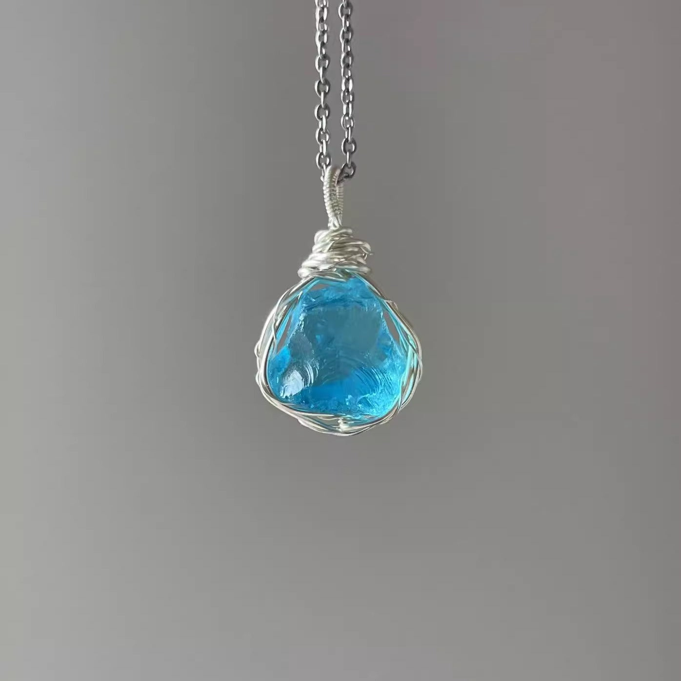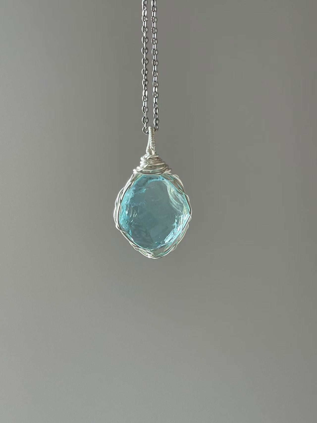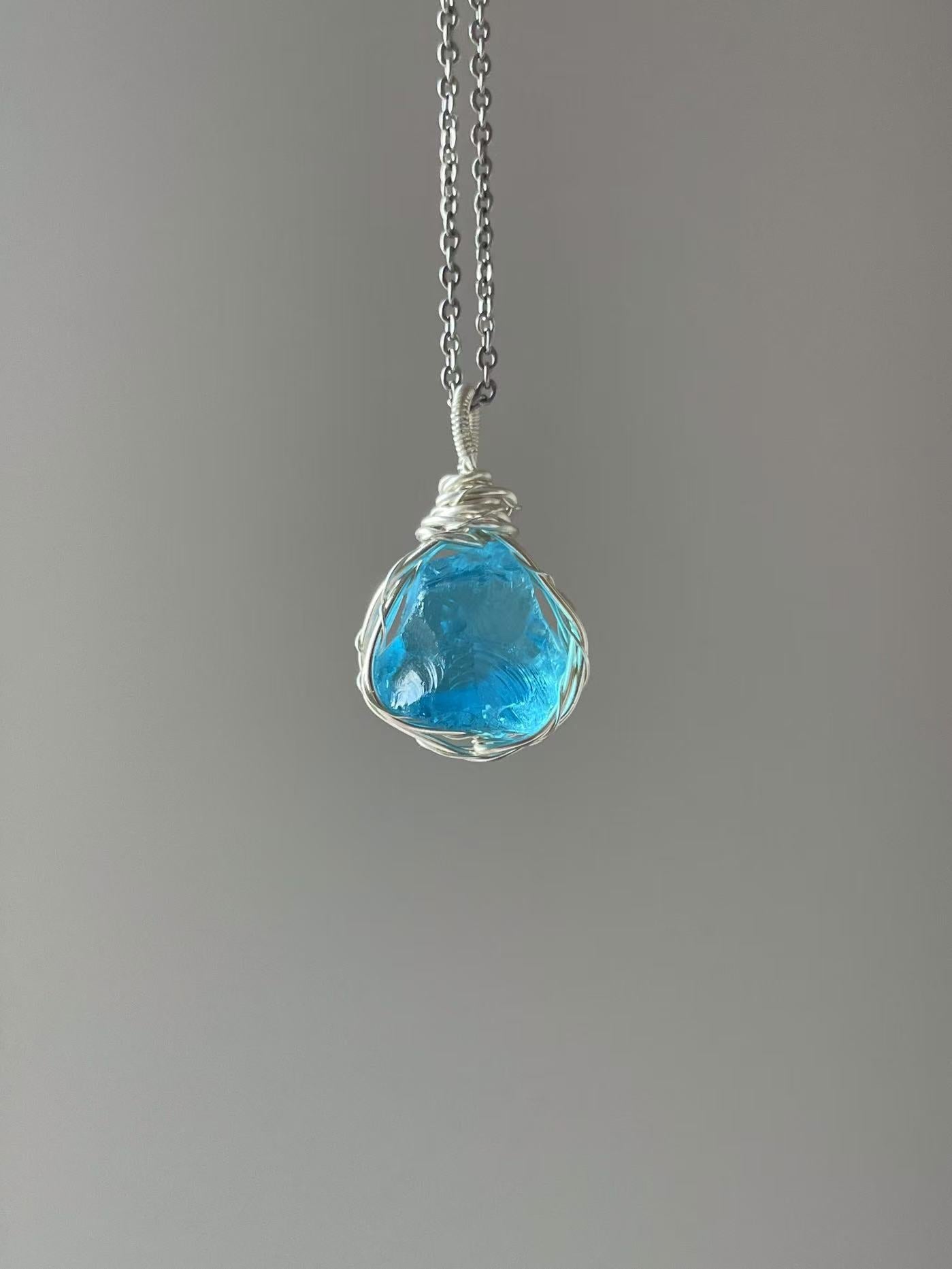 森系ガラス原石ネックレス|手作り鎖骨チェーン 学生に人気