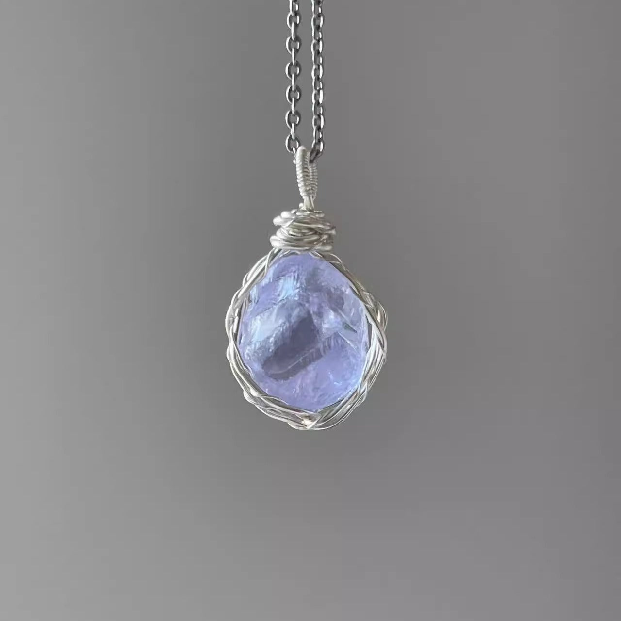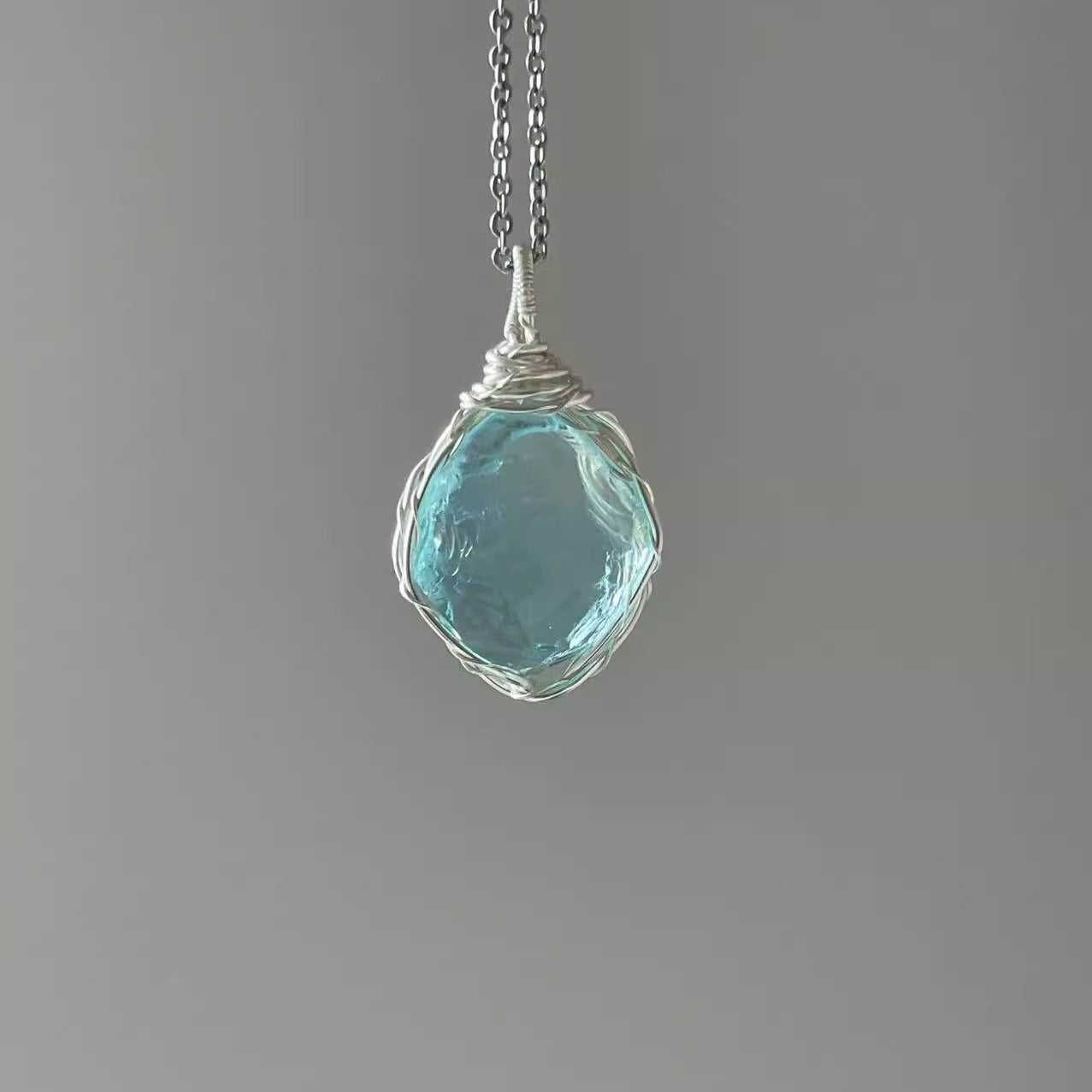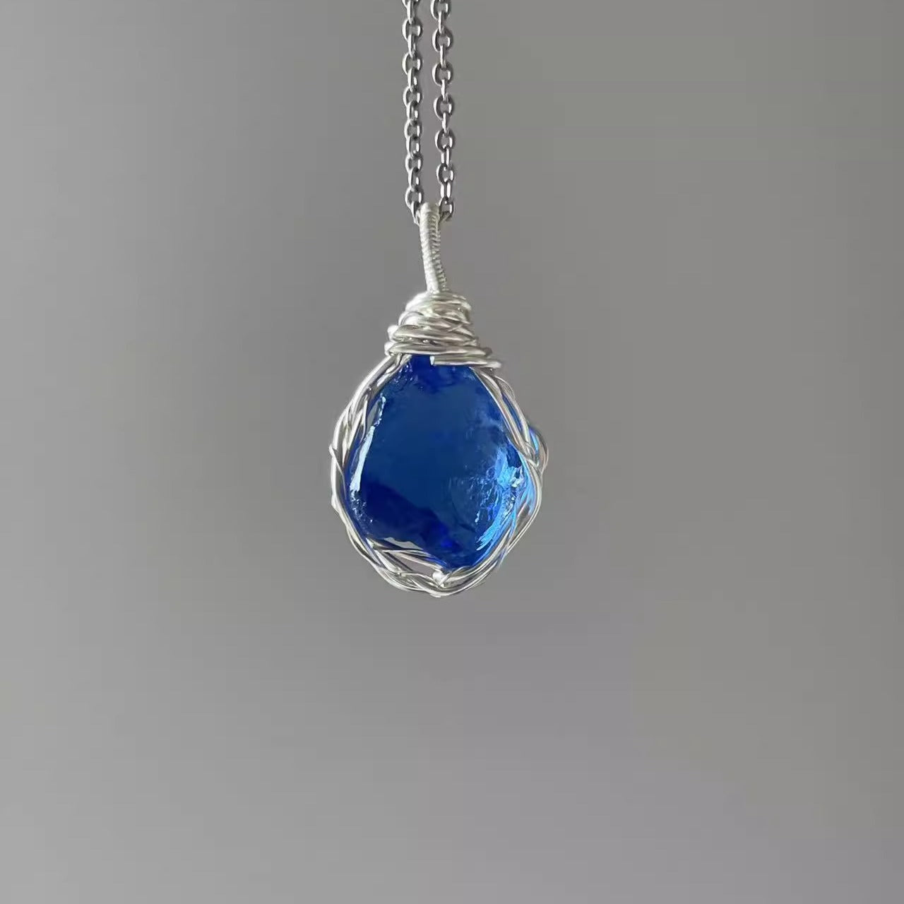 森系ガラス原石ネックレス|手作り鎖骨チェーン 学生に人気