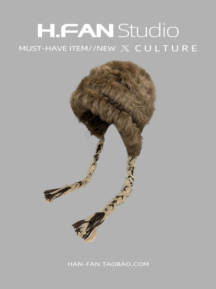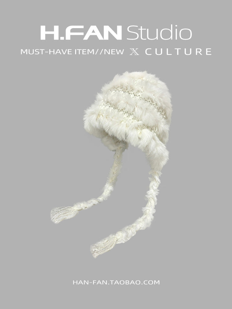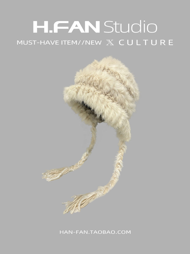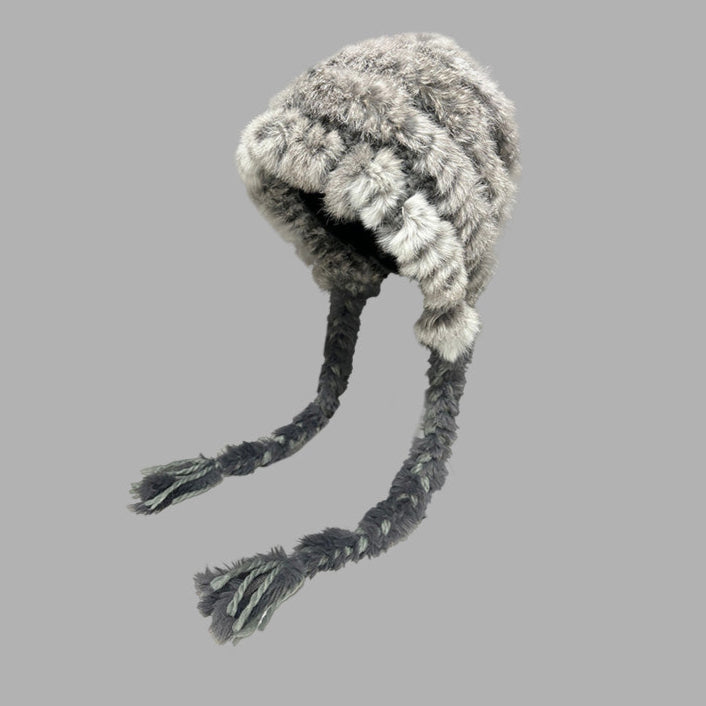 ふわふわ耳あて付きニット帽|防寒・小顔効果◎ うさぎ毛混ニットキャップ