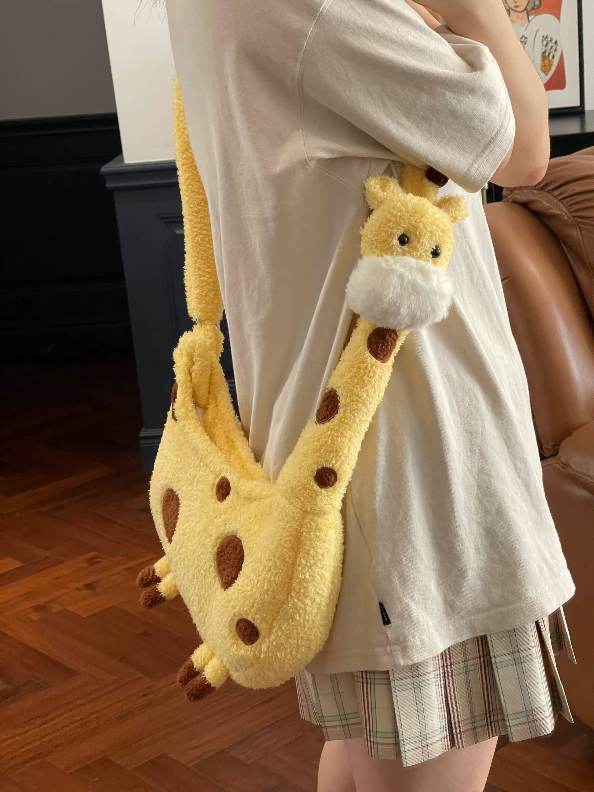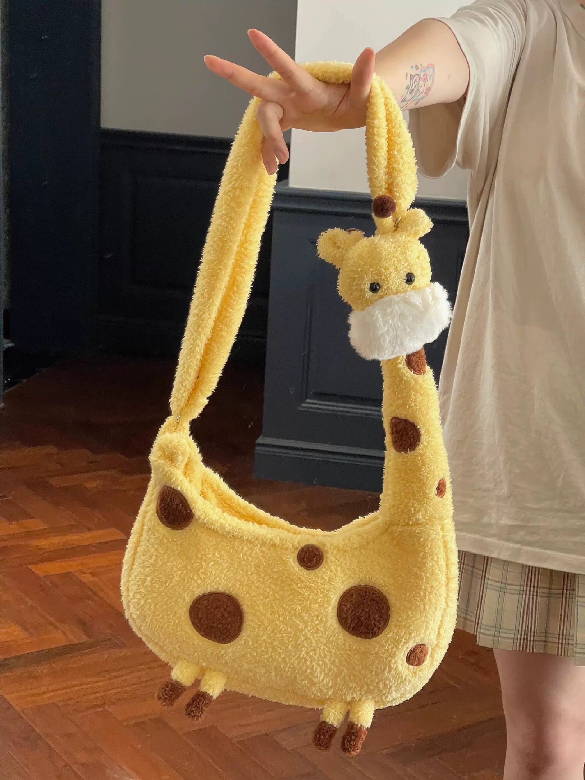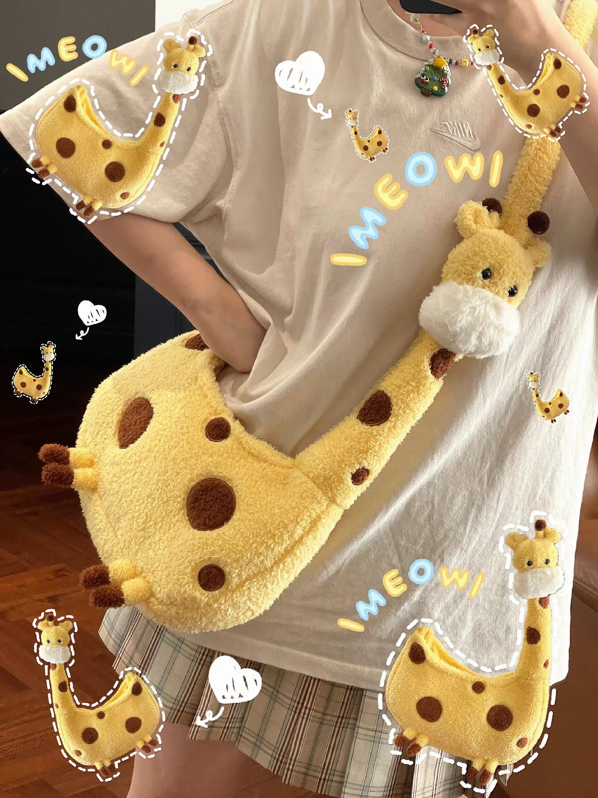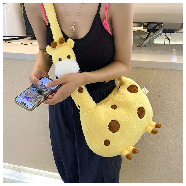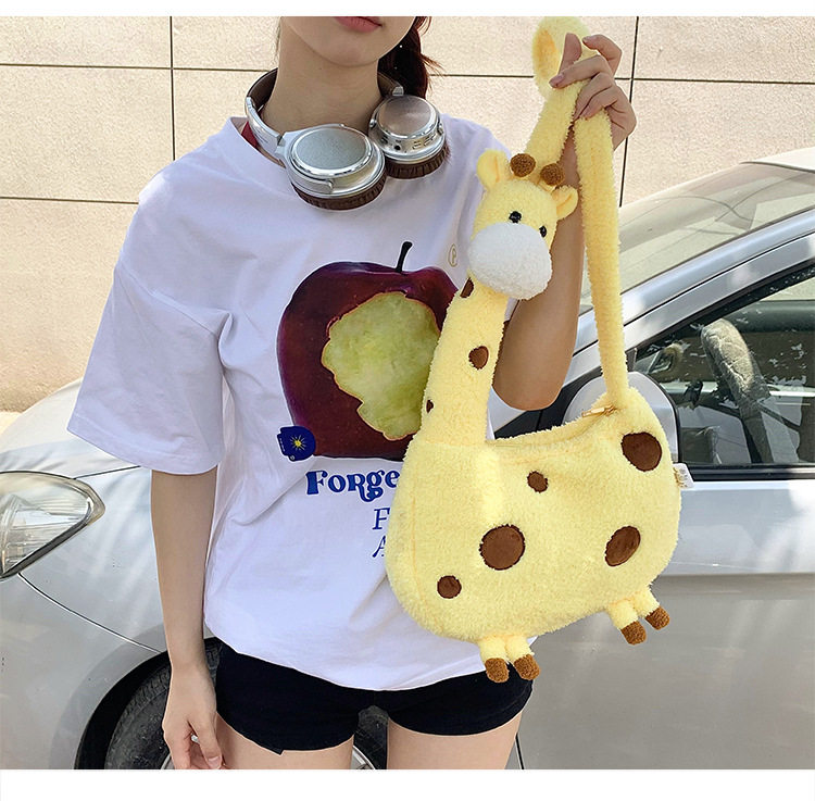 キリンぬいぐるみショルダーバッグ|可愛い大学生向けふわもこ斜めがけ