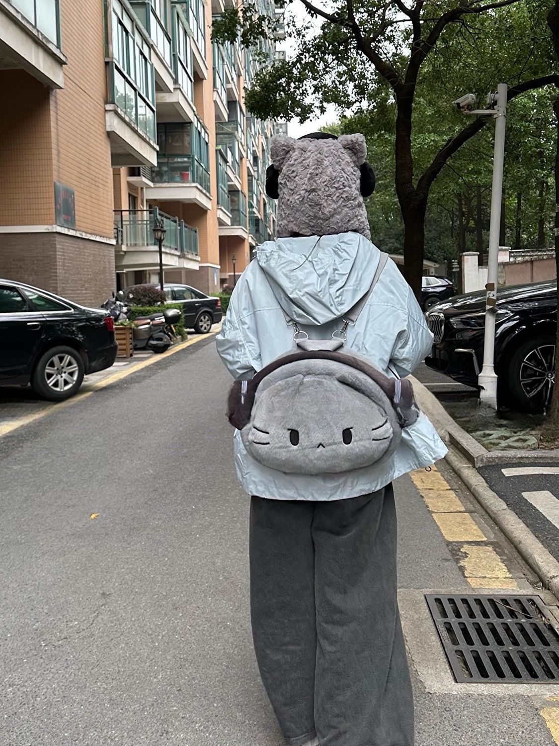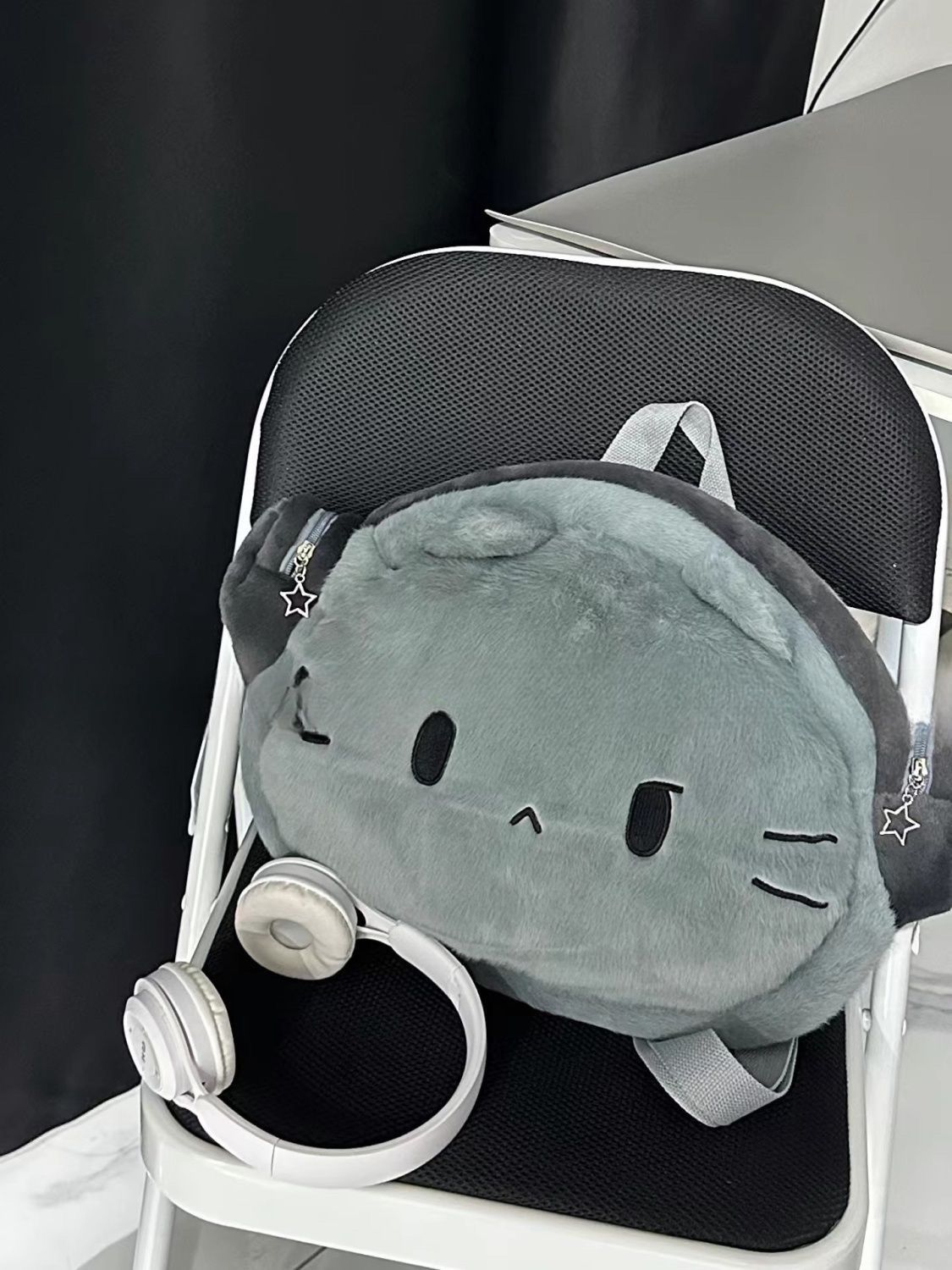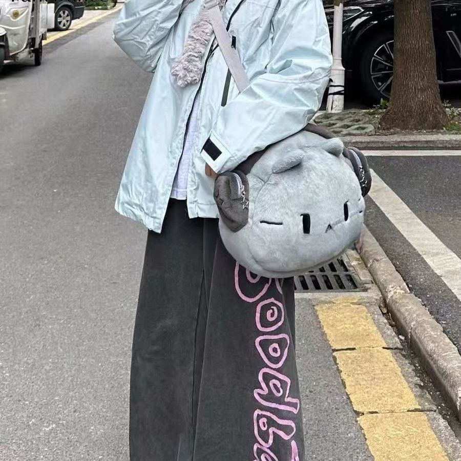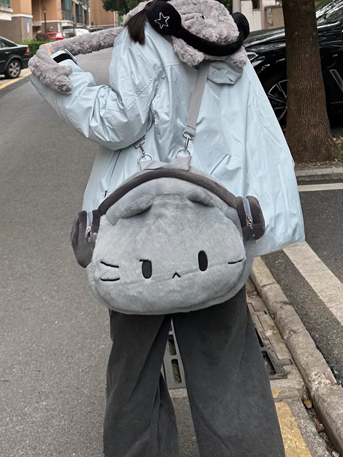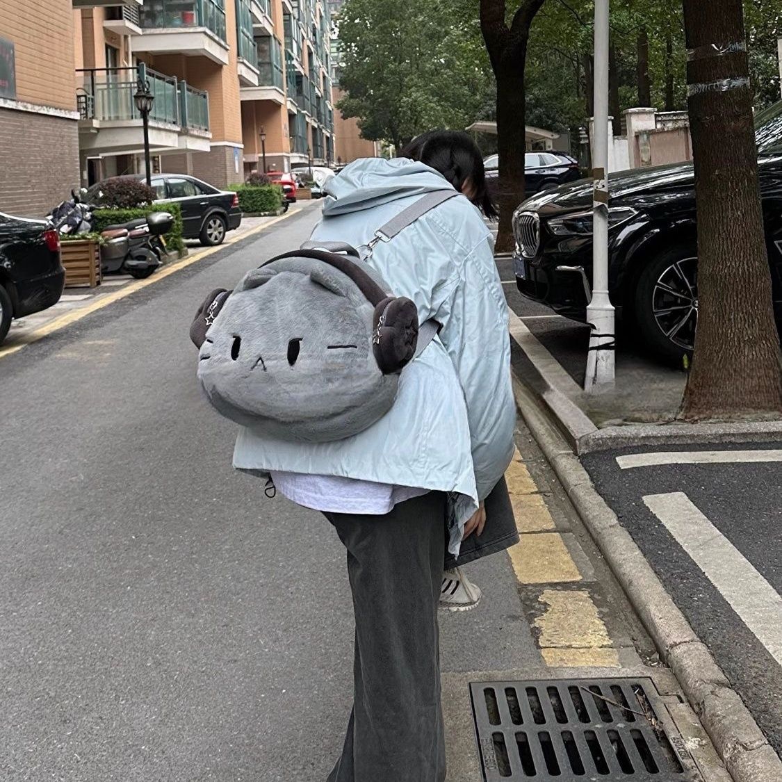 ヘッドフォンガールねこぬいぐるみリュック|大容量かわいい書包
