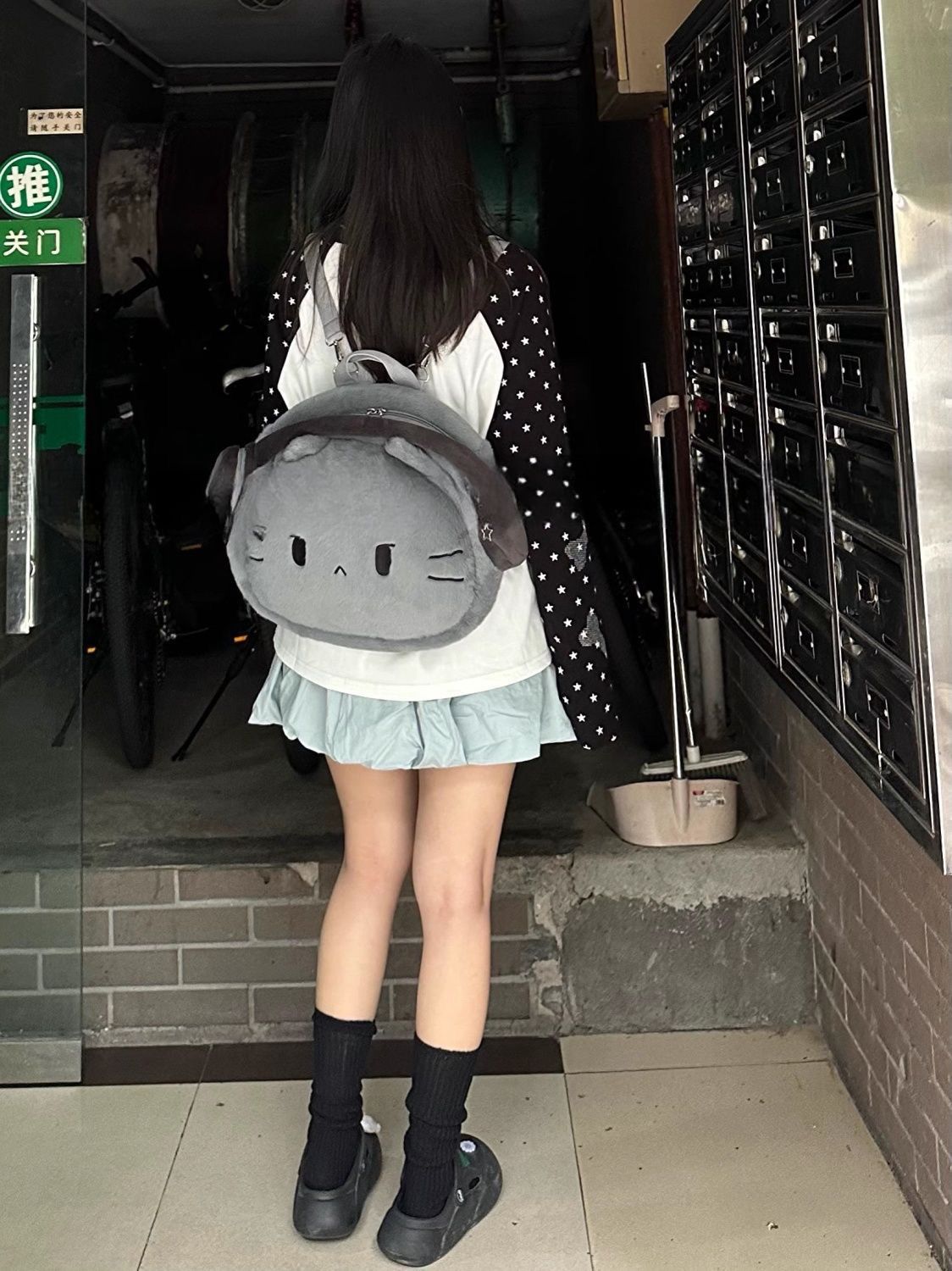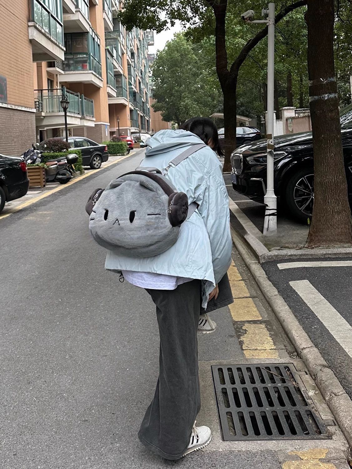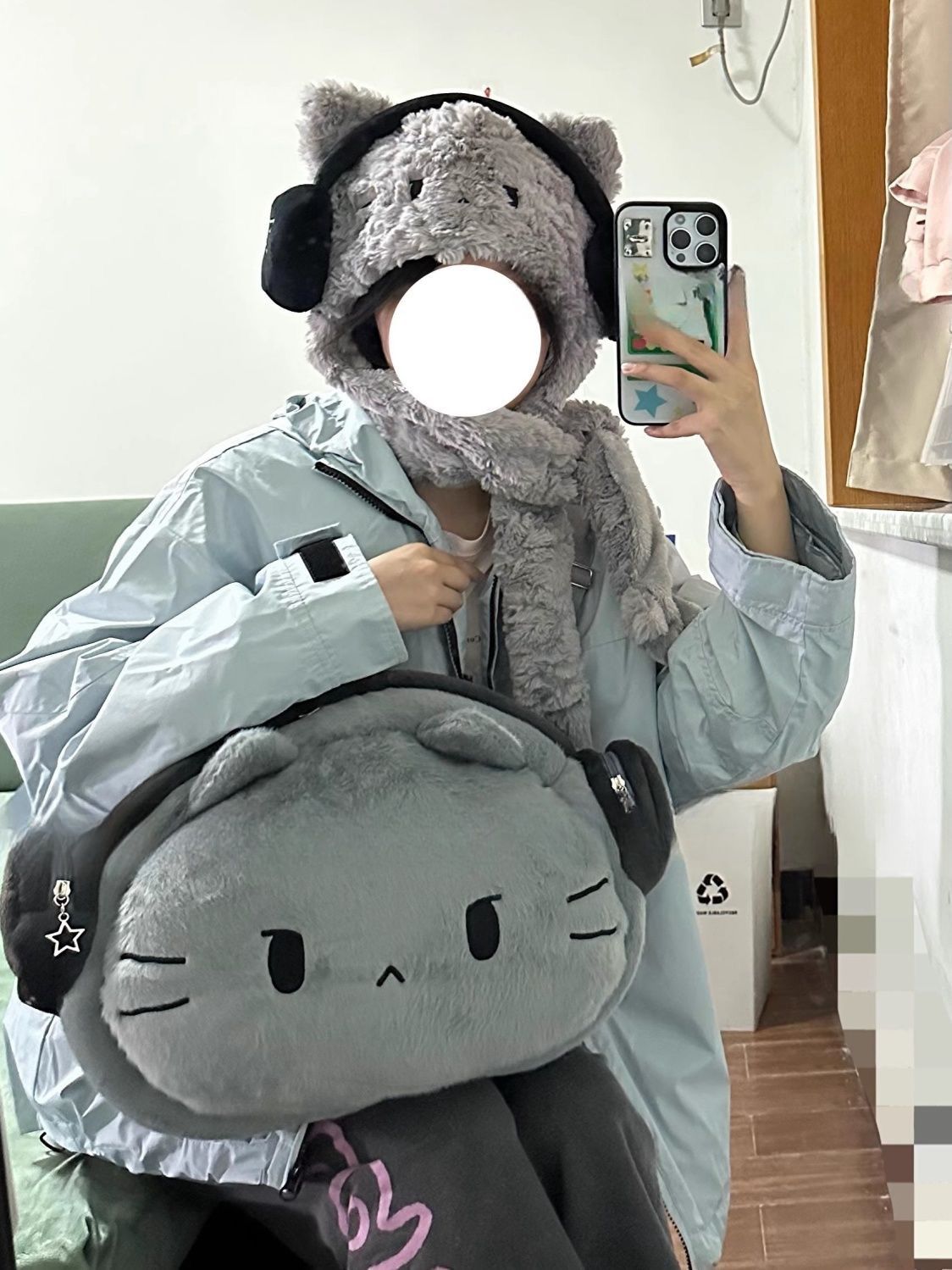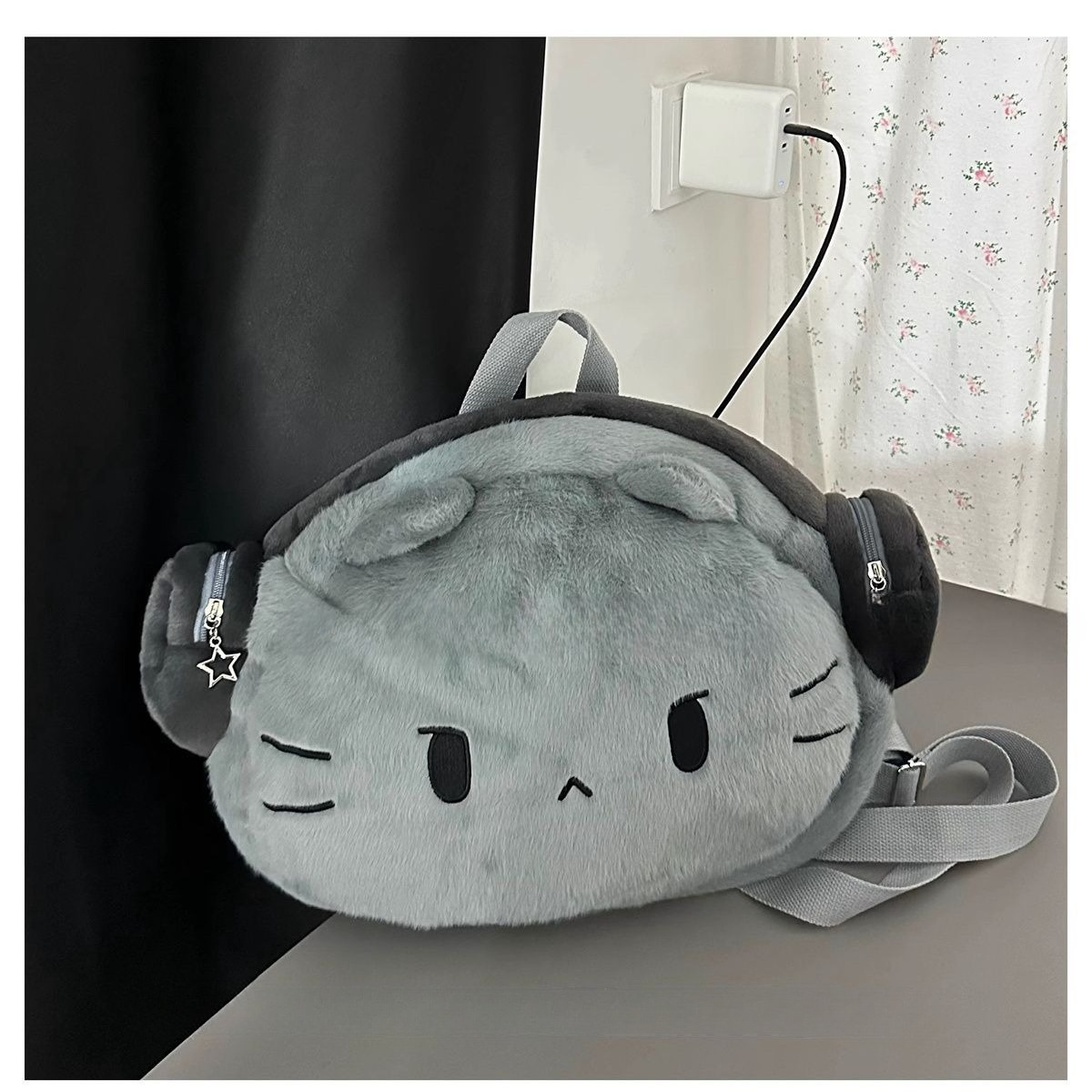 ヘッドフォンガールねこぬいぐるみリュック|大容量かわいい書包