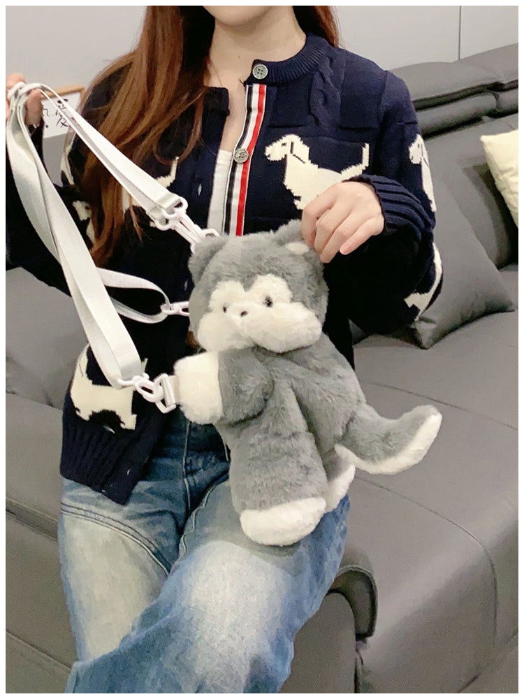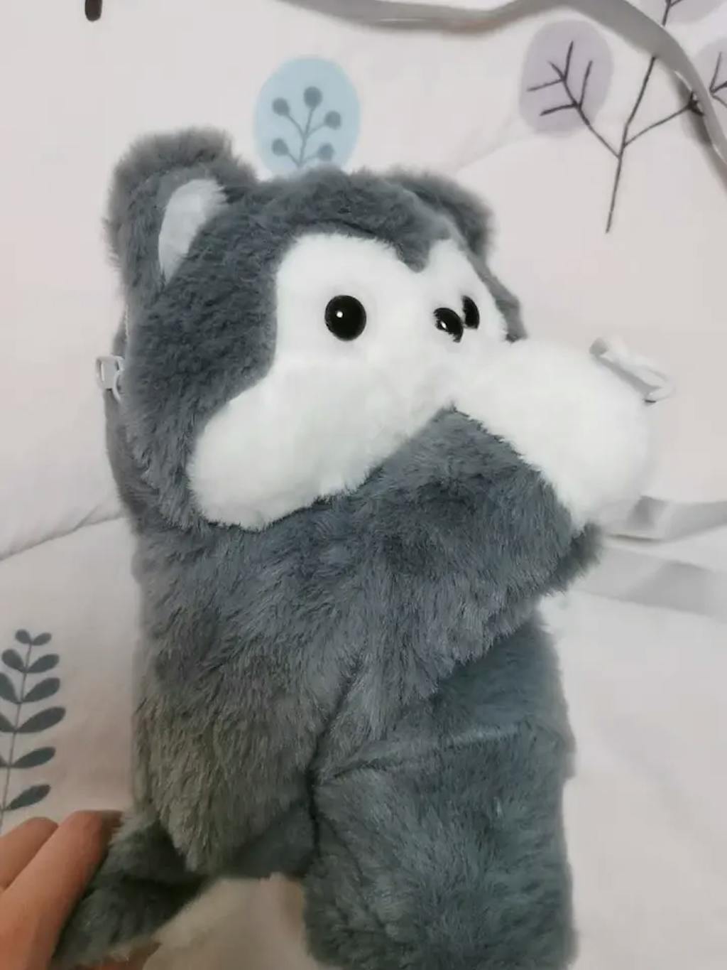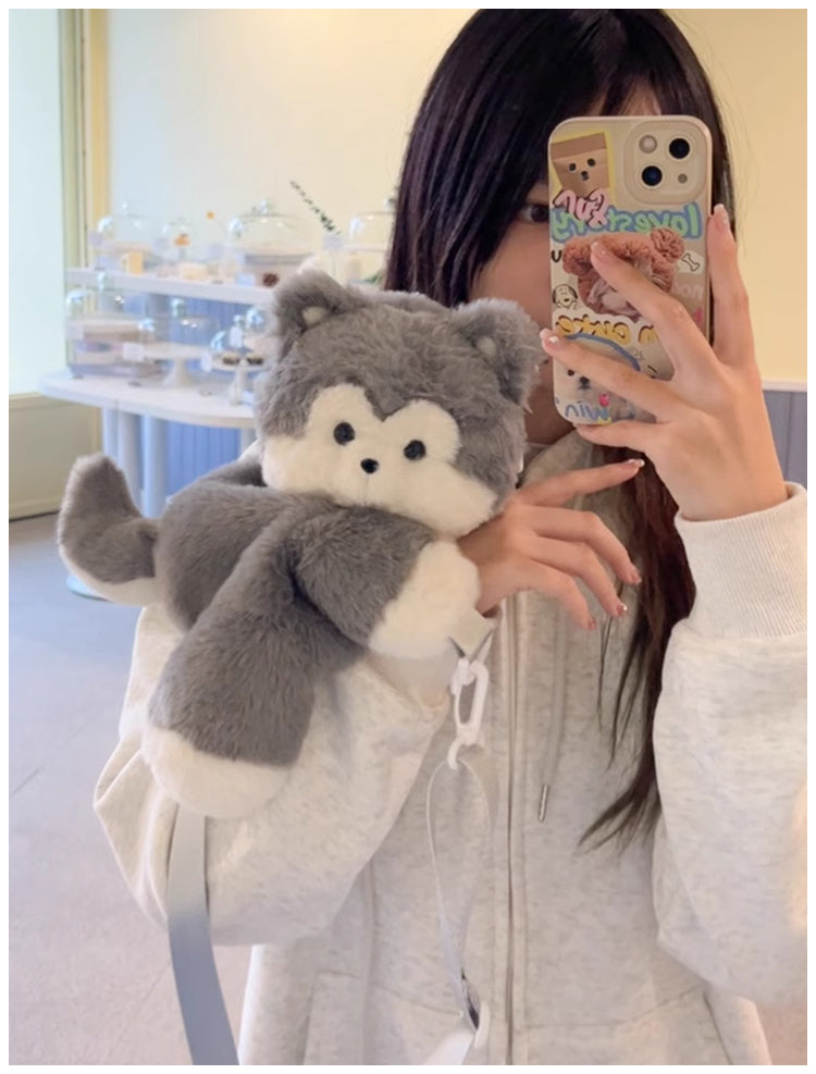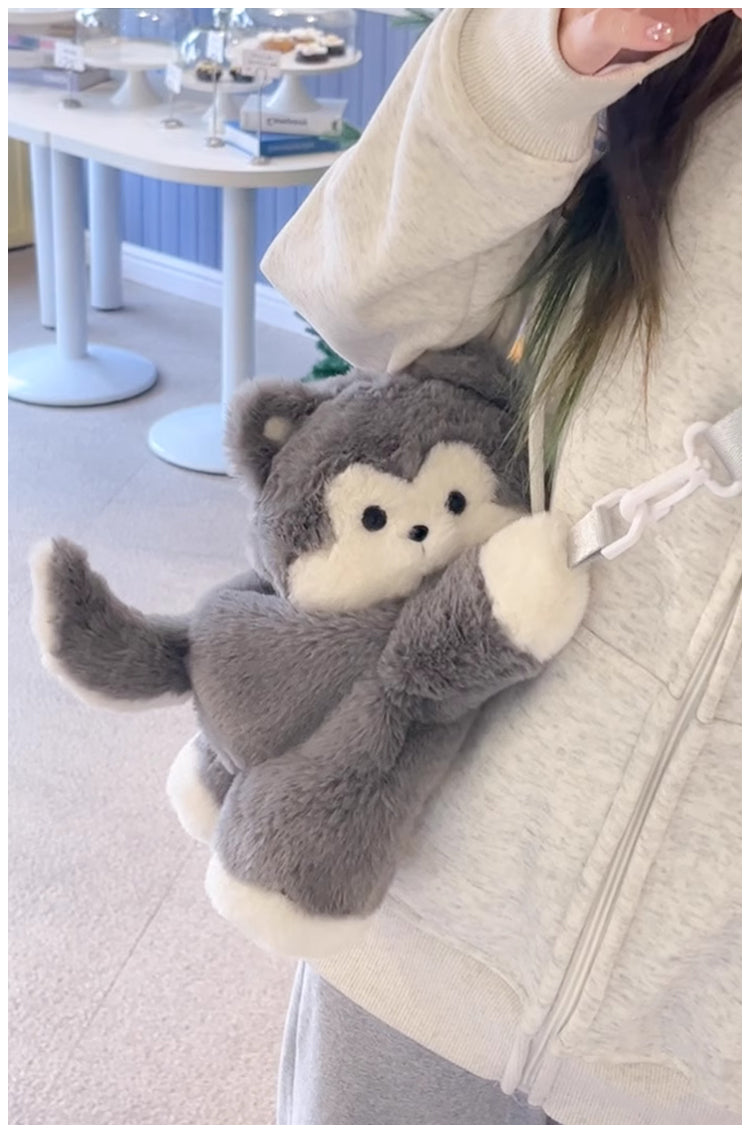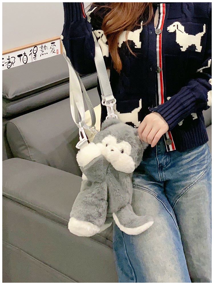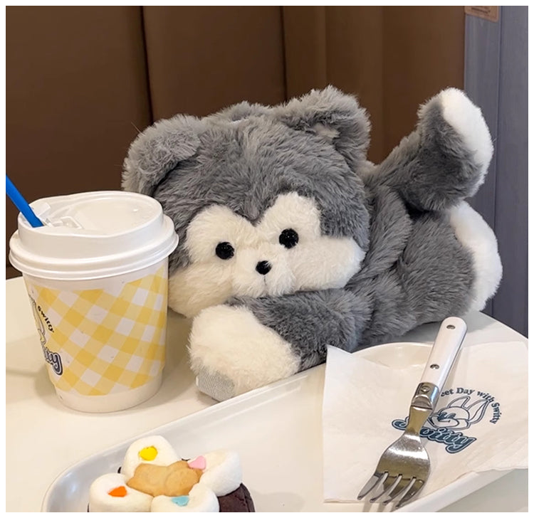 ぺたんこハスキーぬいぐるみバッグ|ふわもこ斜めがけ・リュック2way