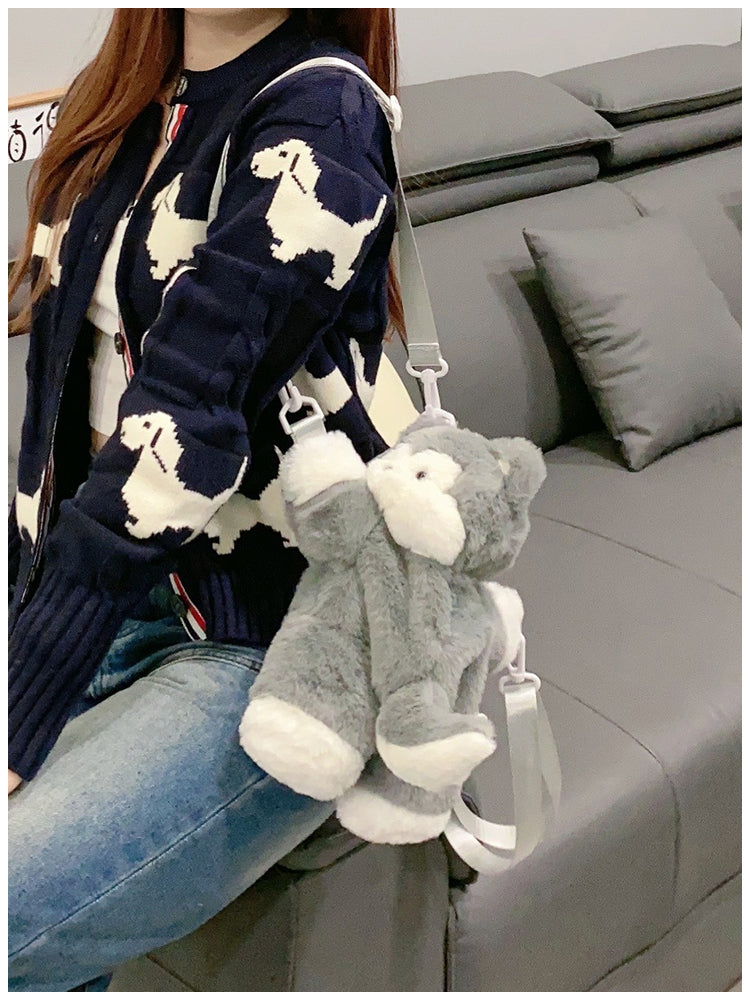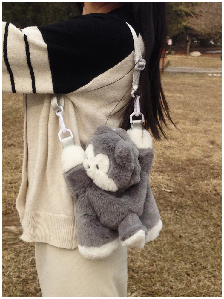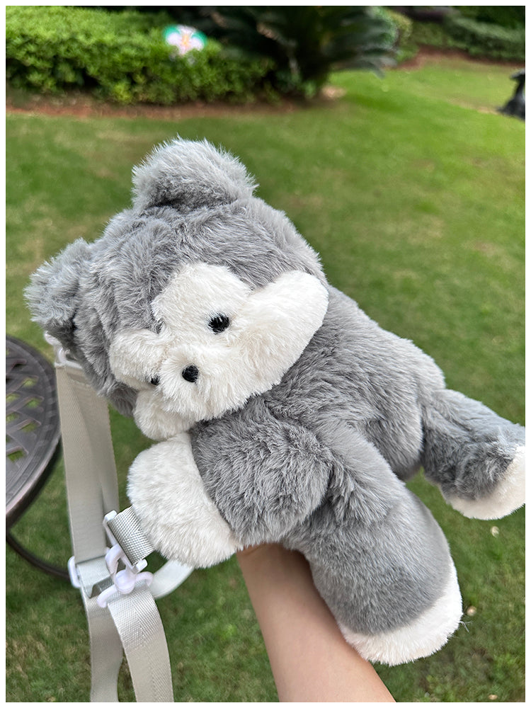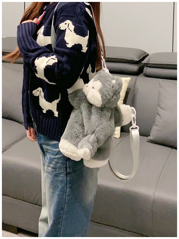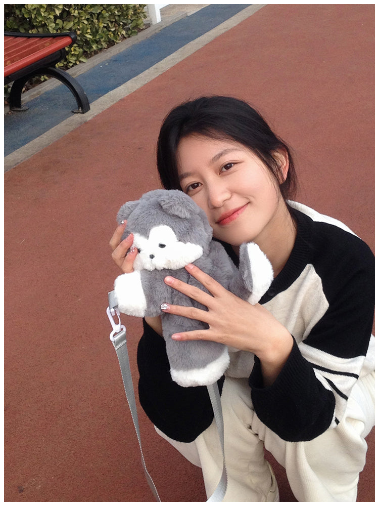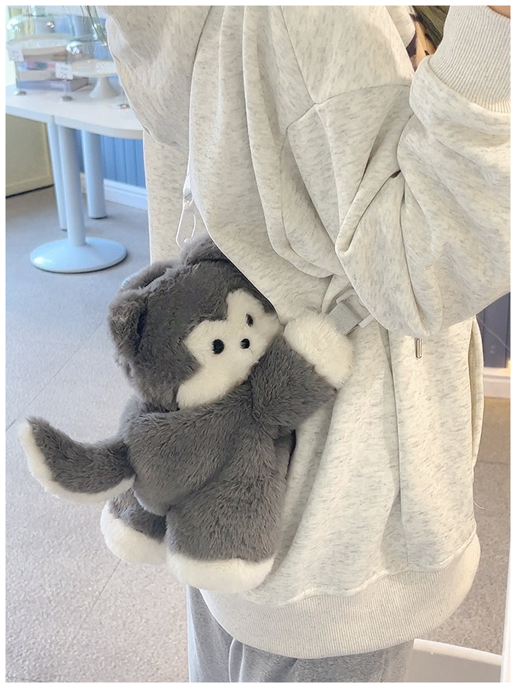 ぺたんこハスキーぬいぐるみバッグ|ふわもこ斜めがけ・リュック2way