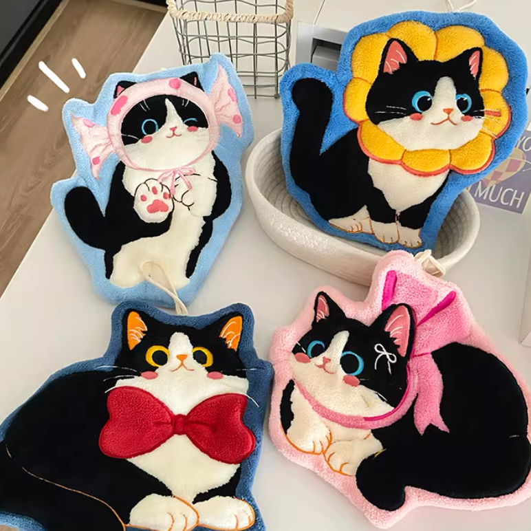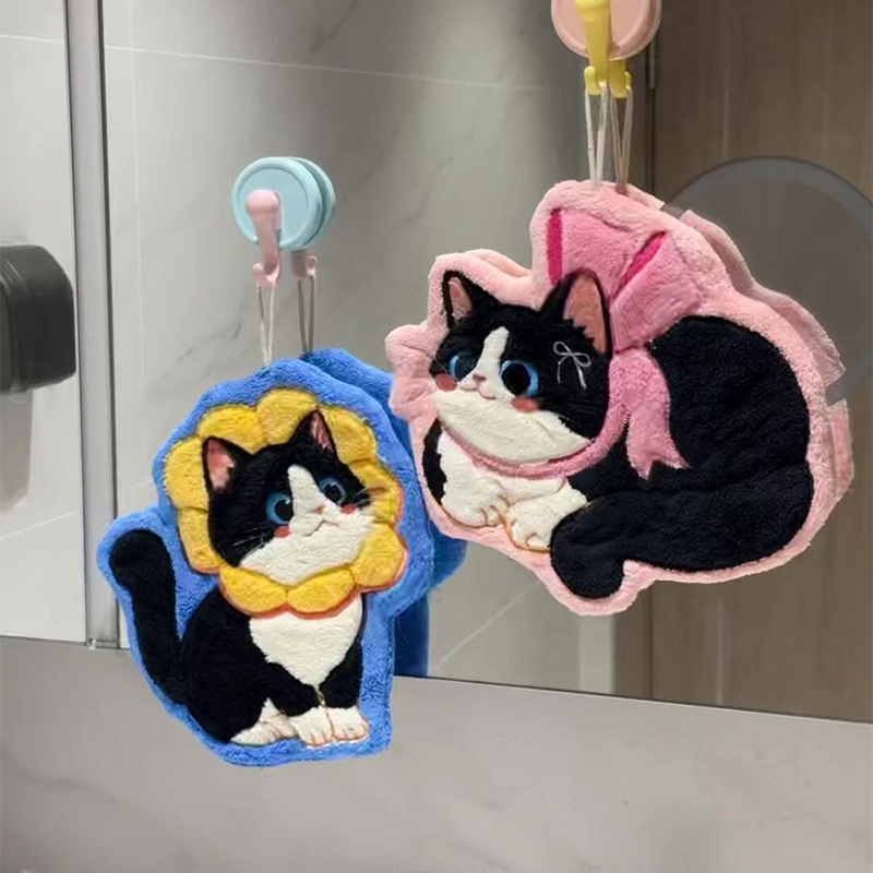 激カワネコハンドタオル超吸水ふわふわ吊り下げ式キッチン洗面所
