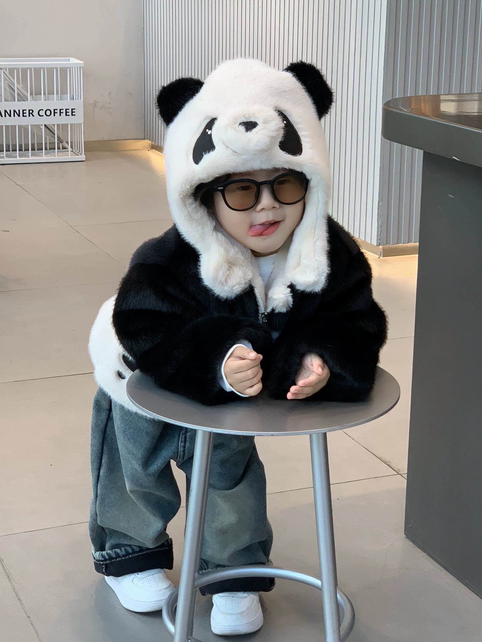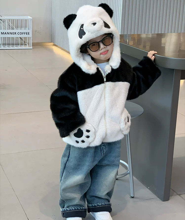 【パンダになっちゃおう】もこもこ裏起毛の厚手ベビー・キッズアウター