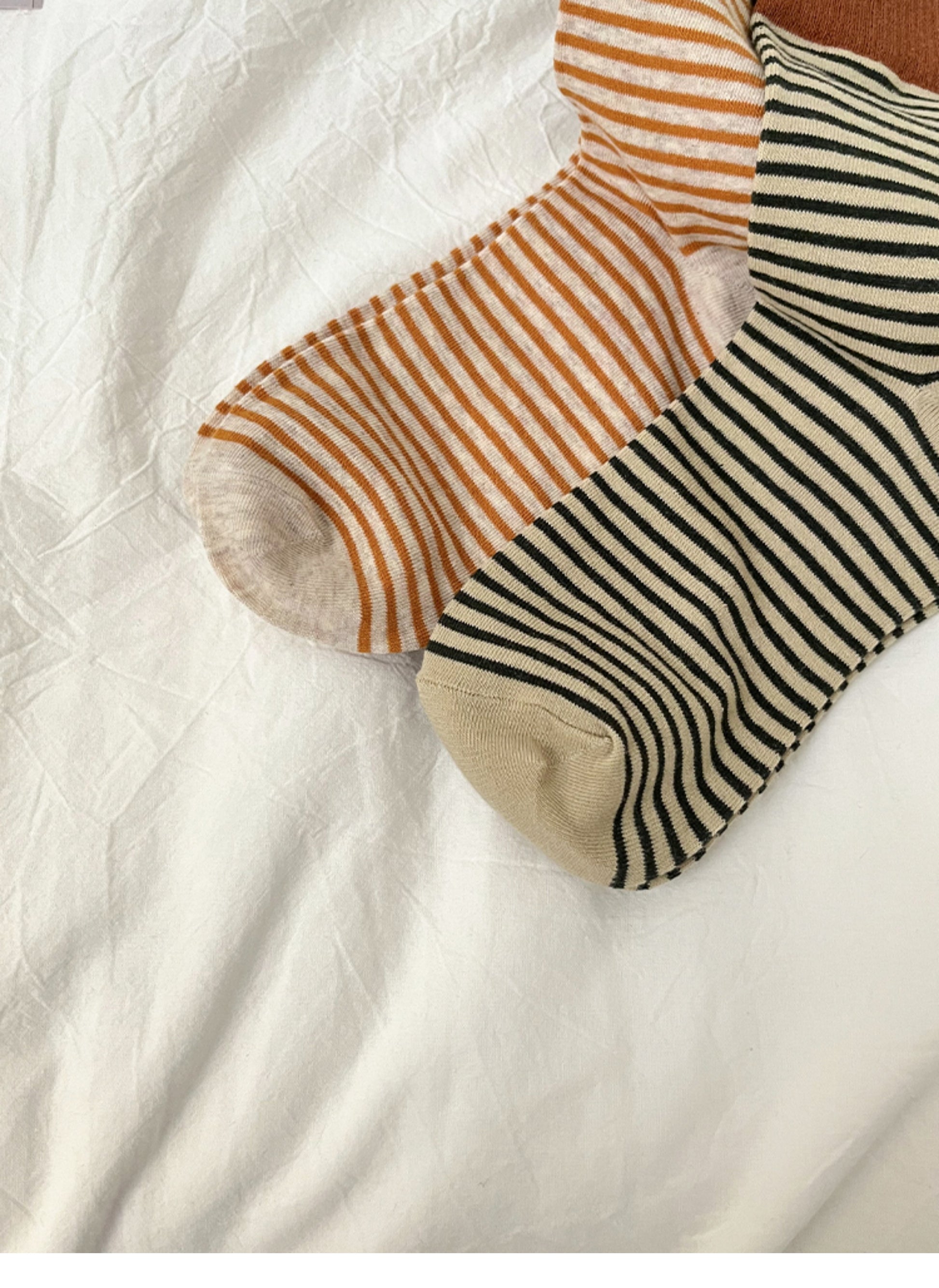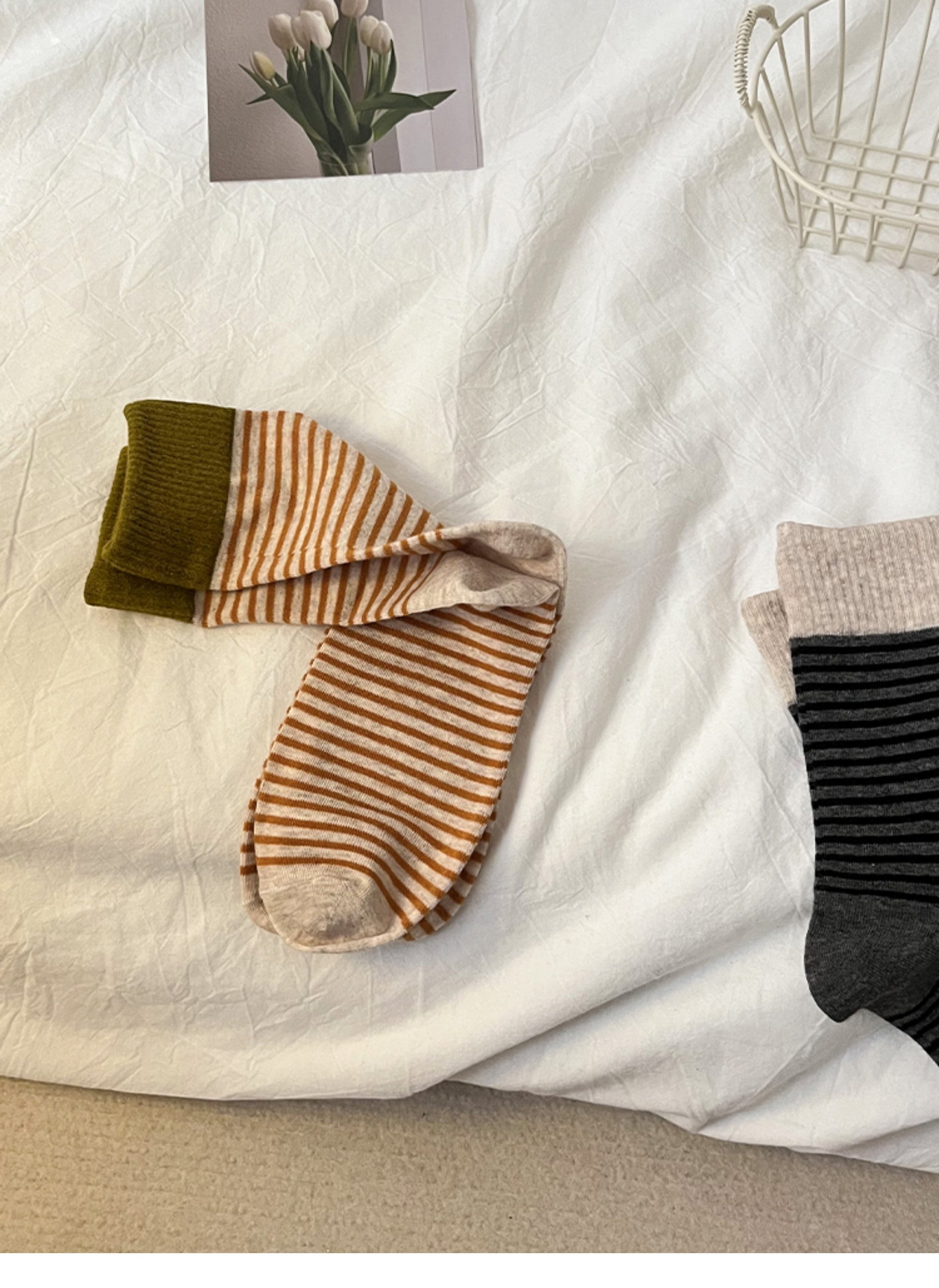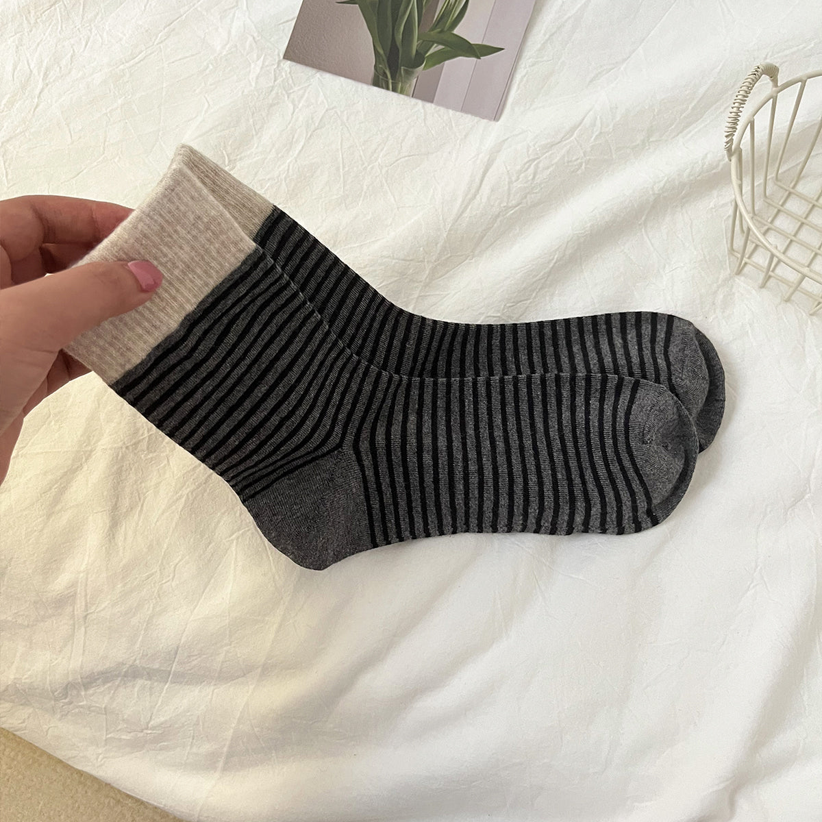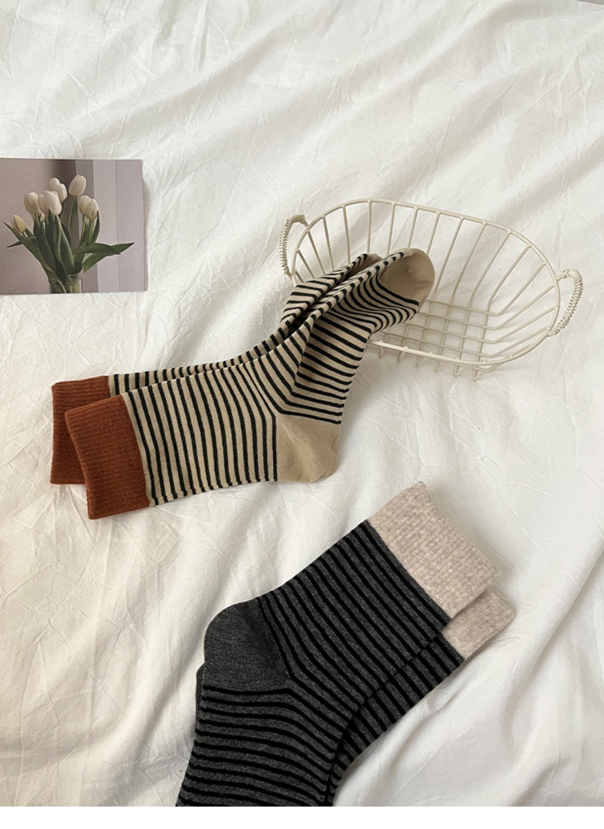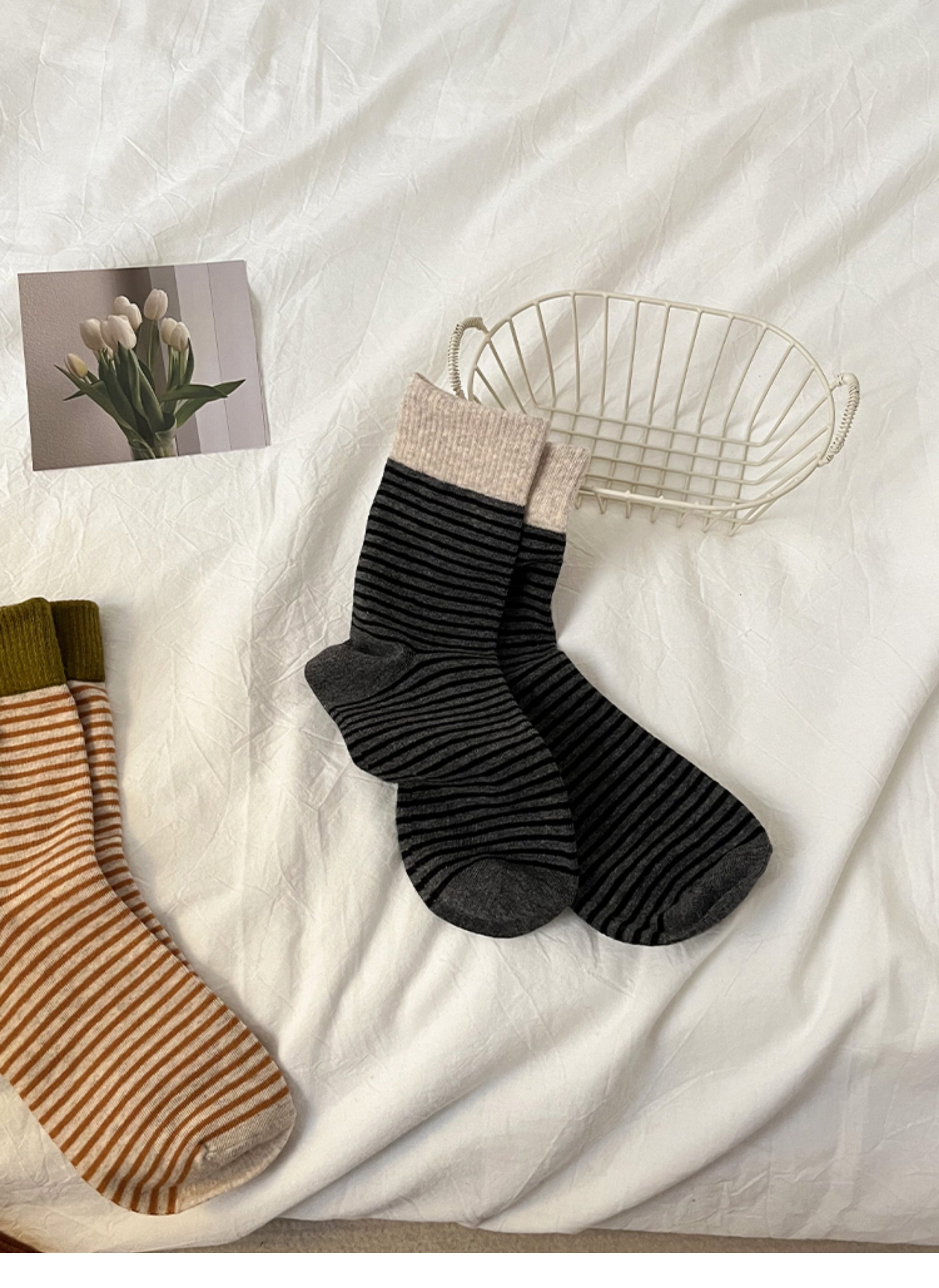 韓国風ヴィンテージ配色ソックス|綿素材の中筒靴下・通学にも◎
