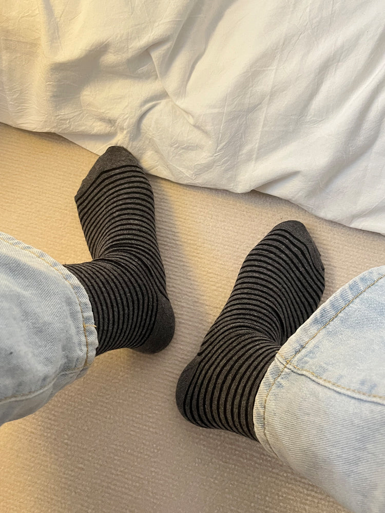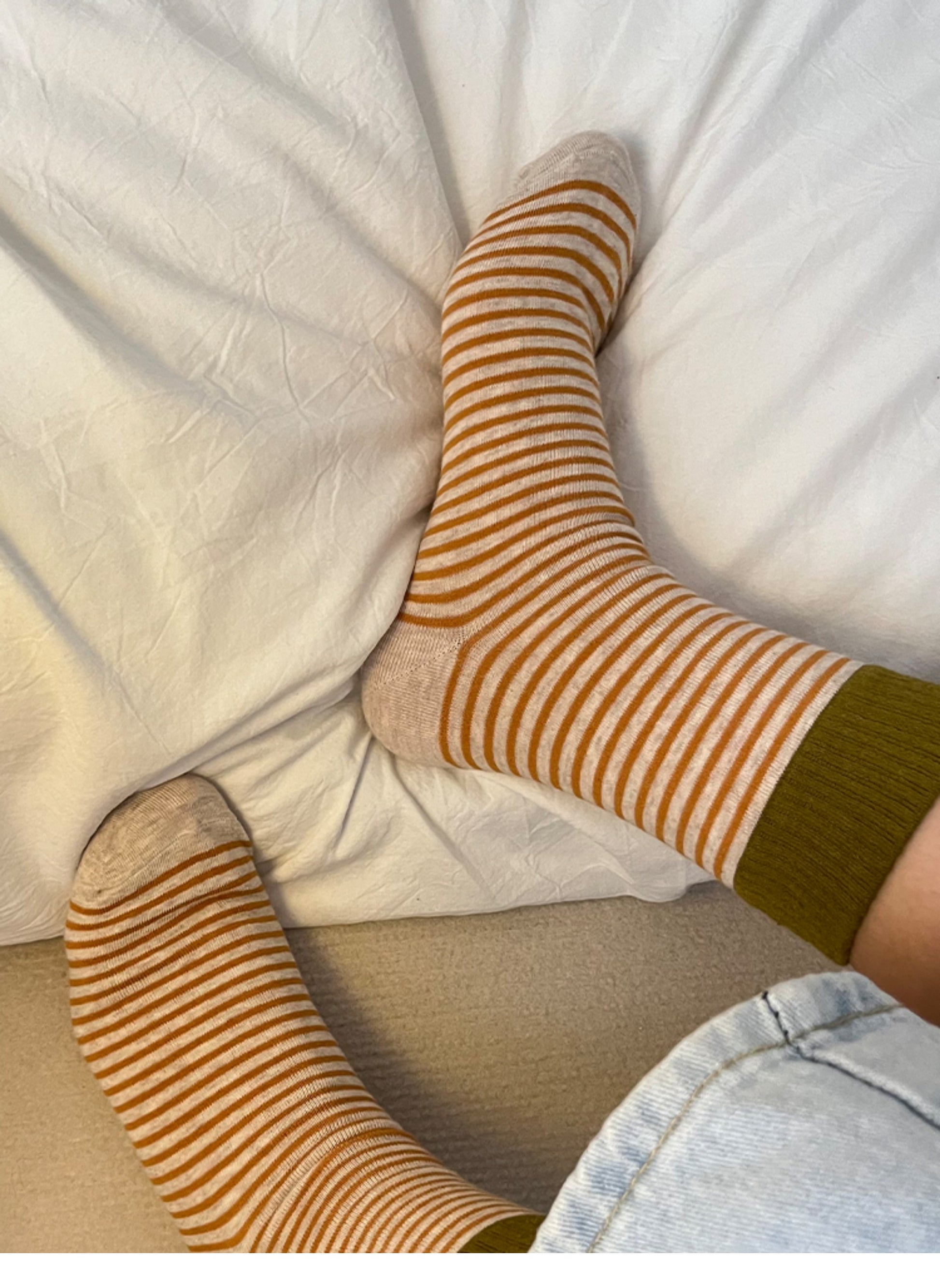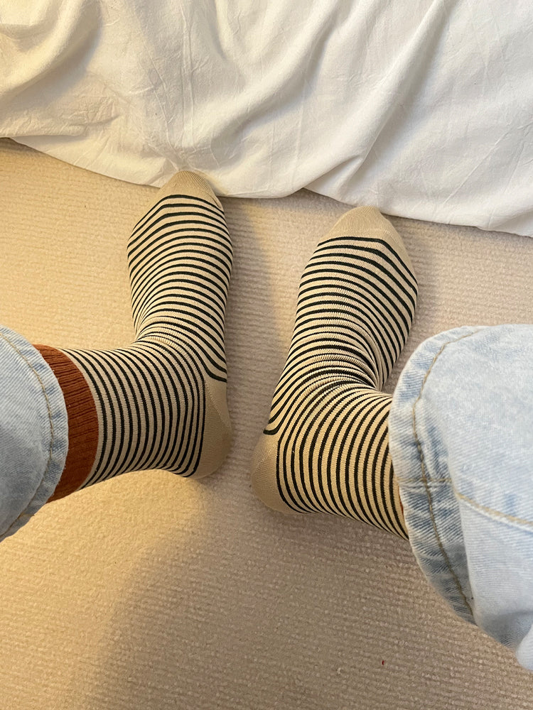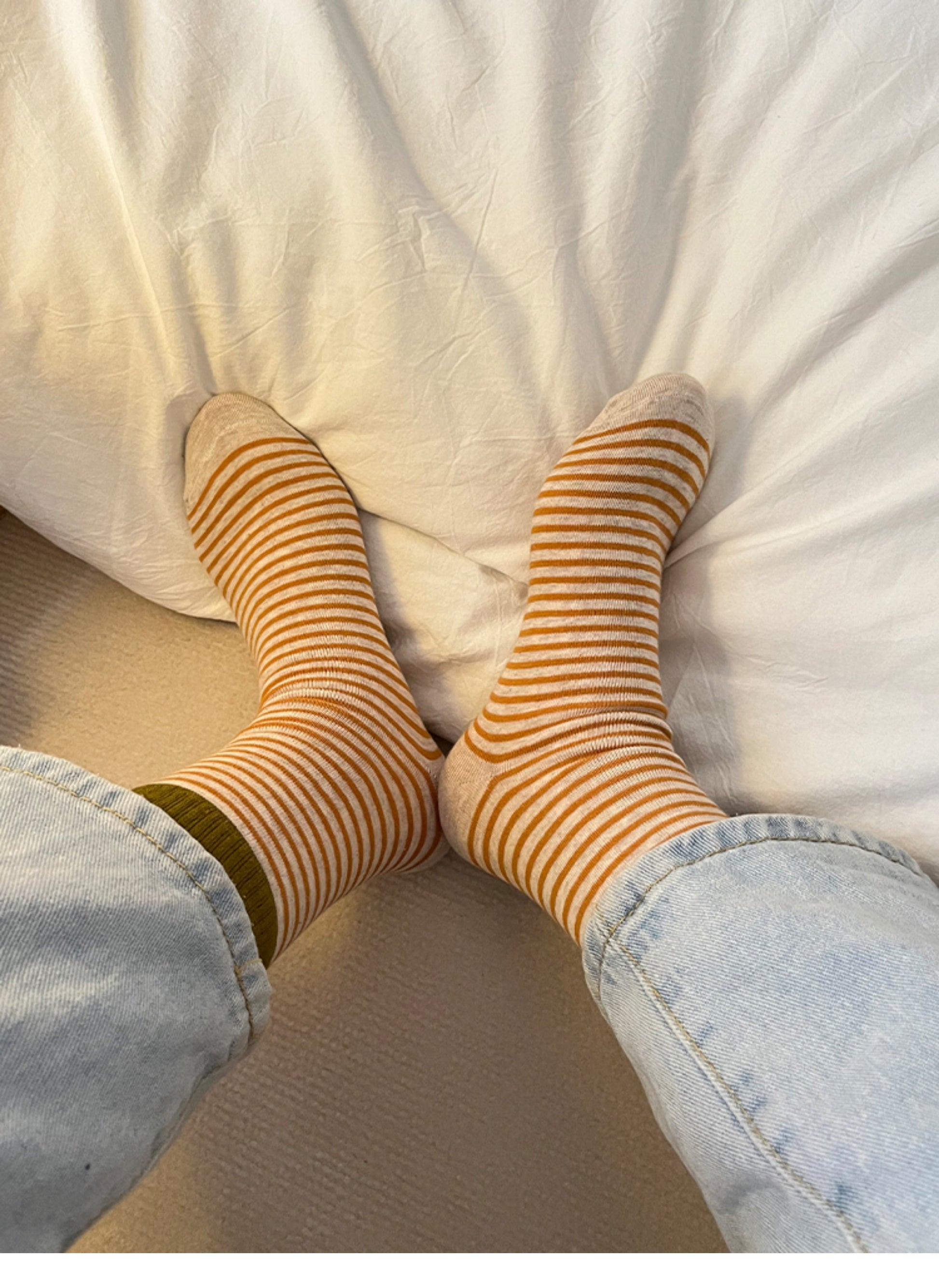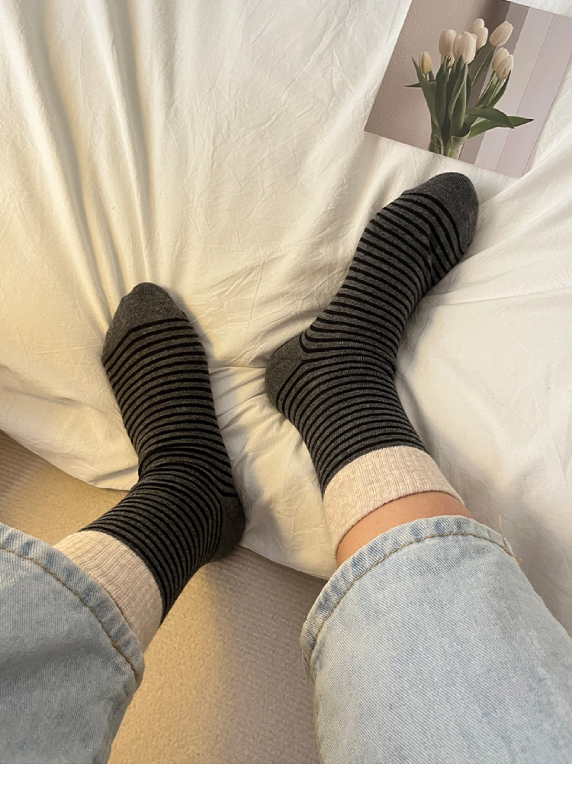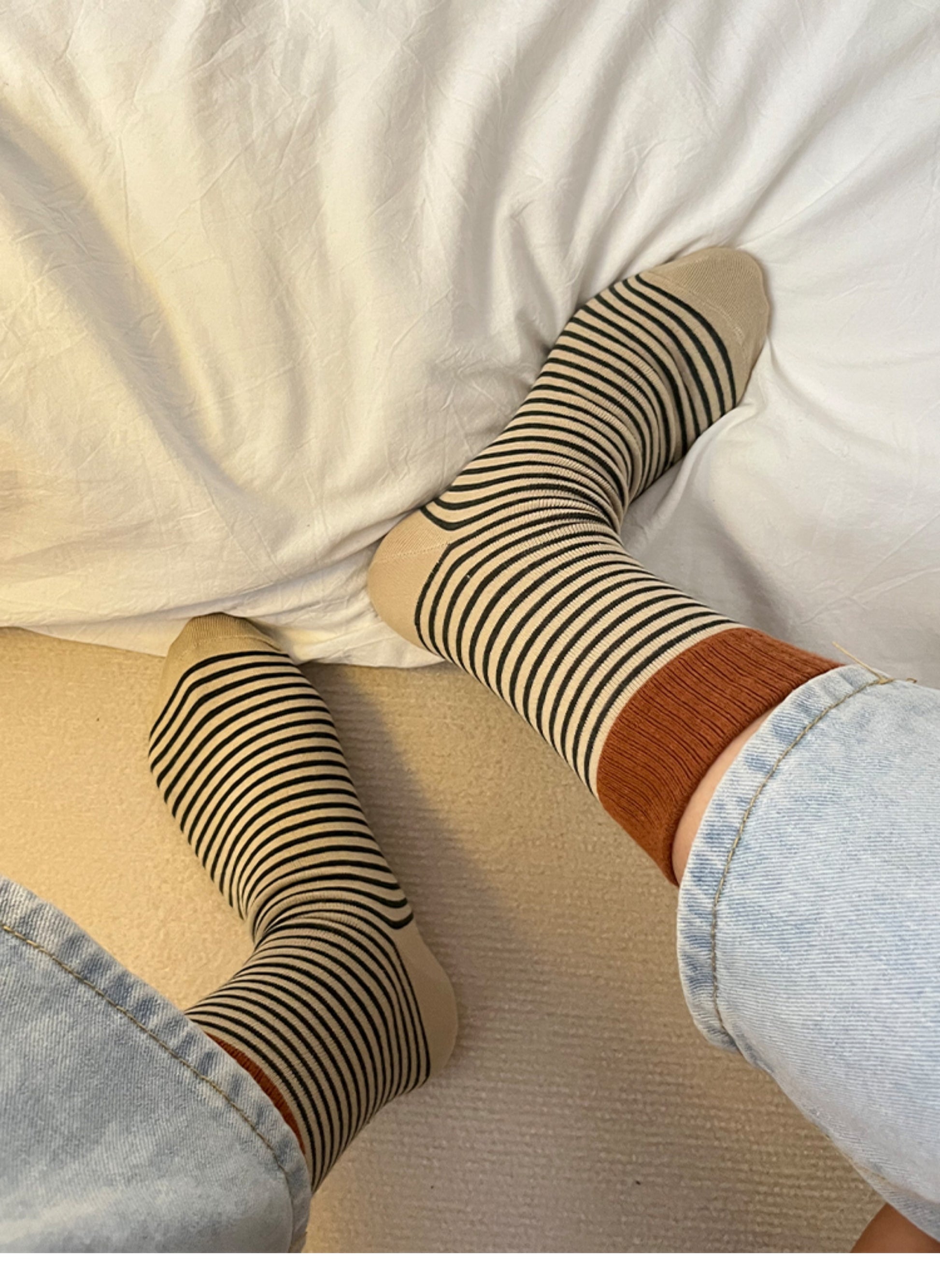 韓国風ヴィンテージ配色ソックス|綿素材の中筒靴下・通学にも◎