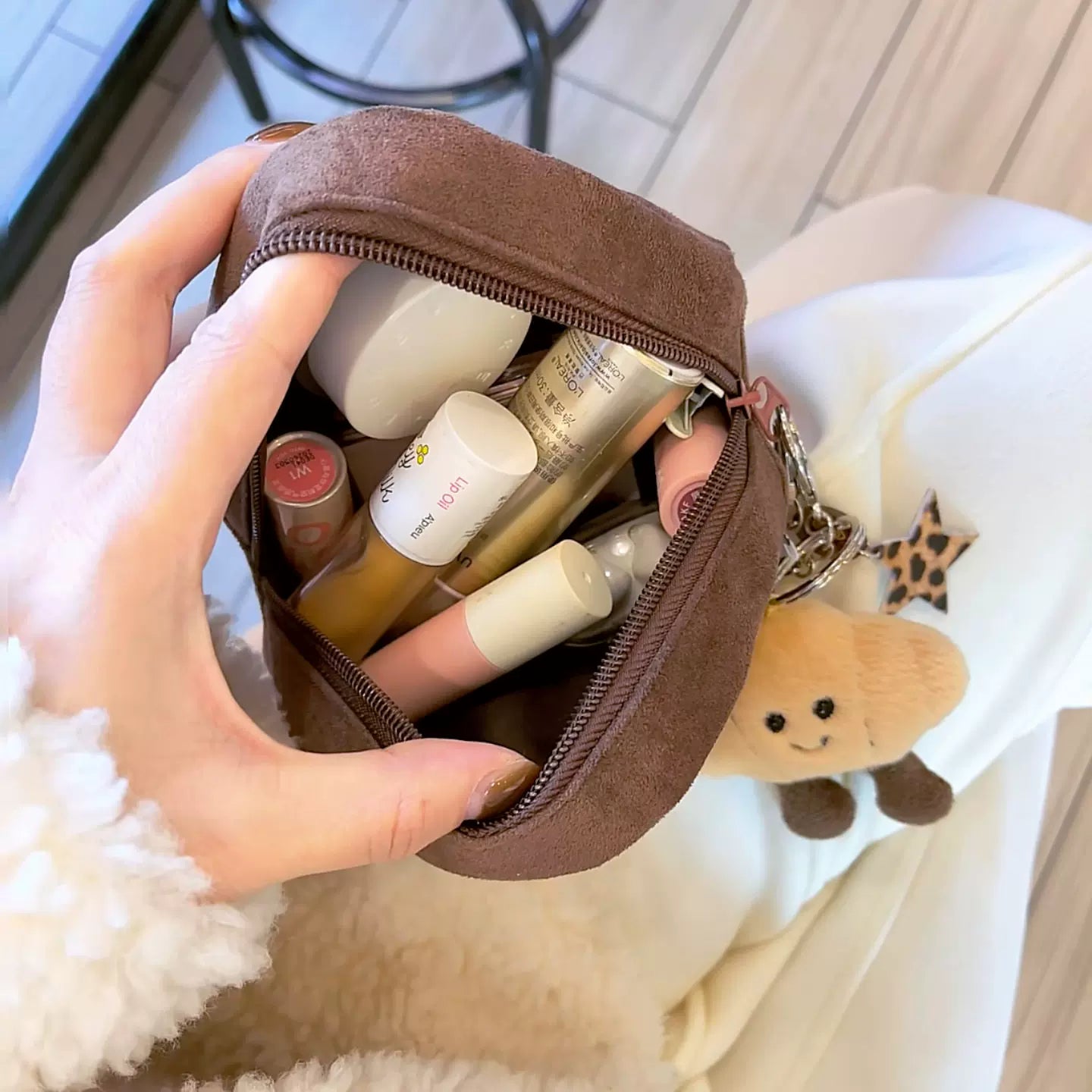 栗型コスメポーチ高見えミニ巾着小物入れ