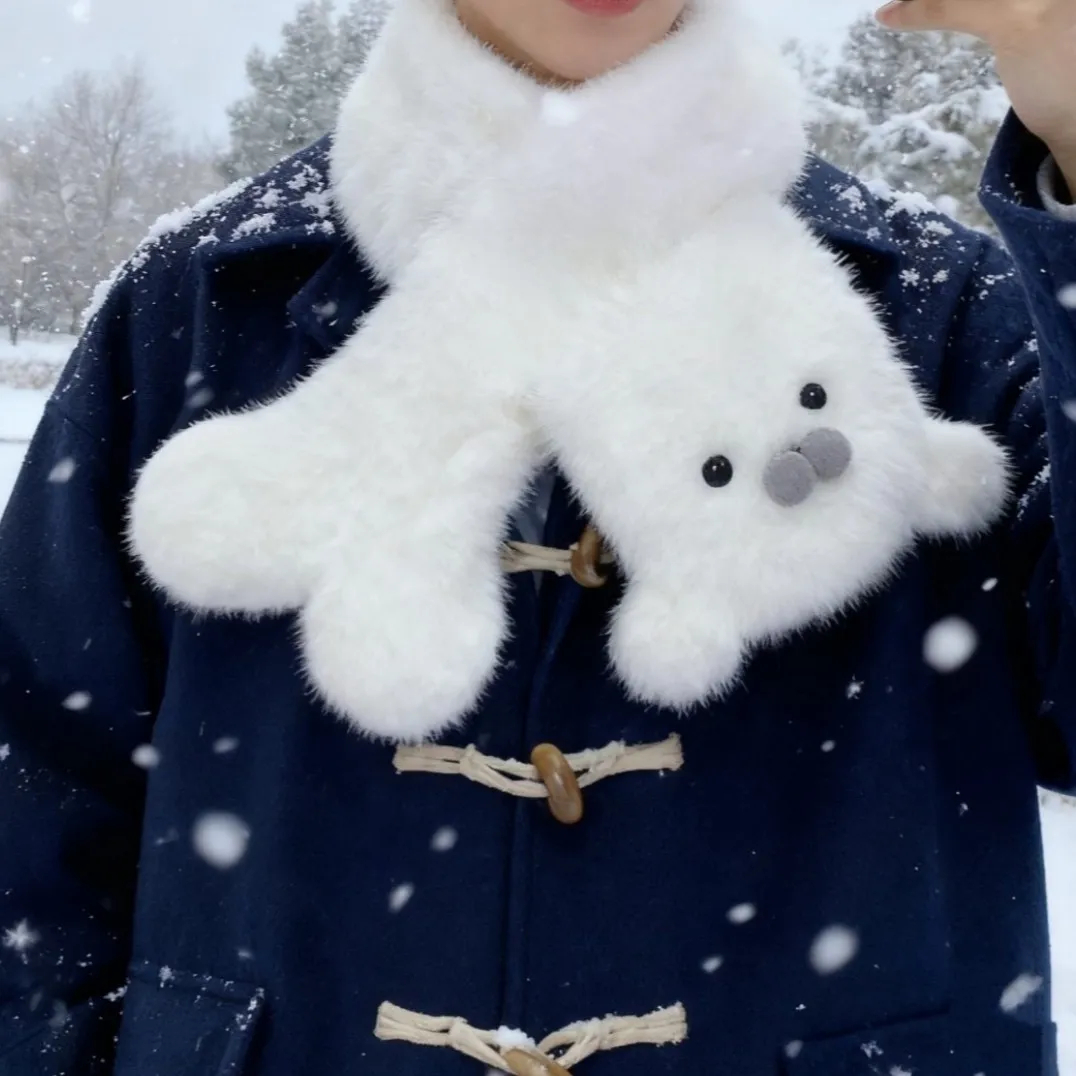 冬のコーデを彩るアザラシが可愛いもこもこボリュームマフラー